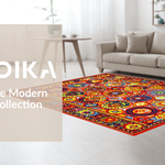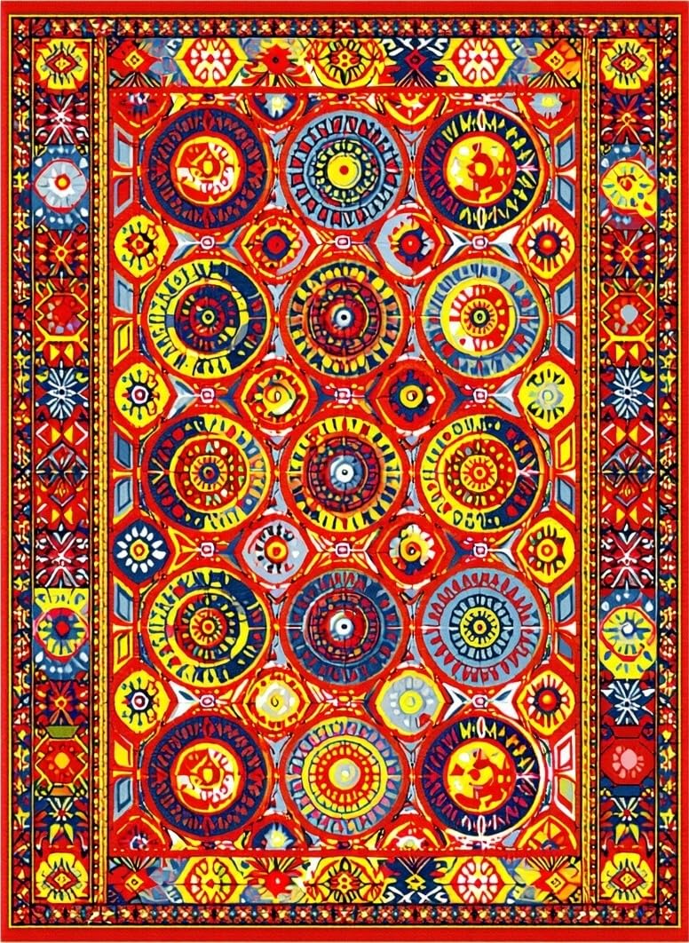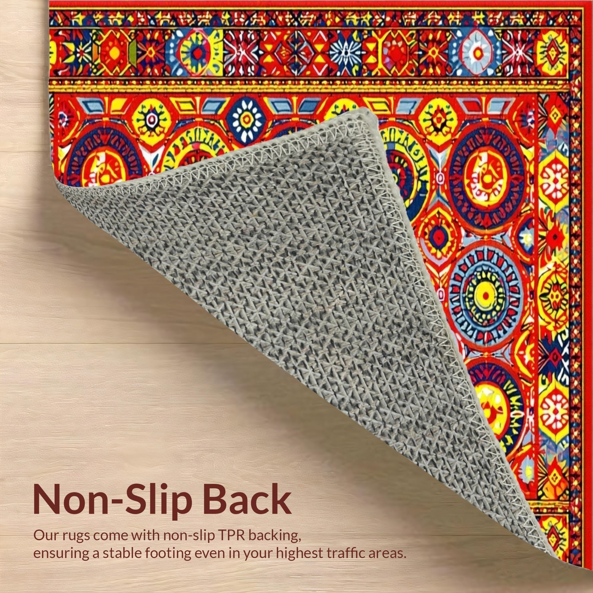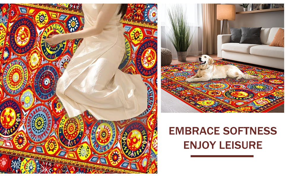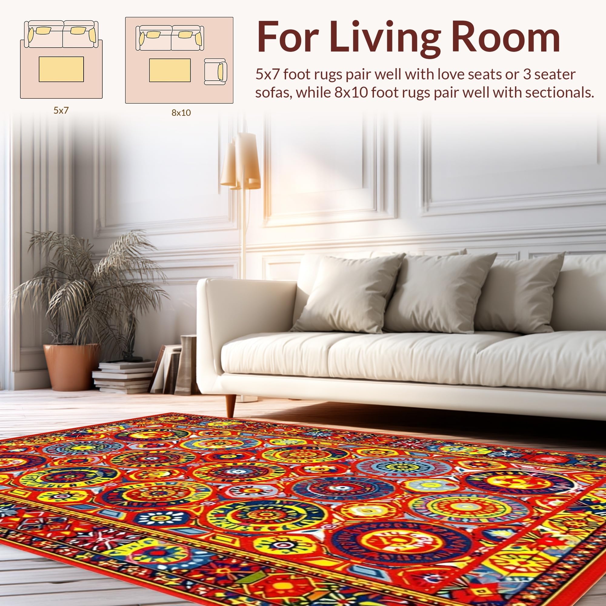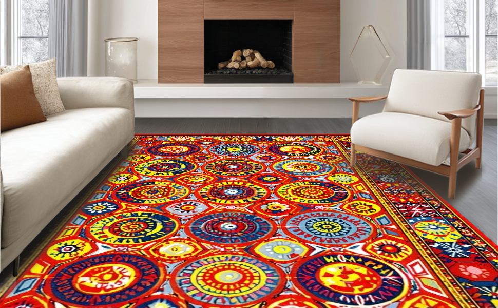 Ultra Soft Area Rug, Non Slip, Stain Resistant, Washable Area Rugs for Living Room, Bedroom, Playful Circular Geometry Theme(Red) Overview: