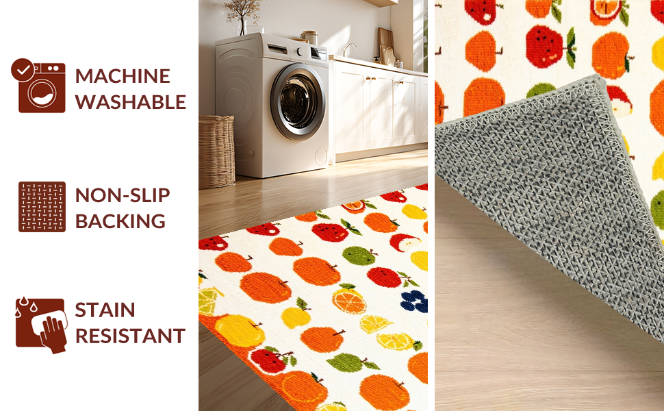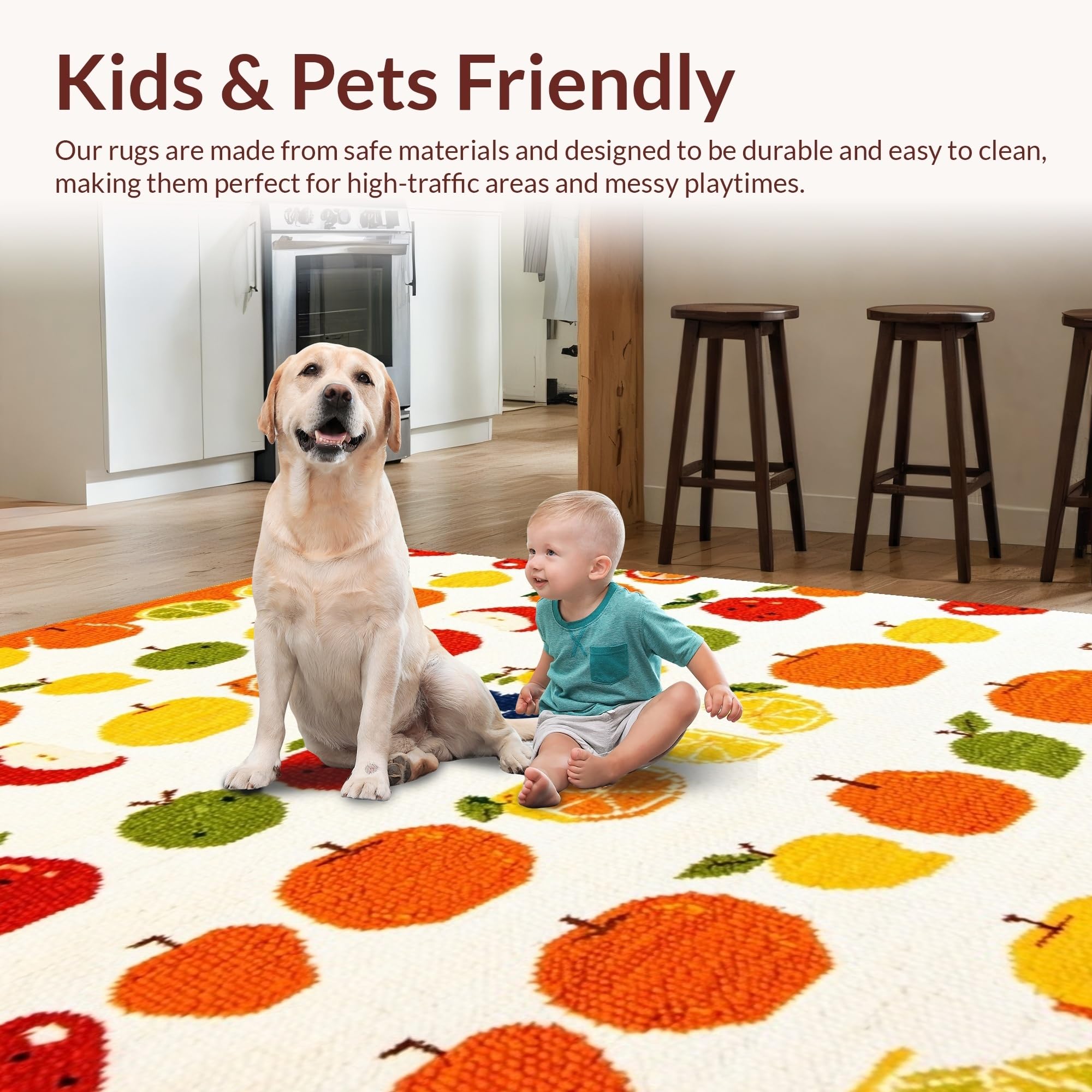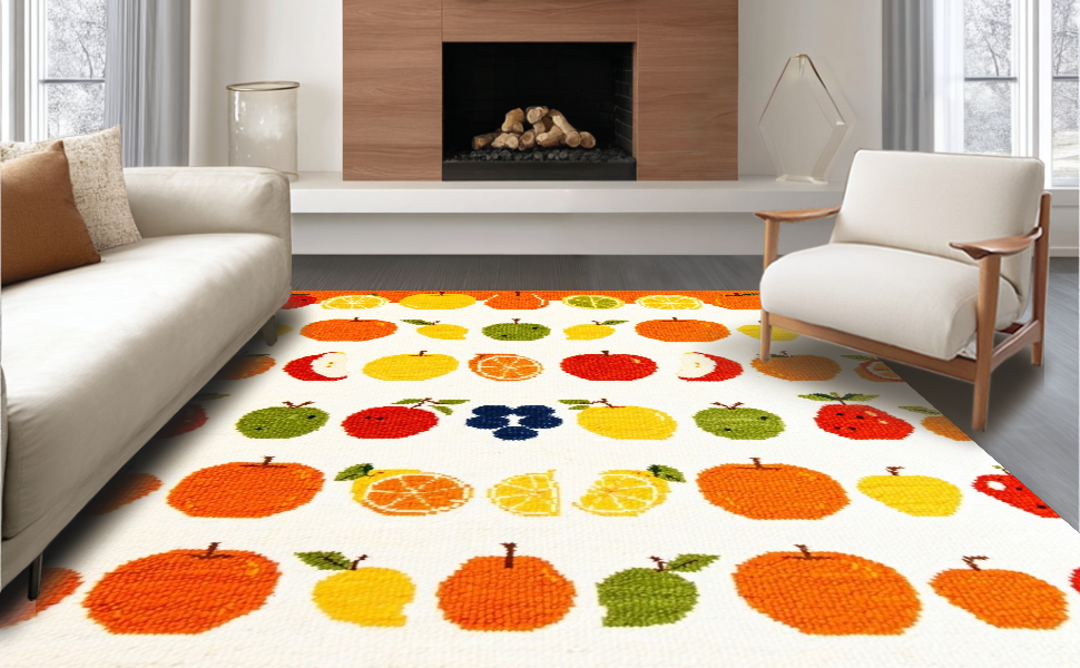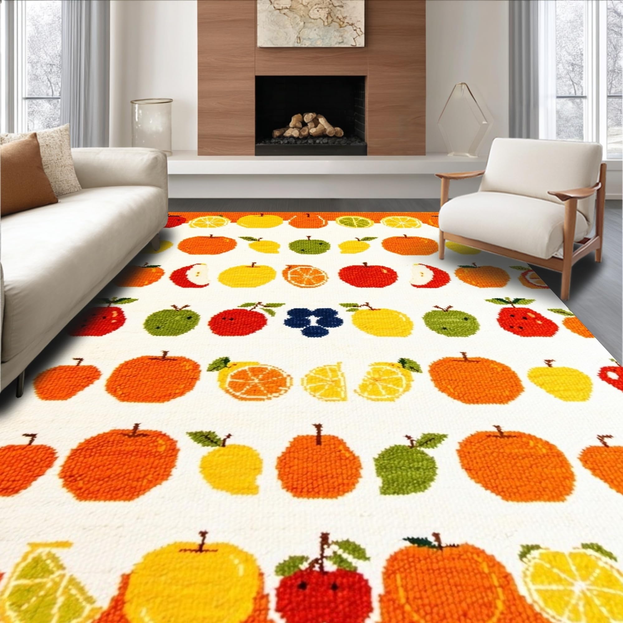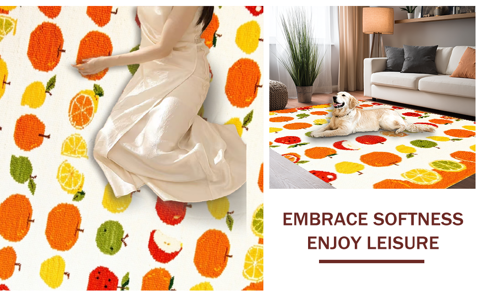 Ultra Soft Area Rug, Non Slip, Stain Resistant, Washable Area Rugs for Living Room, Bedroom, Playful Citrus Fruit Motif(Orange) Overview: