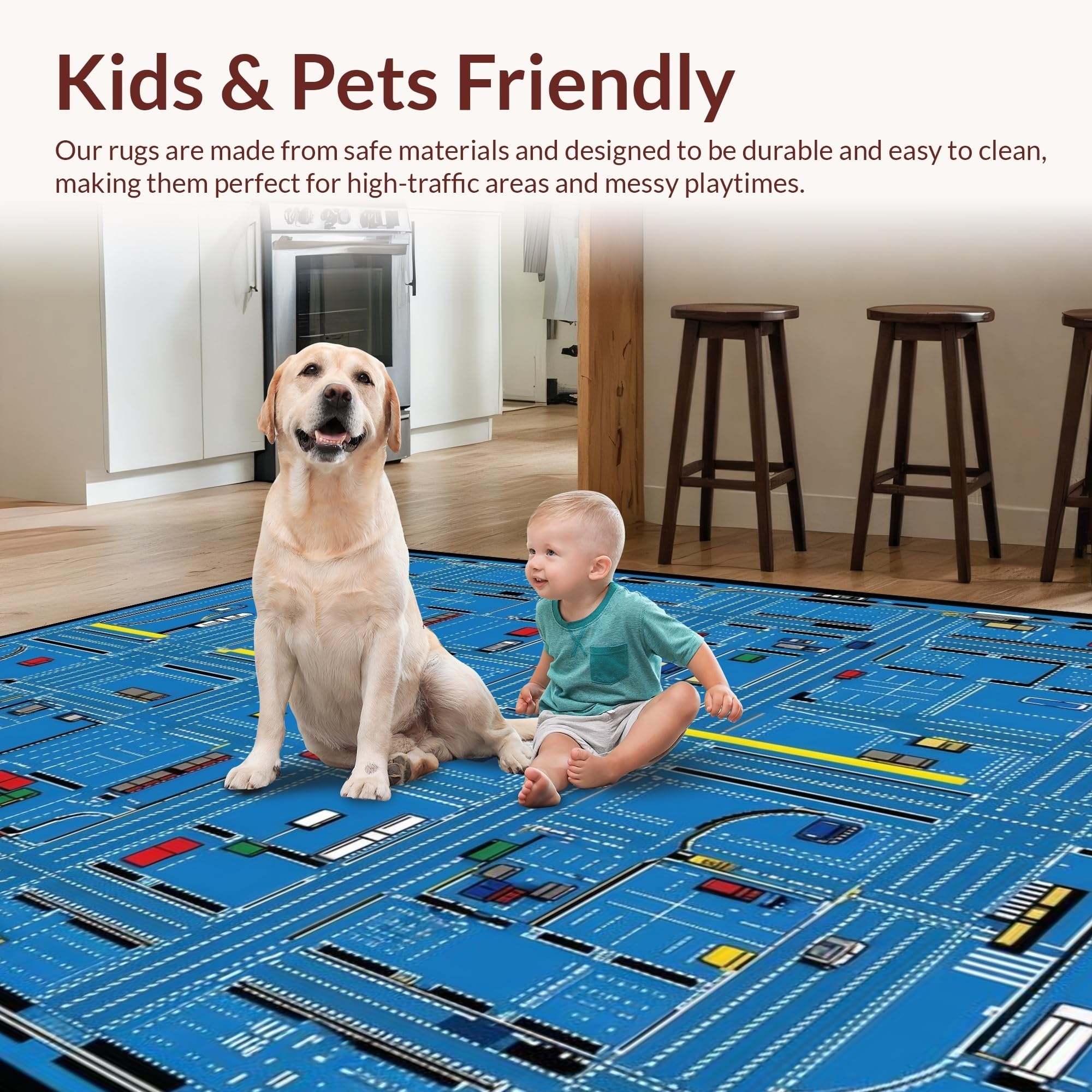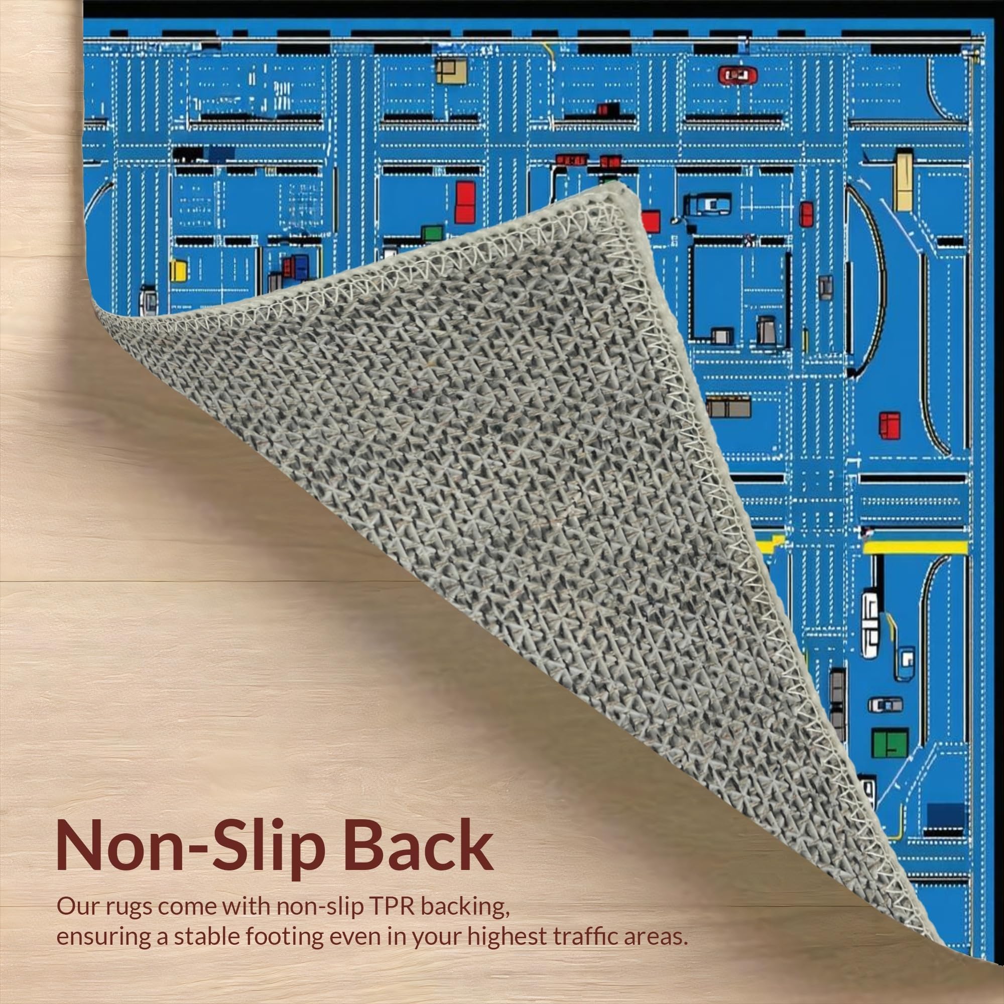 Ultra Soft Area Rug, Non Slip, Stain Resistant, Washable Area Rugs for Living Room, Bedroom, Playful City Map Aesthetic(Blue) Overview: