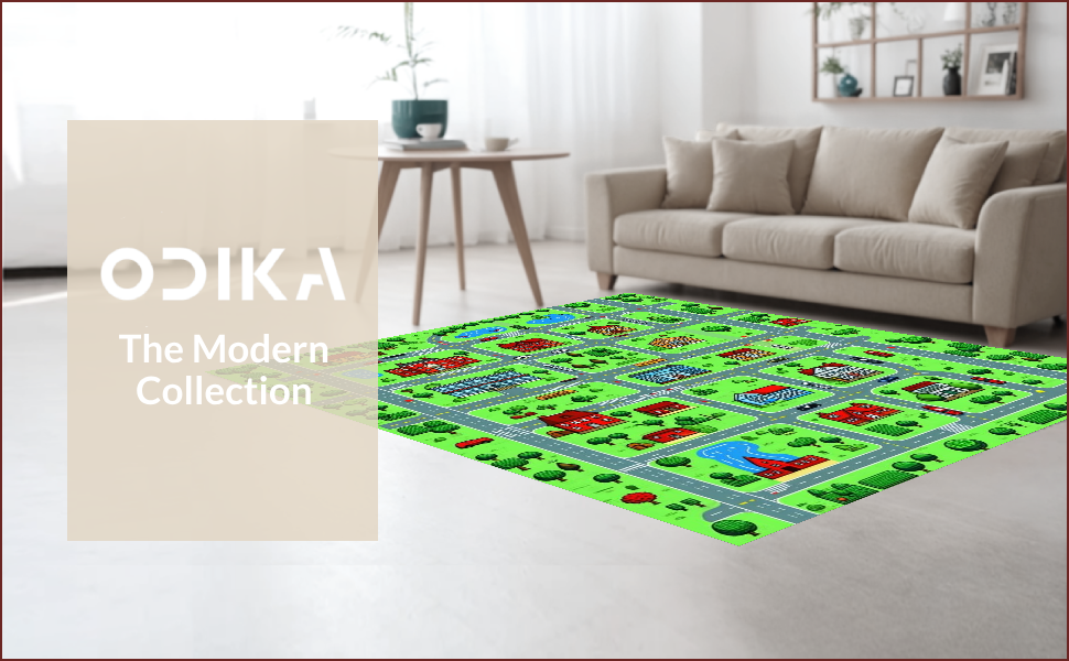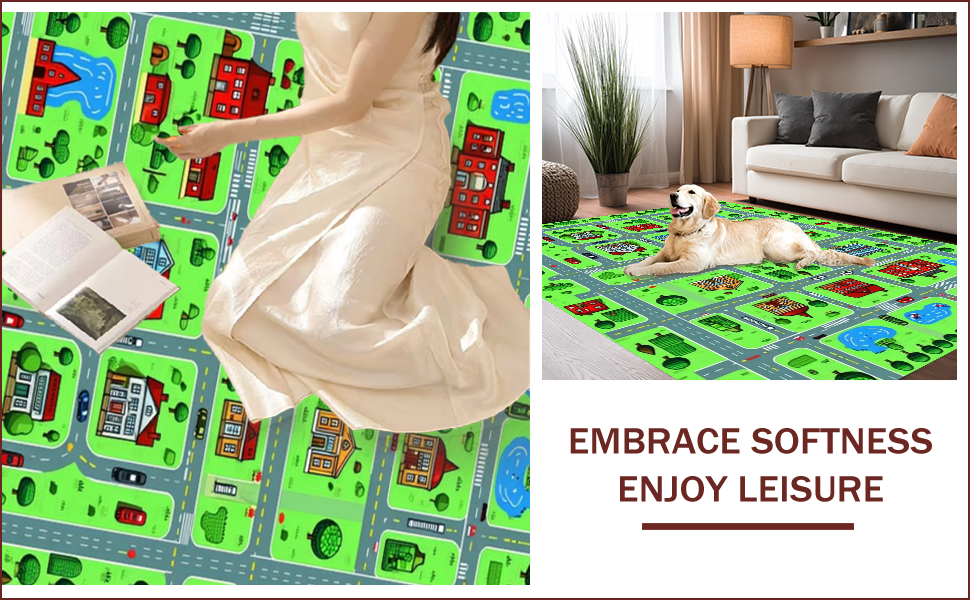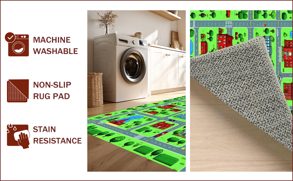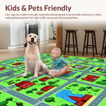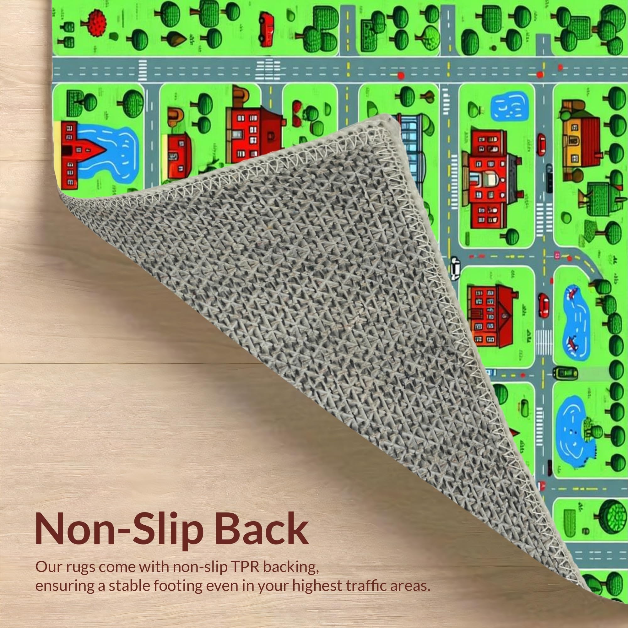 Ultra Soft Area Rug, Non Slip, Stain Resistant, Washable Area Rugs for Living Room, Bedroom, Playful Cityscape Road Design(Green) Overview: