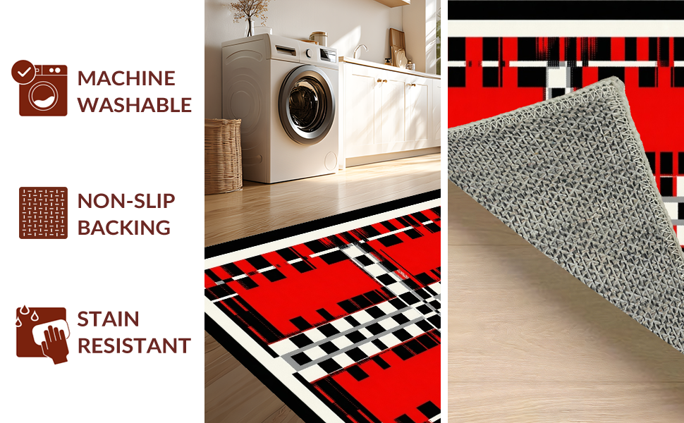 Ultra Soft Area Rug, Non Slip, Stain Resistant, Washable Area Rugs for Living Room, Bedroom, Playful Colorful Geometric Arrangement(Red) Overview: