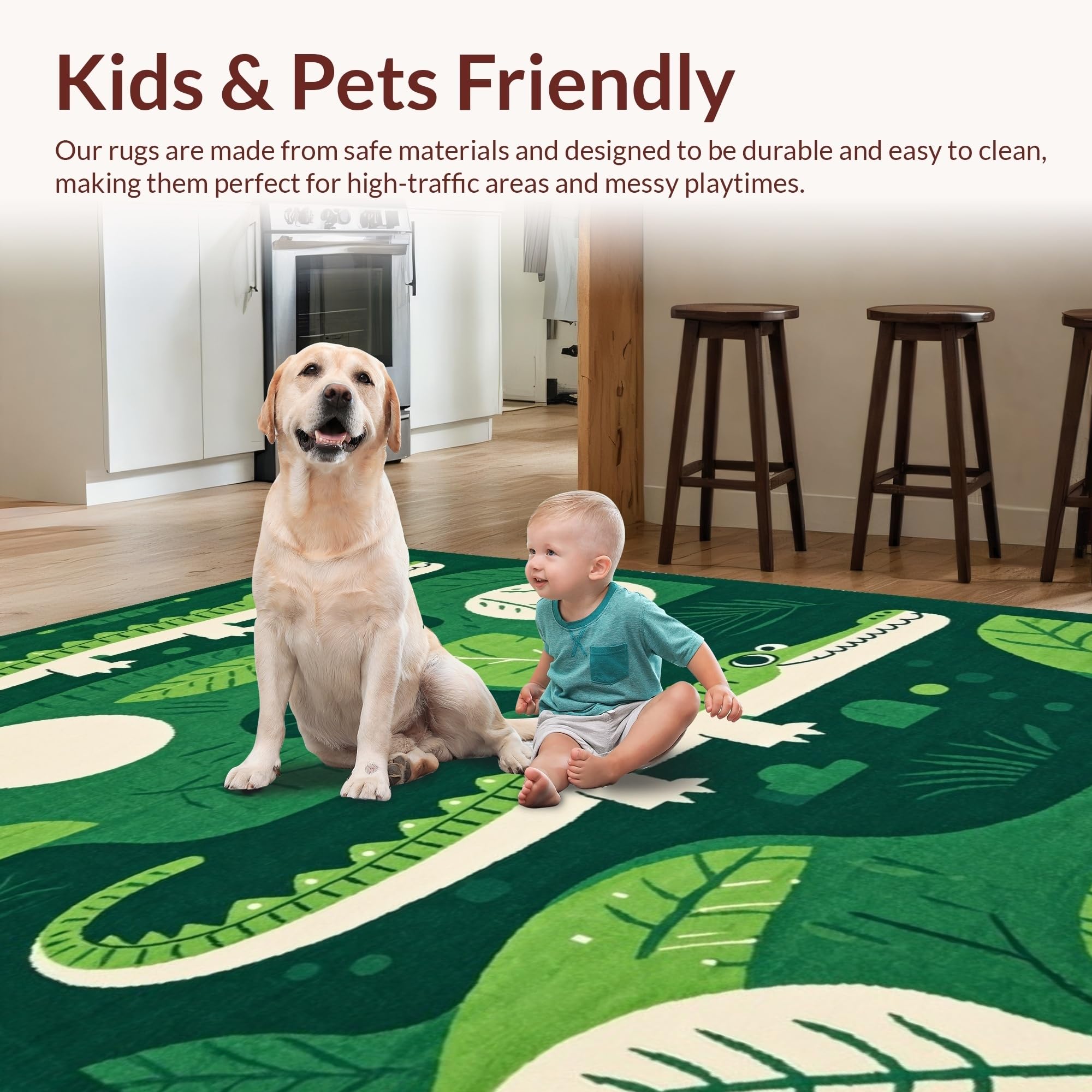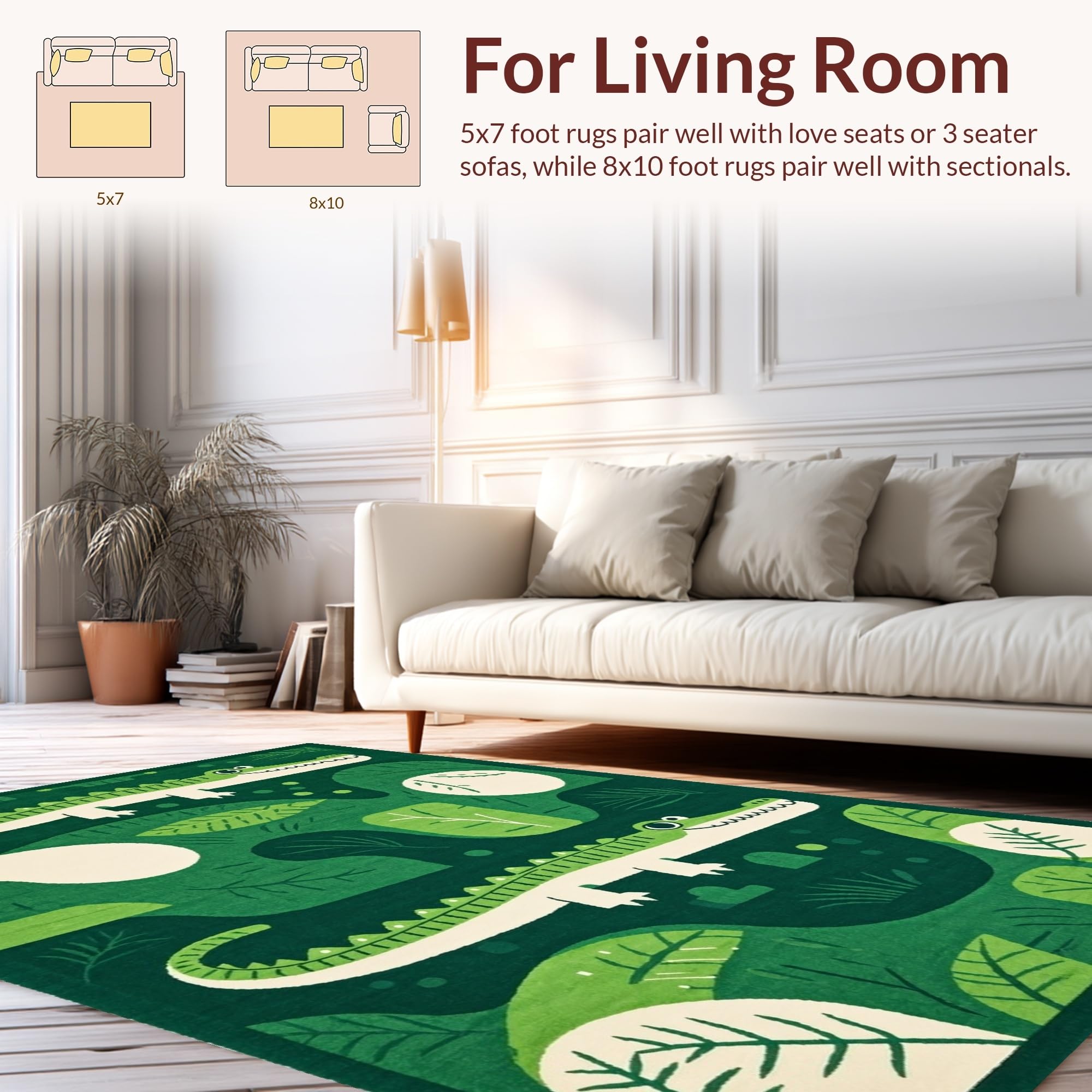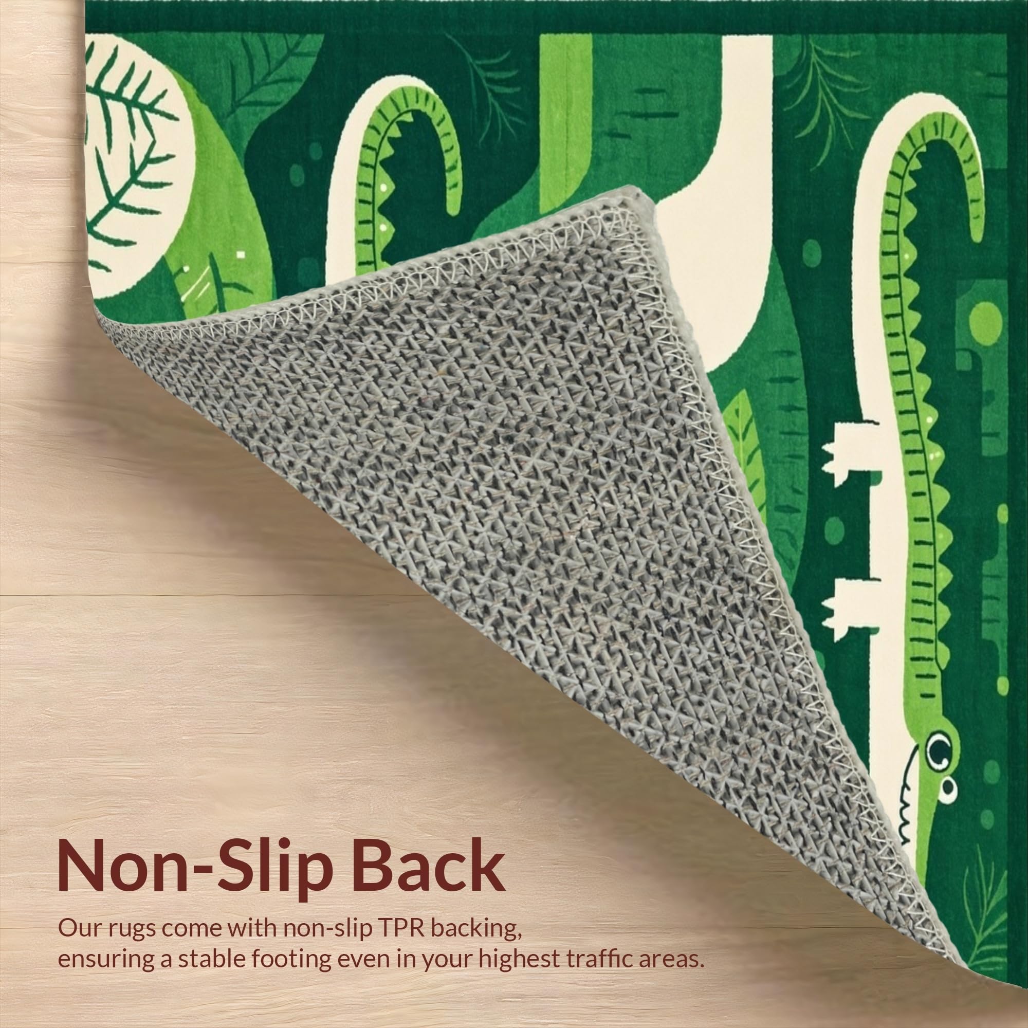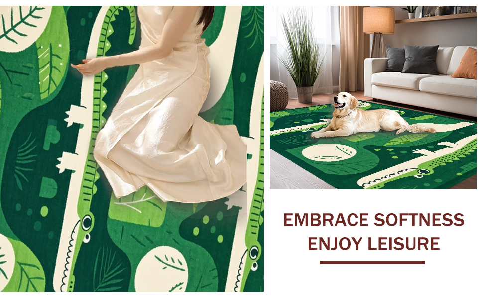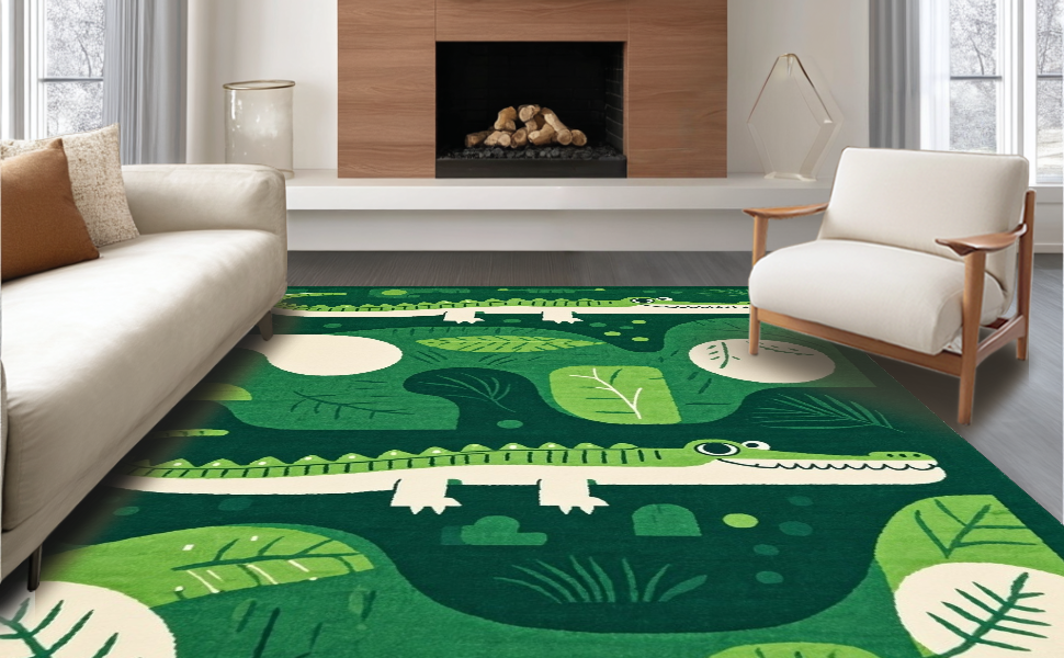 Ultra Soft Area Rug, Non Slip, Stain Resistant, Washable Area Rugs for Living Room, Bedroom, Playful Crocodile Cartoon Aesthetic(Green) Overview: