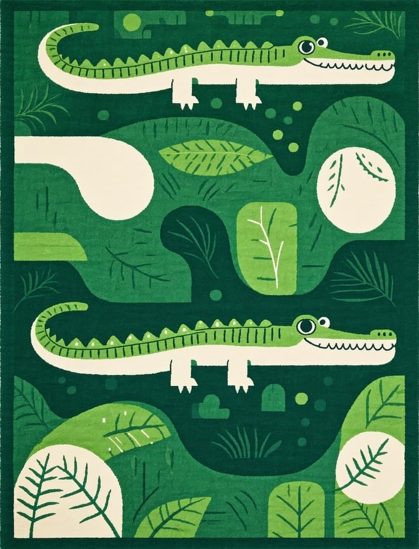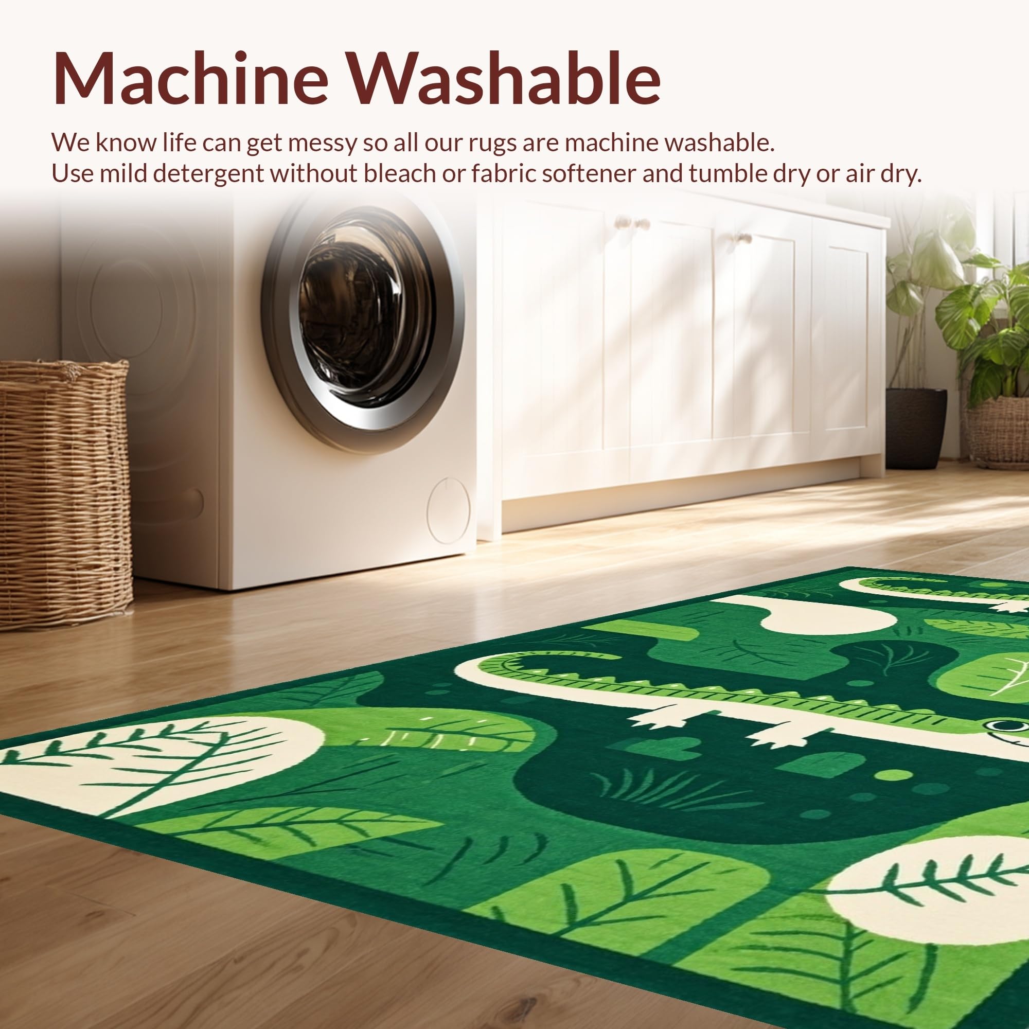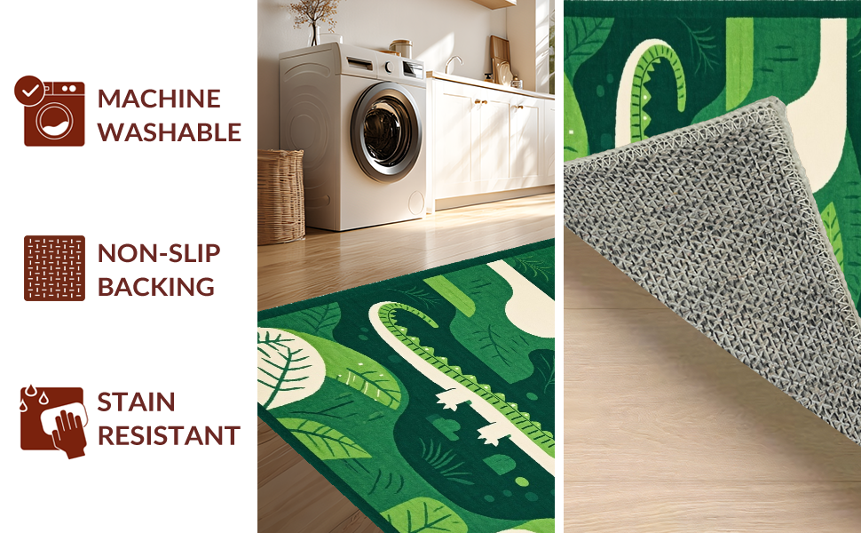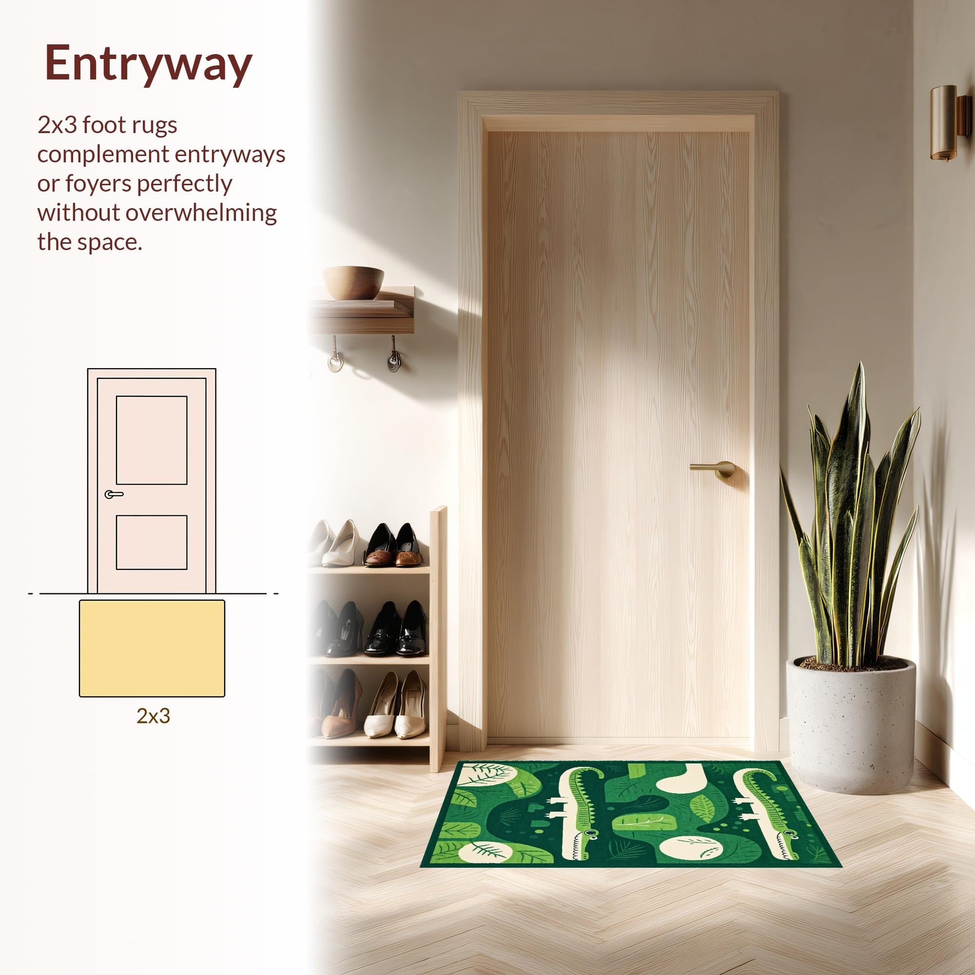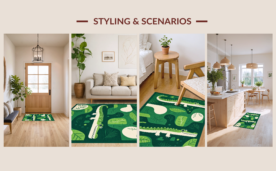 Ultra Soft Area Rug, Non Slip, Stain Resistant, Washable Area Rugs for Living Room, Bedroom, Playful Crocodile Cartoon Aesthetic(Green) Overview: