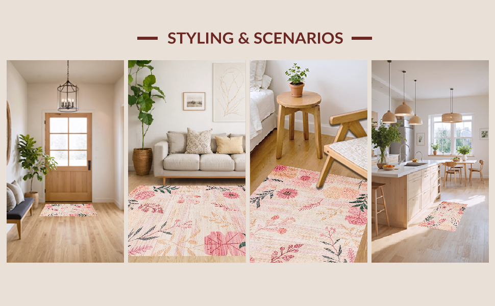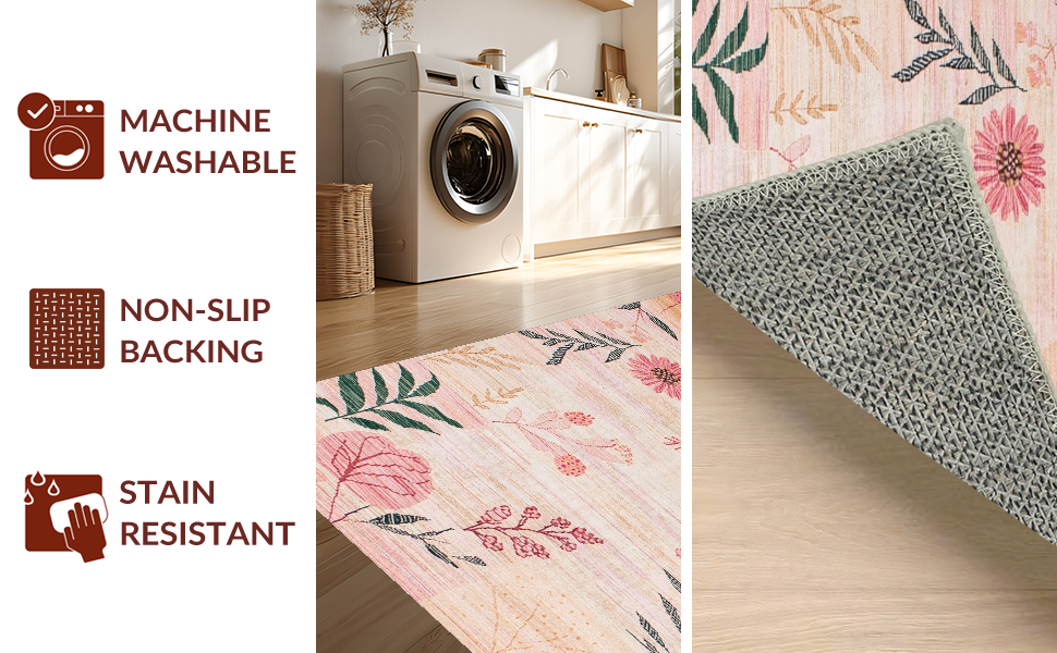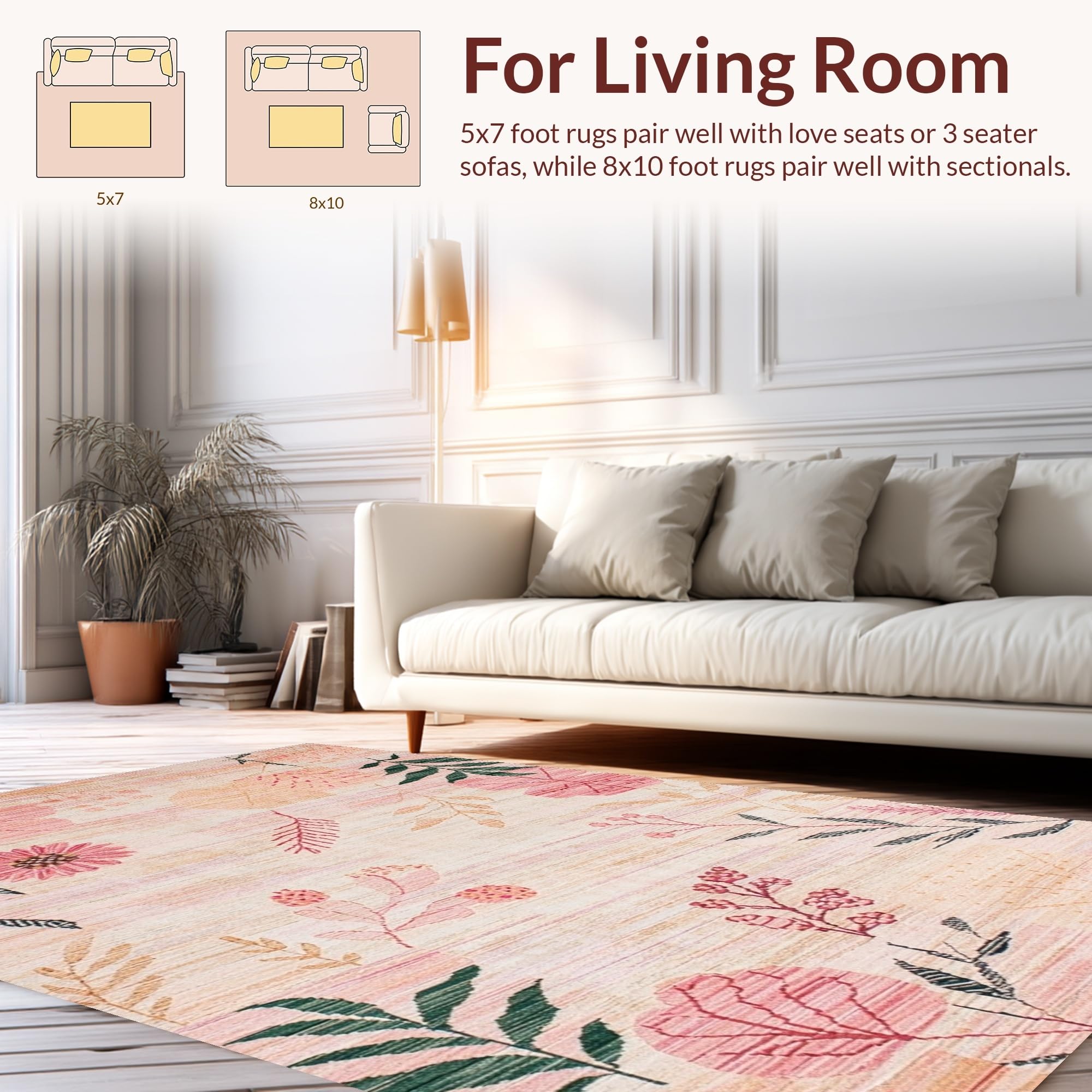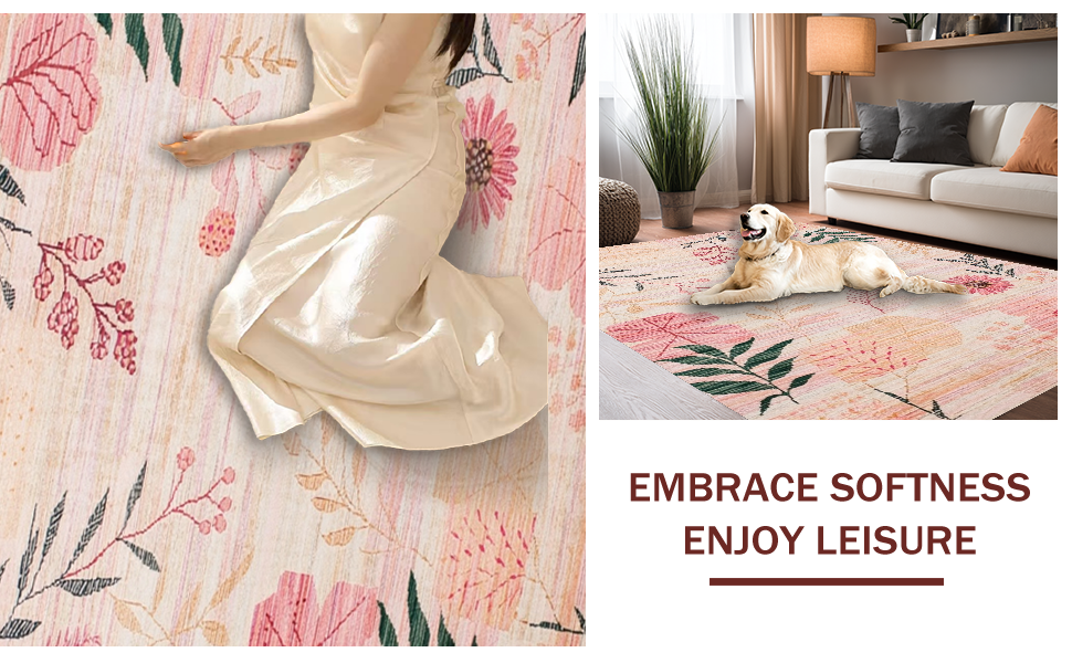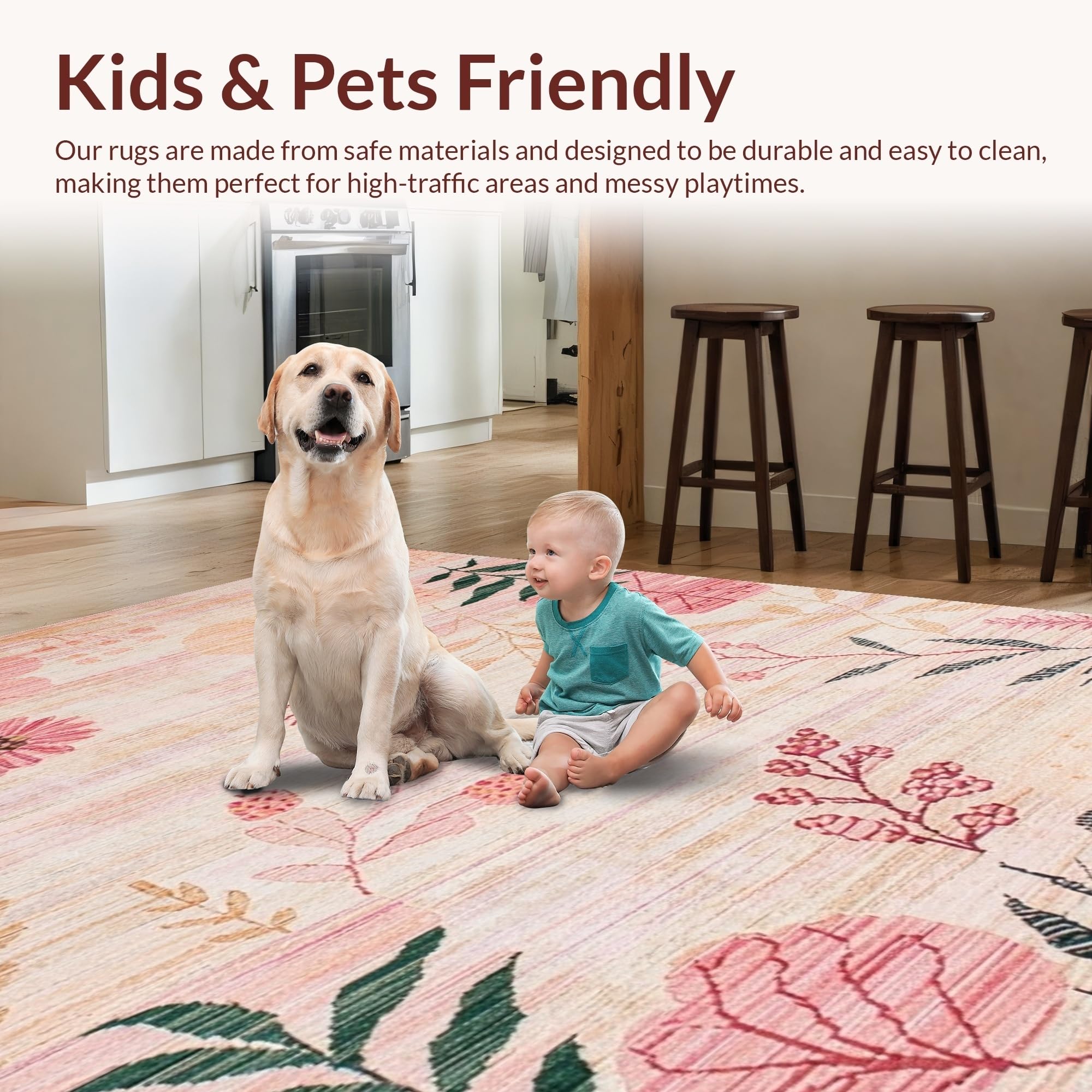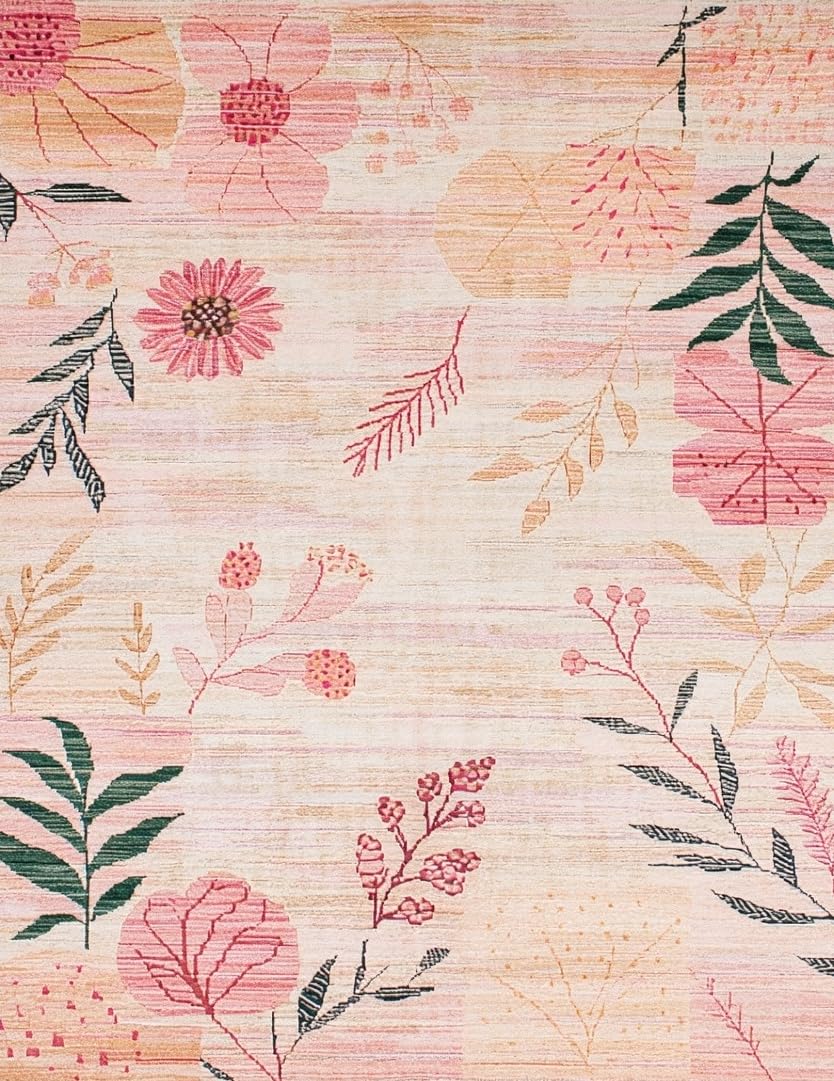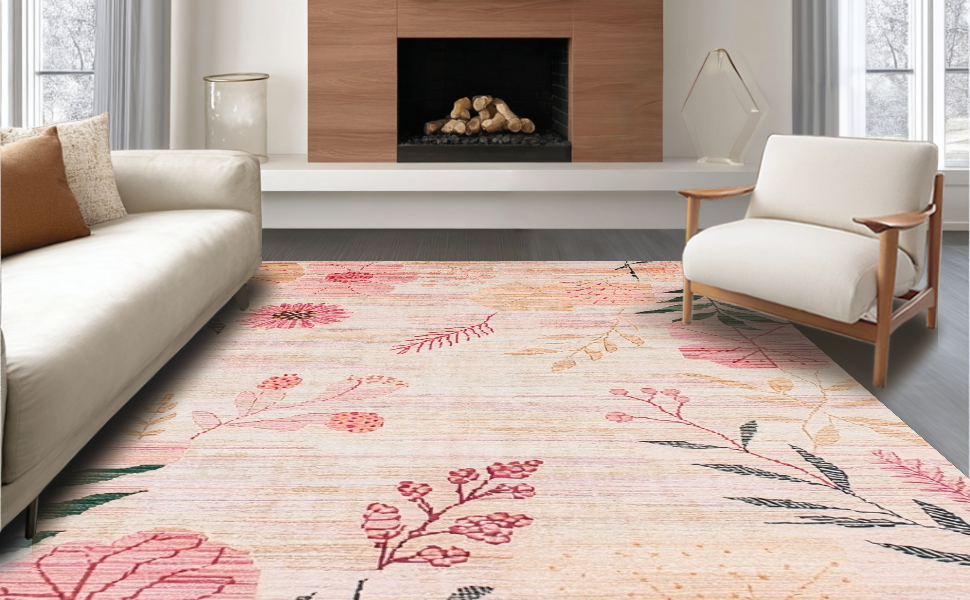 Ultra Soft Area Rug, Non Slip, Stain Resistant, Washable Area Rugs for Living Room, Bedroom, Playful Earthy Abstract Floral Design(Pink) Overview: