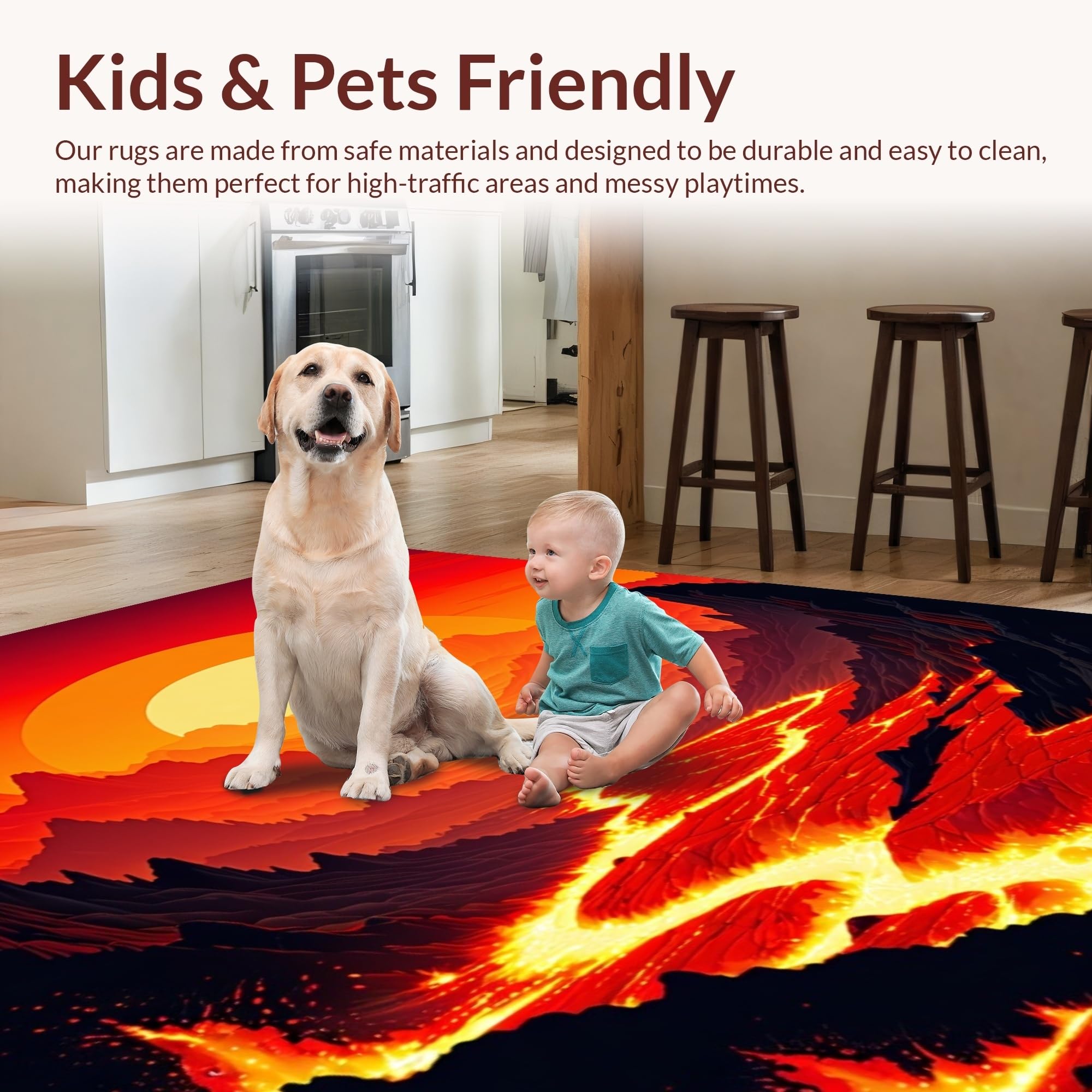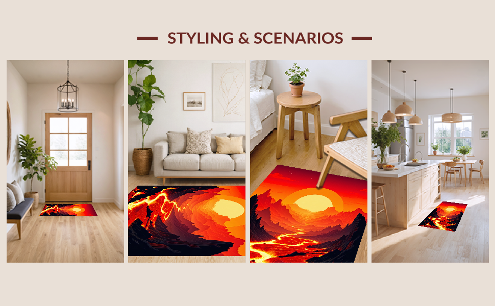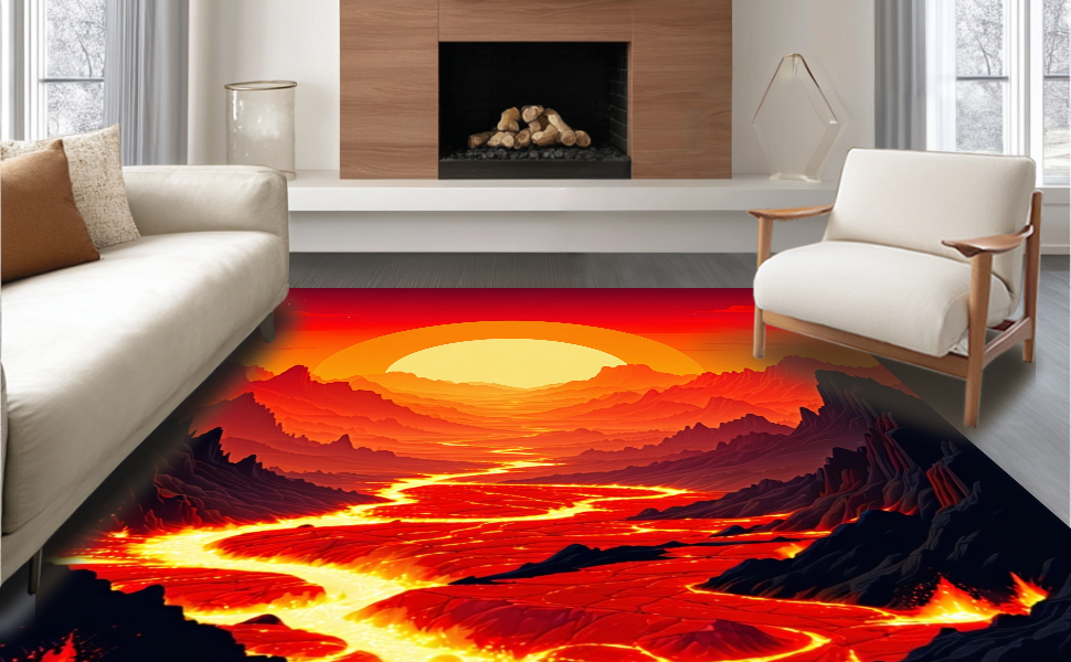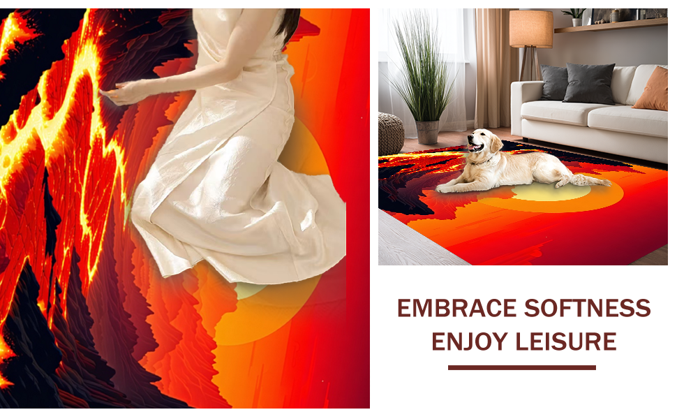 Ultra Soft Area Rug, Non Slip, Stain Resistant, Washable Area Rugs for Living Room, Bedroom, Playful Fantasy Adventure Scene(Red) Overview: