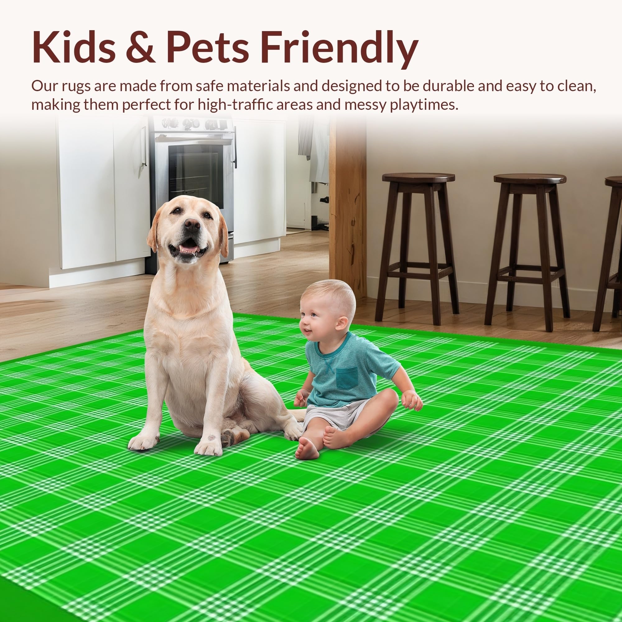 Ultra Soft Area Rug, Non Slip, Stain Resistant, Washable Area Rugs for Living Room, Bedroom, Playful Festive Trellis Arrangement(Green) Overview: