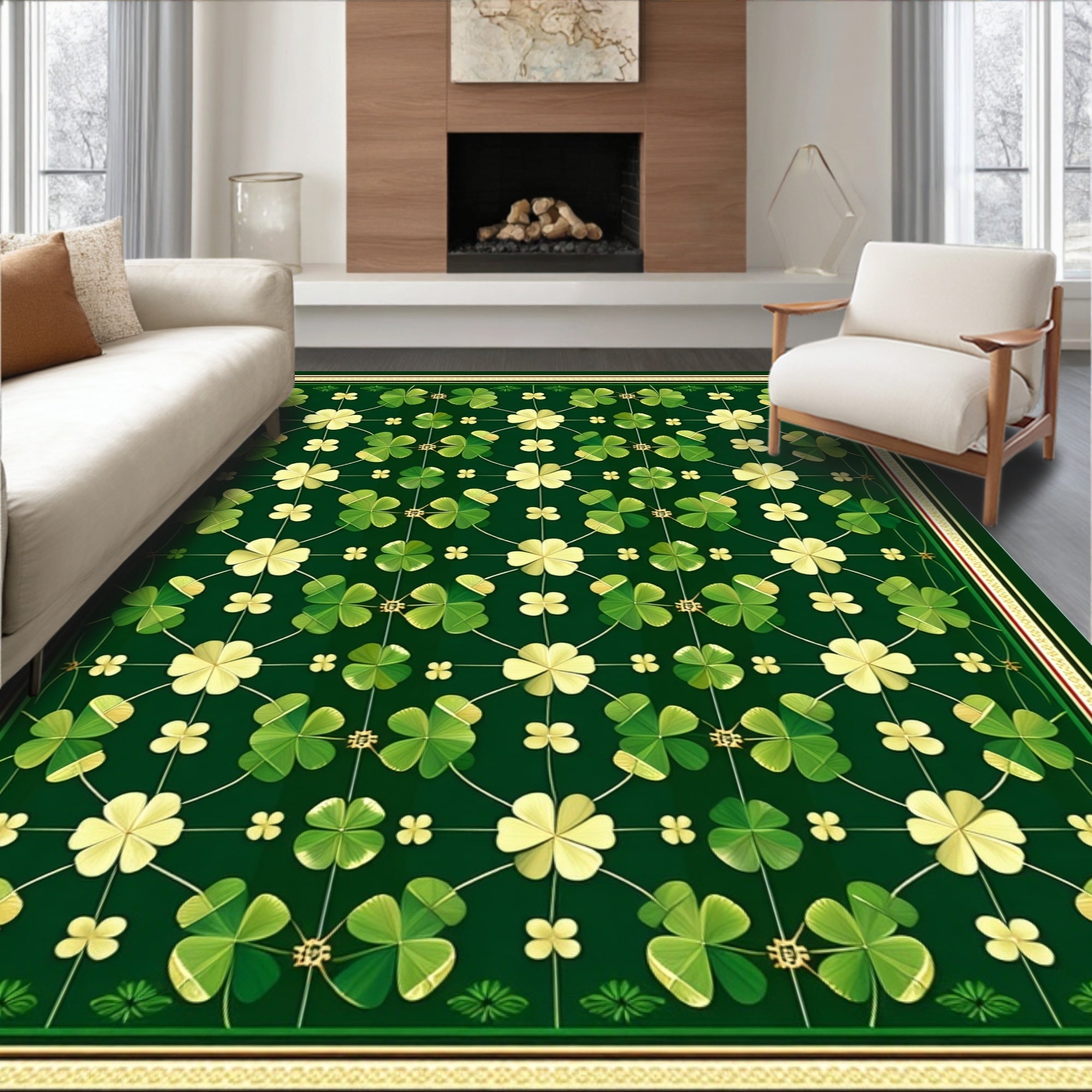 Flatwoven High Traffic Area Rug, Playful Green Botanical Print, Non Slip, Stain Resistant, Washable Area Rugs for Living Room, Bedroom (Green) Overview: