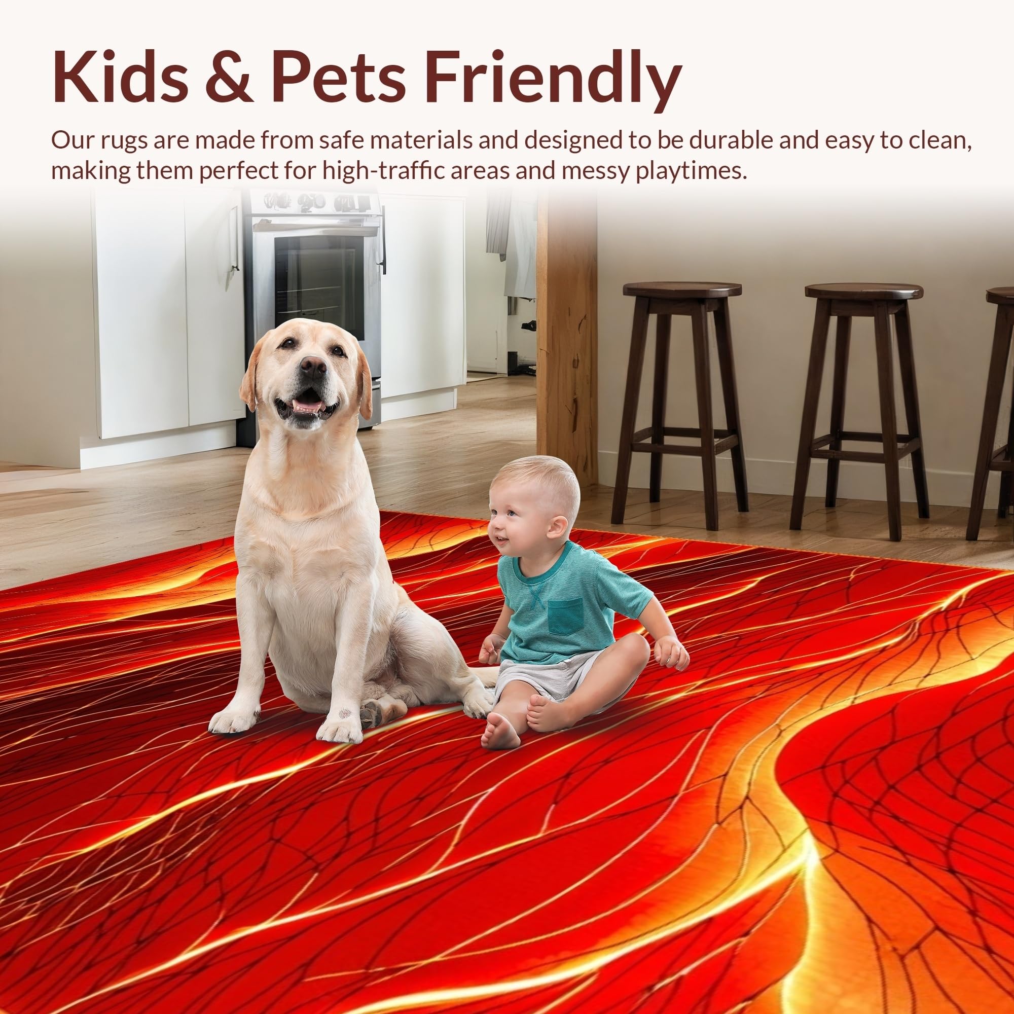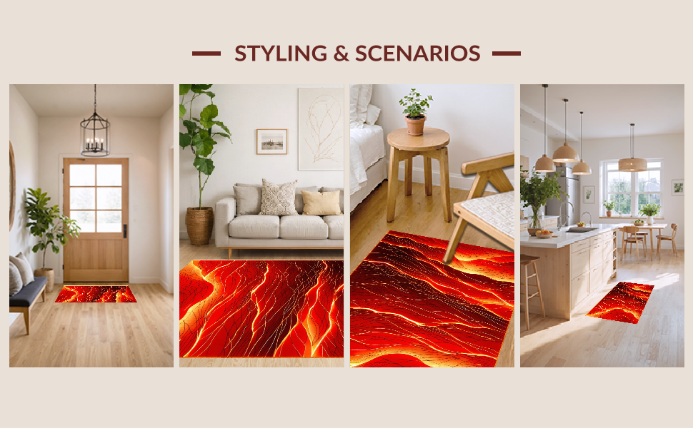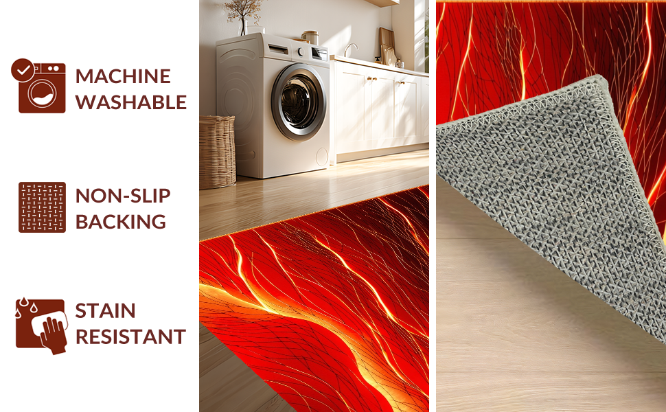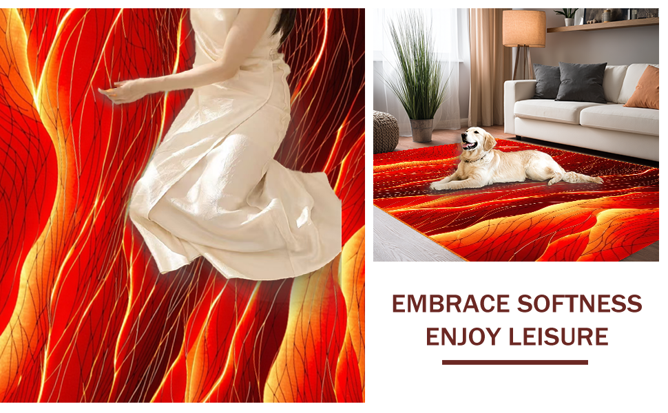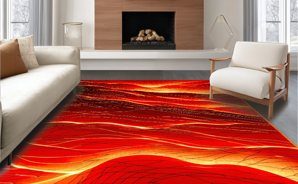 Ultra Soft Area Rug, Non Slip, Stain Resistant, Washable Area Rugs for Living Room, Bedroom, Playful Lava-Inspired Aesthetic(Red) Overview: