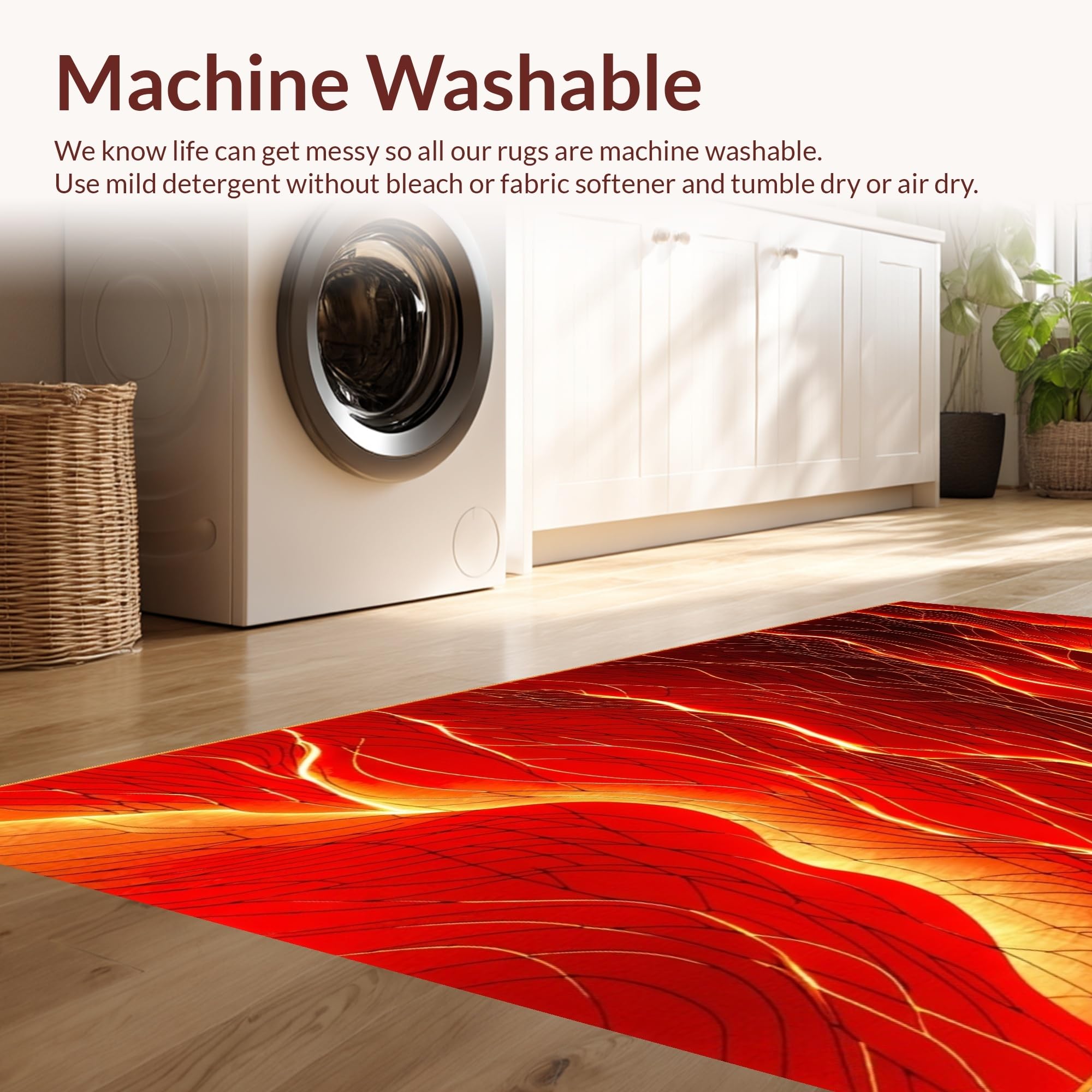 - Machine Washable: Our rugs can be easily thrown in the wash machine.