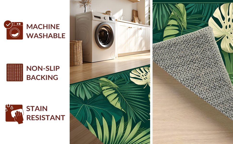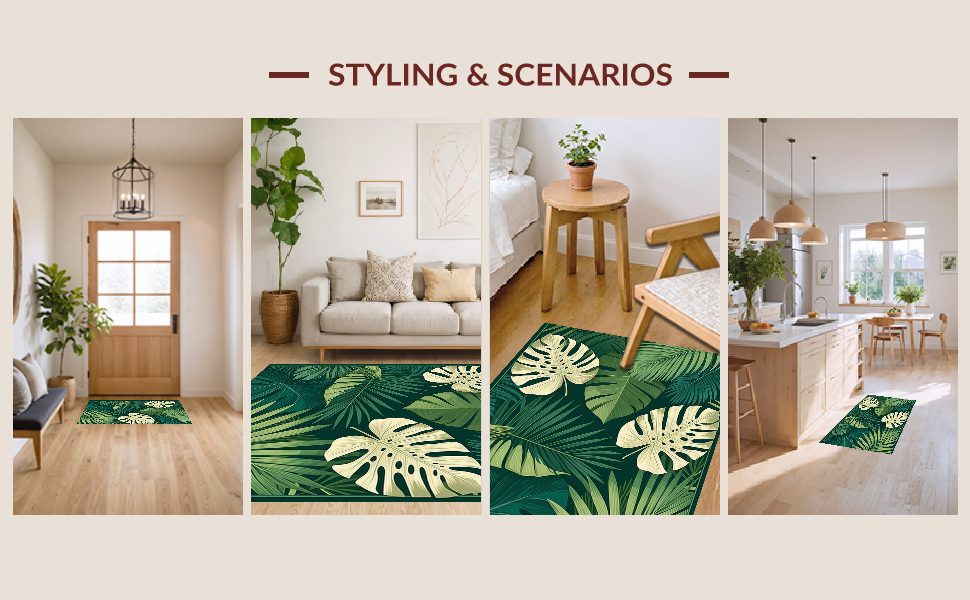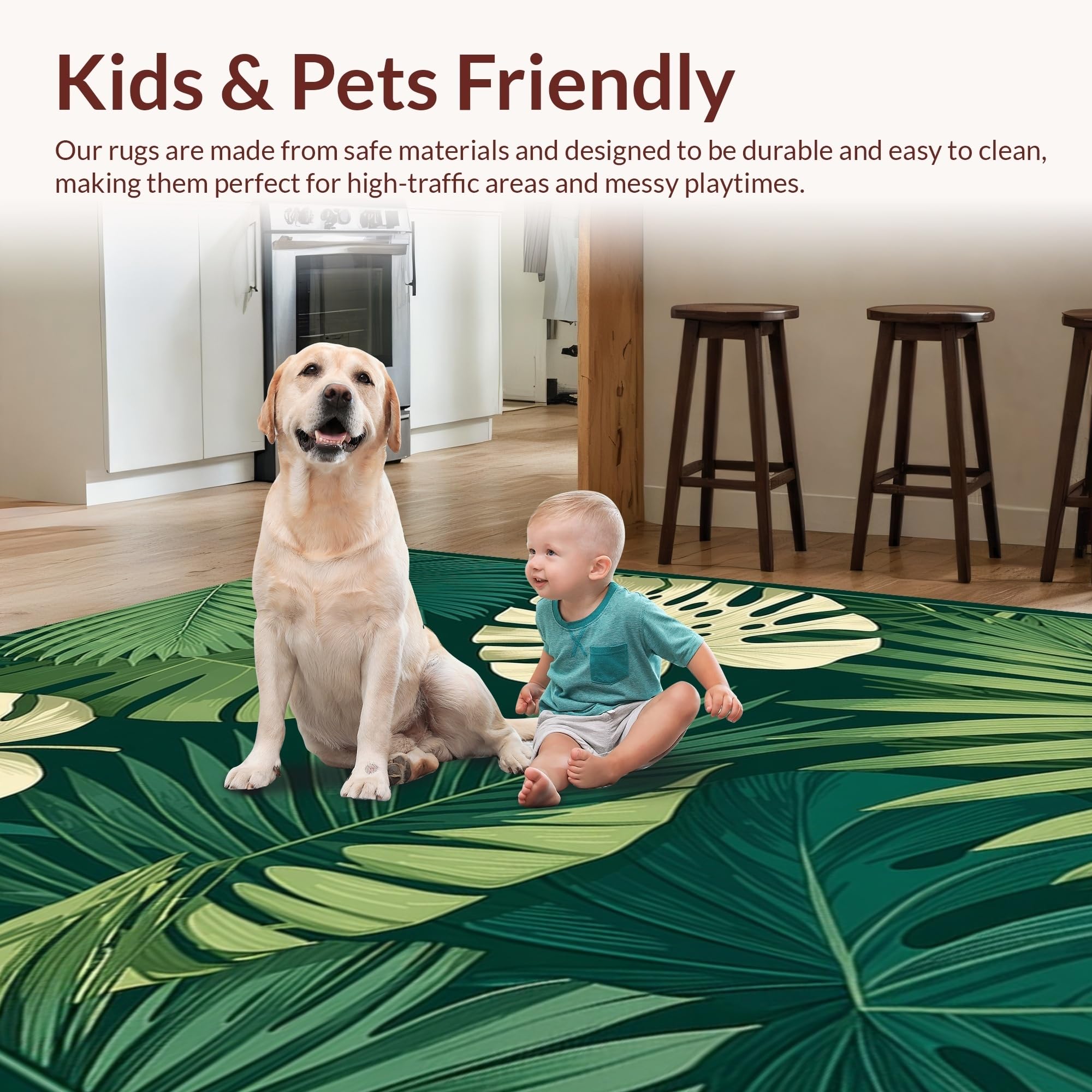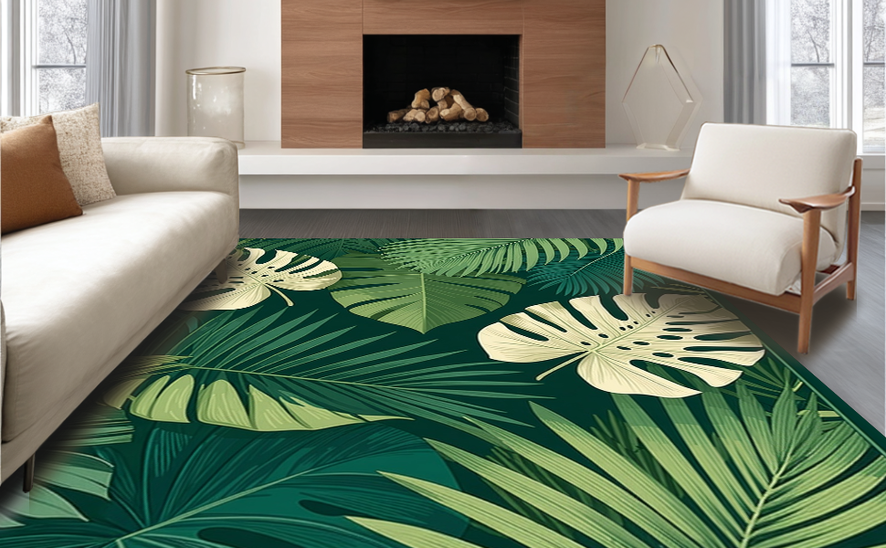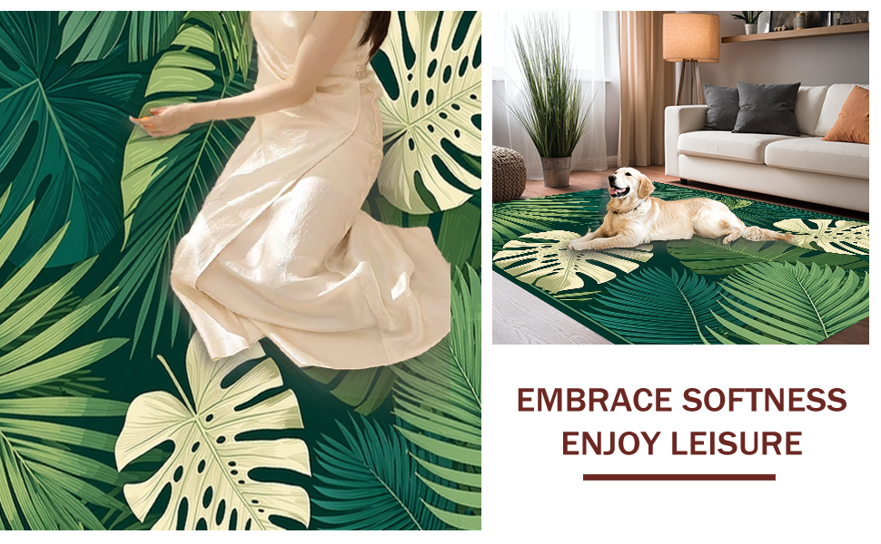 Ultra Soft Area Rug, Non Slip, Stain Resistant, Washable Area Rugs for Living Room, Bedroom, Playful Leafy Bathroom Charm(Green) Overview: