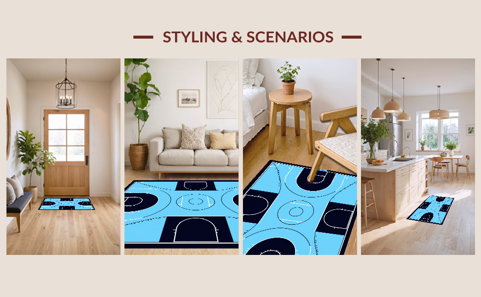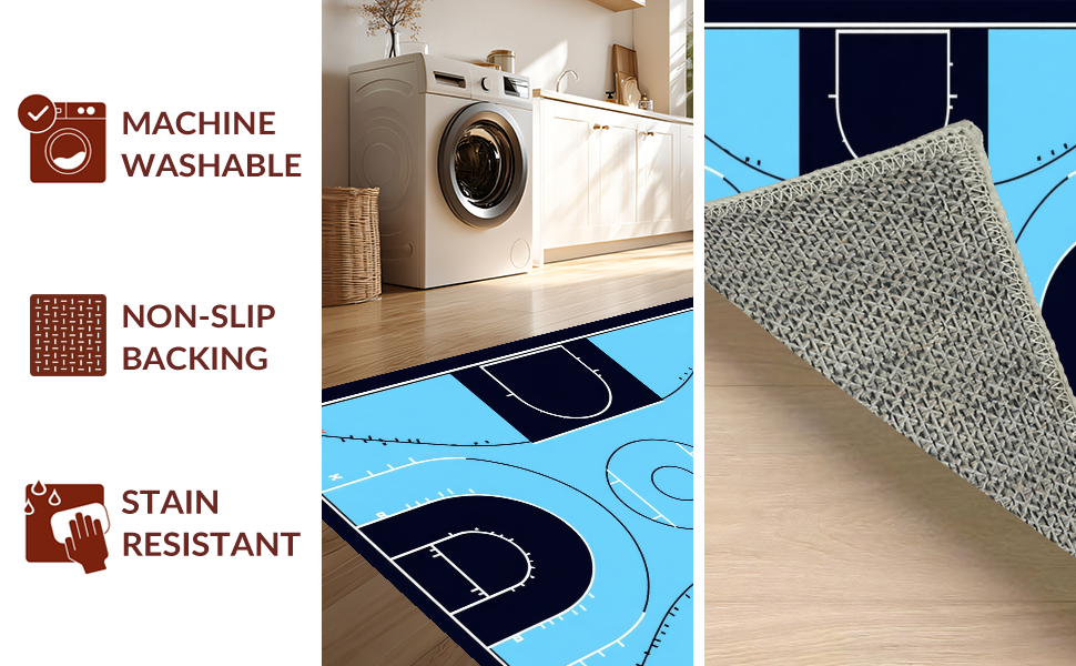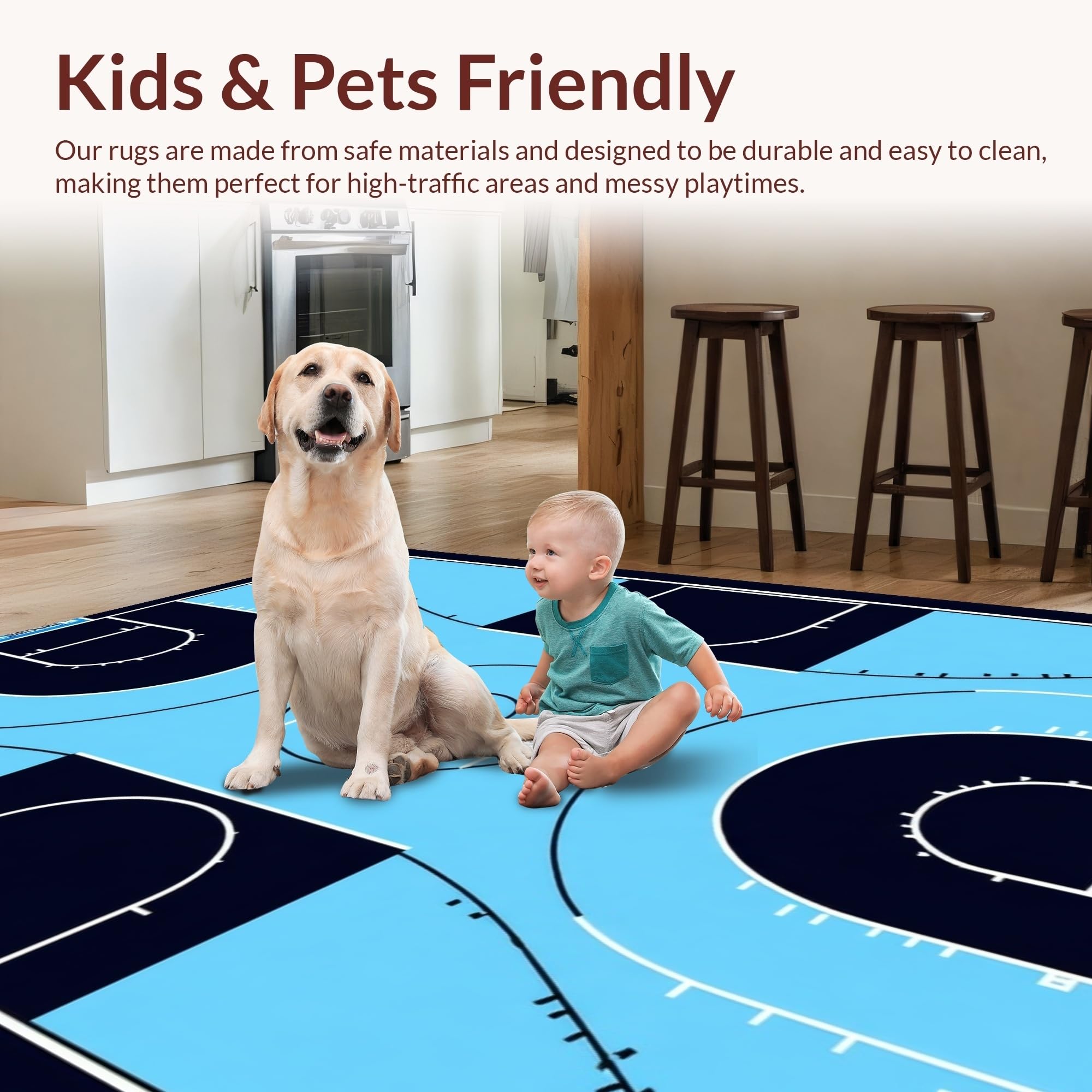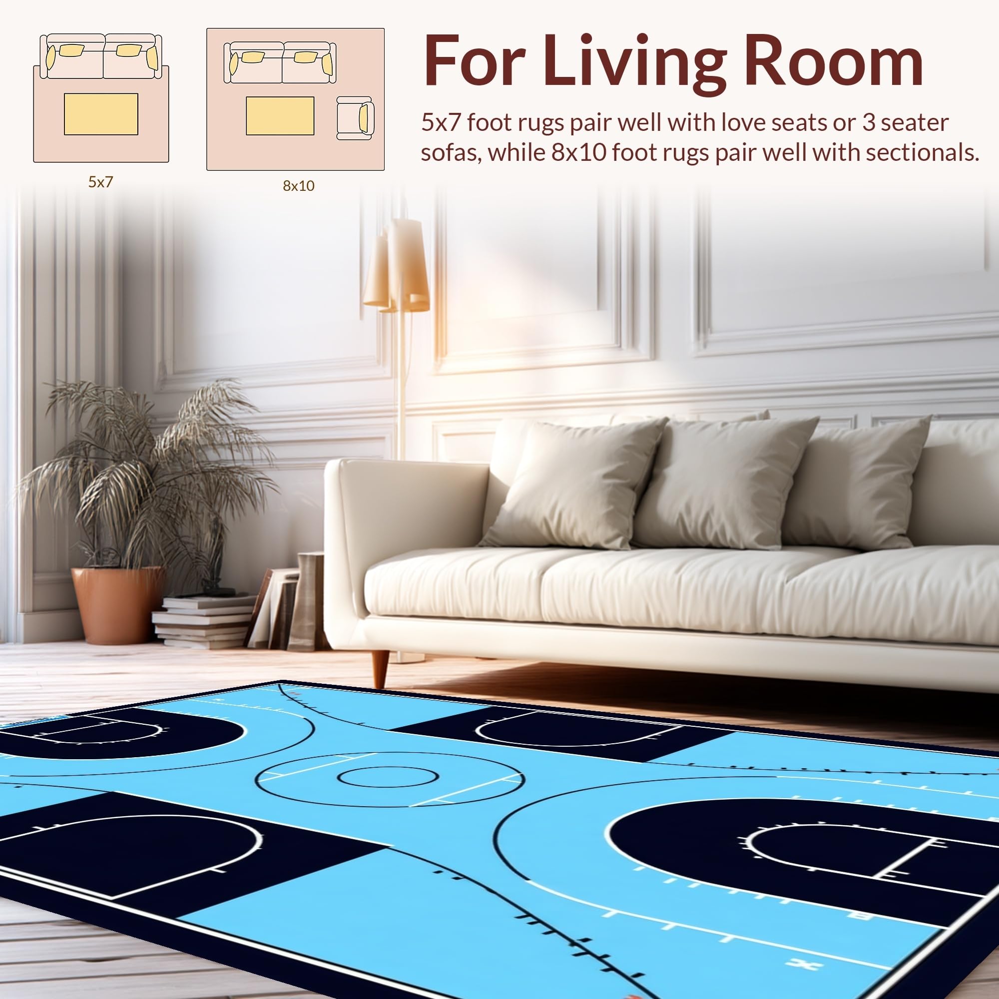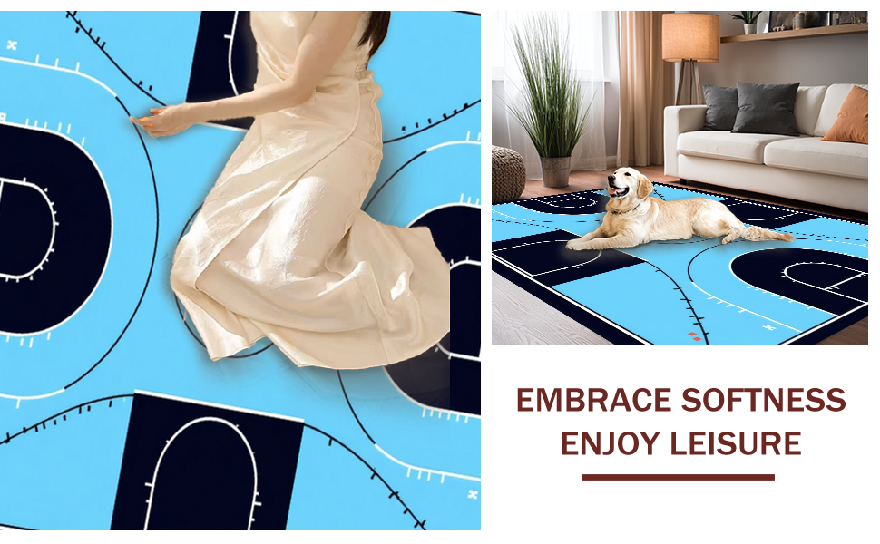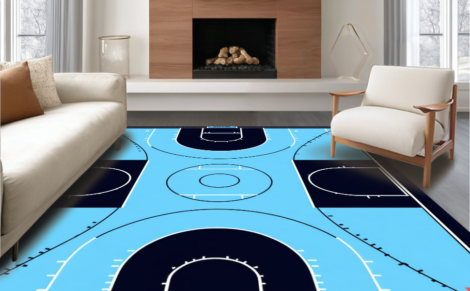 Ultra Soft Area Rug, Non Slip, Stain Resistant, Washable Area Rugs for Living Room, Bedroom, Playful Minimalist Sport Motif(Blue) Overview: