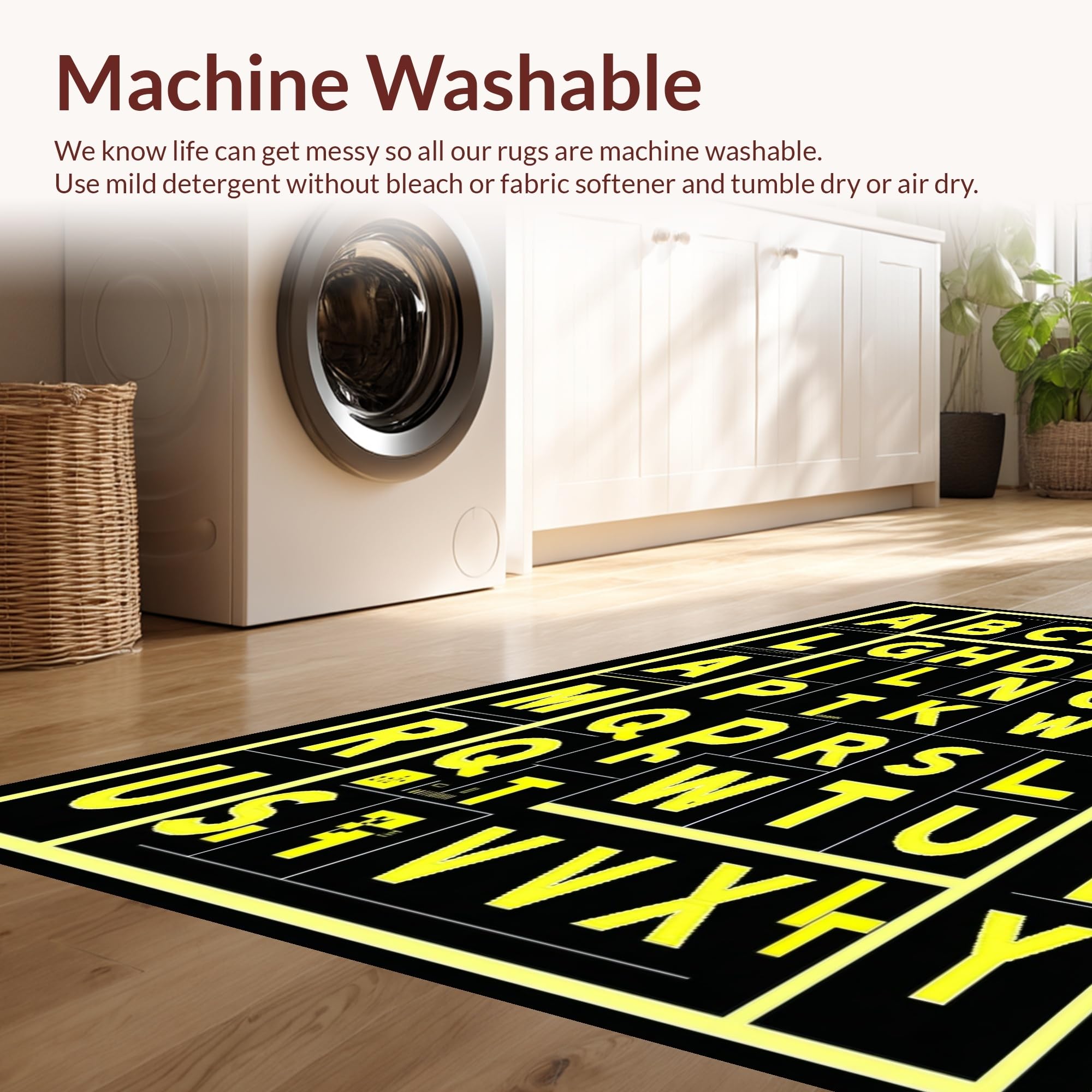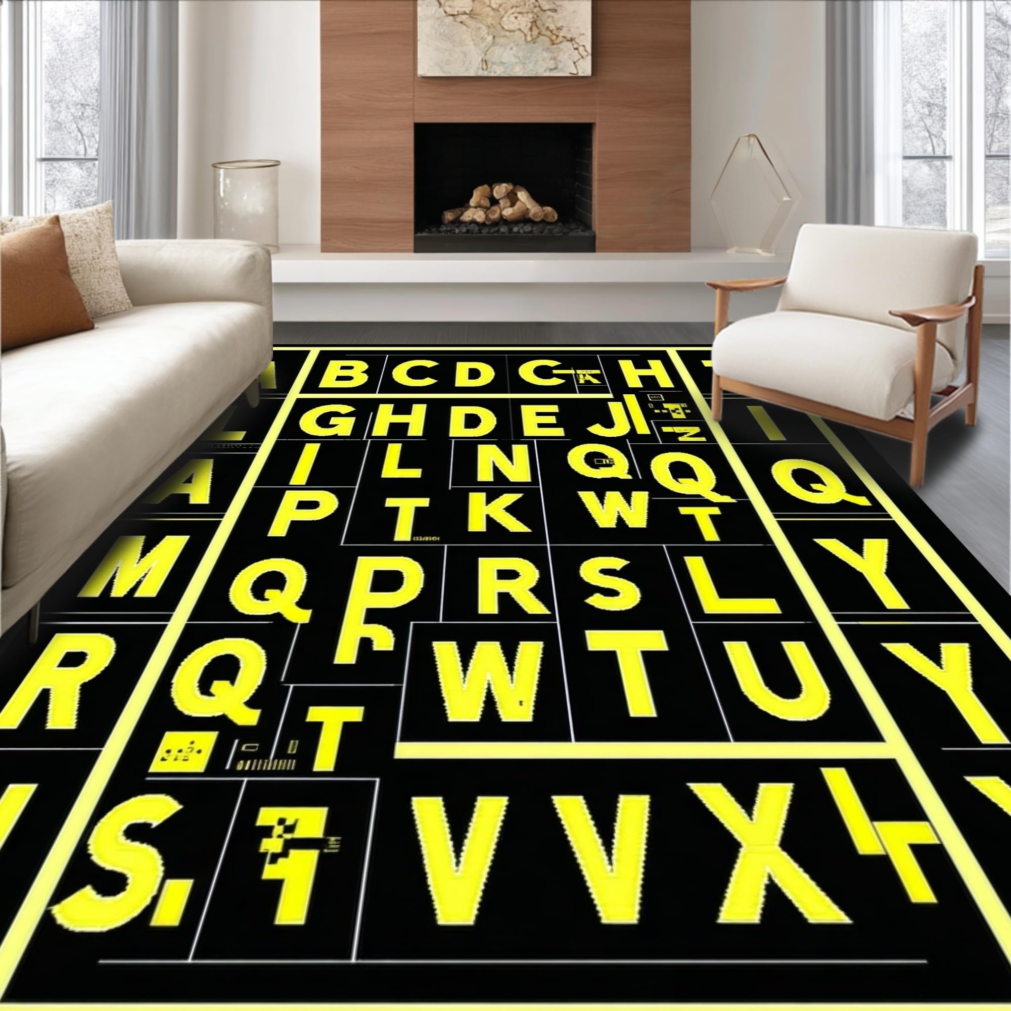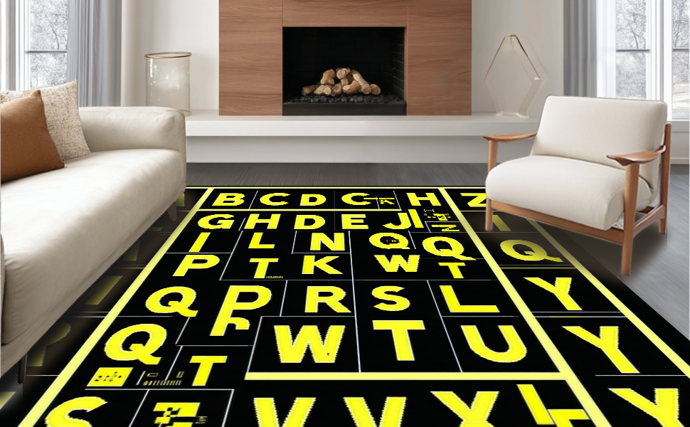Ultra Soft Area Rug, Non Slip, Stain Resistant, Washable Area Rugs for Living Room, Bedroom, Playful Monochrome Alphabet Aesthetic(Yellow) Overview: