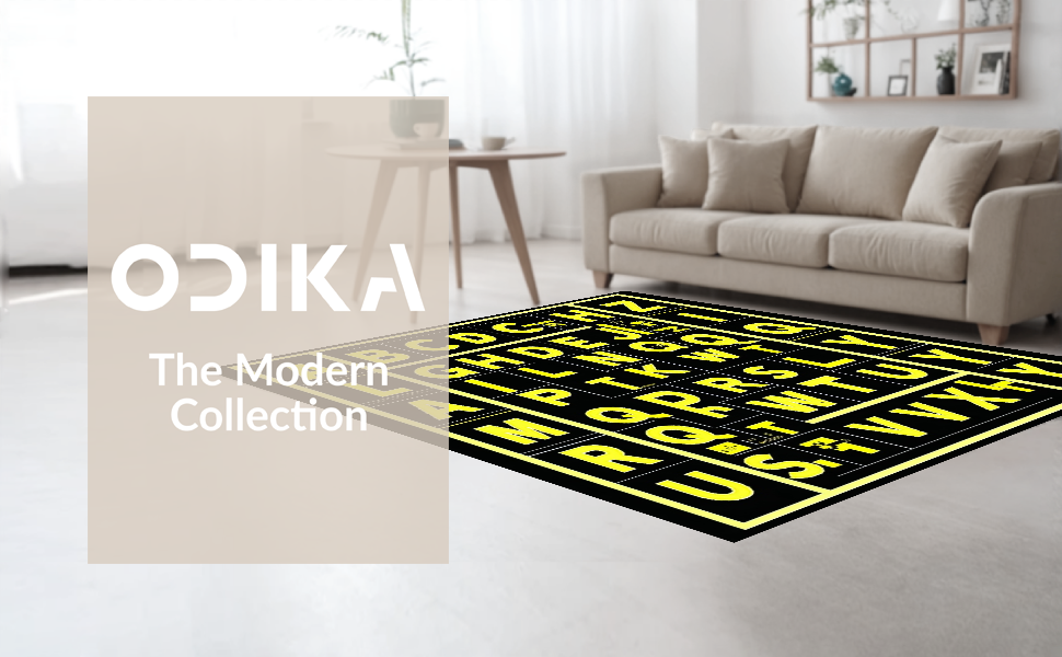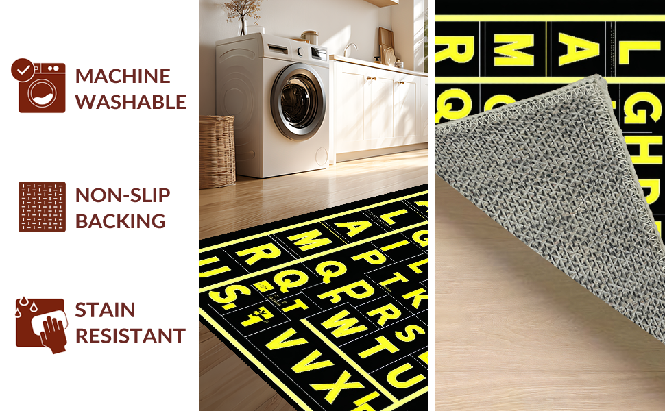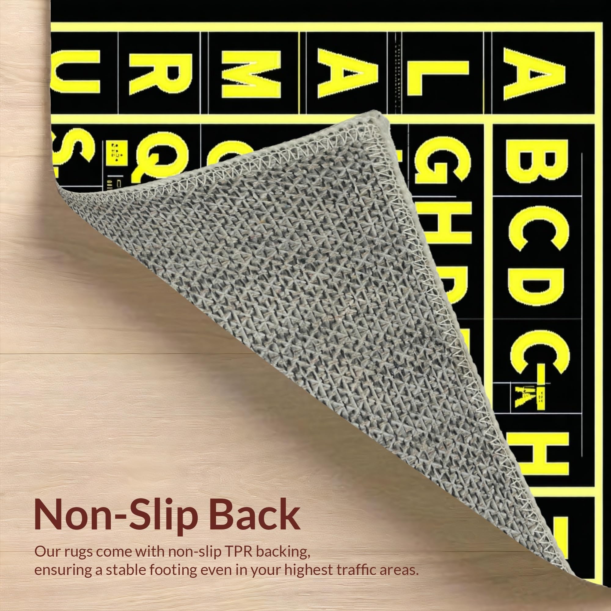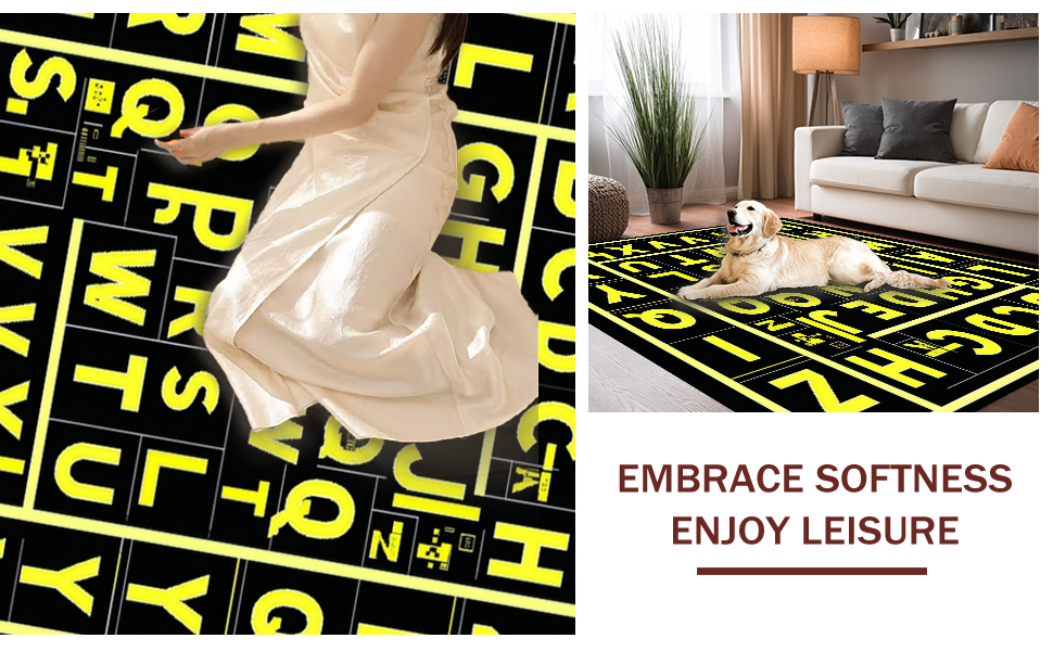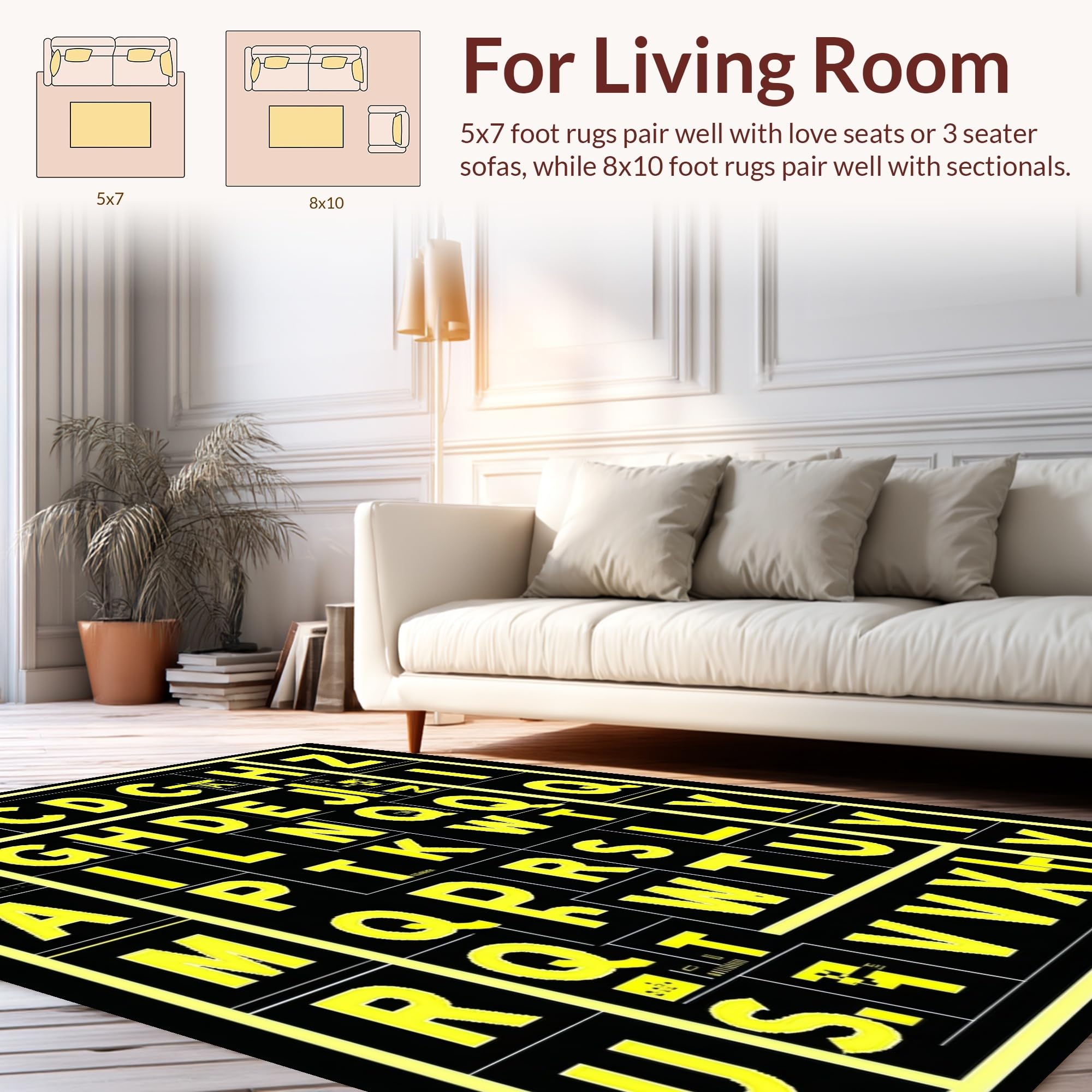 Ultra Soft Area Rug, Non Slip, Stain Resistant, Washable Area Rugs for Living Room, Bedroom, Playful Monochrome Alphabet Aesthetic(Yellow) Overview: