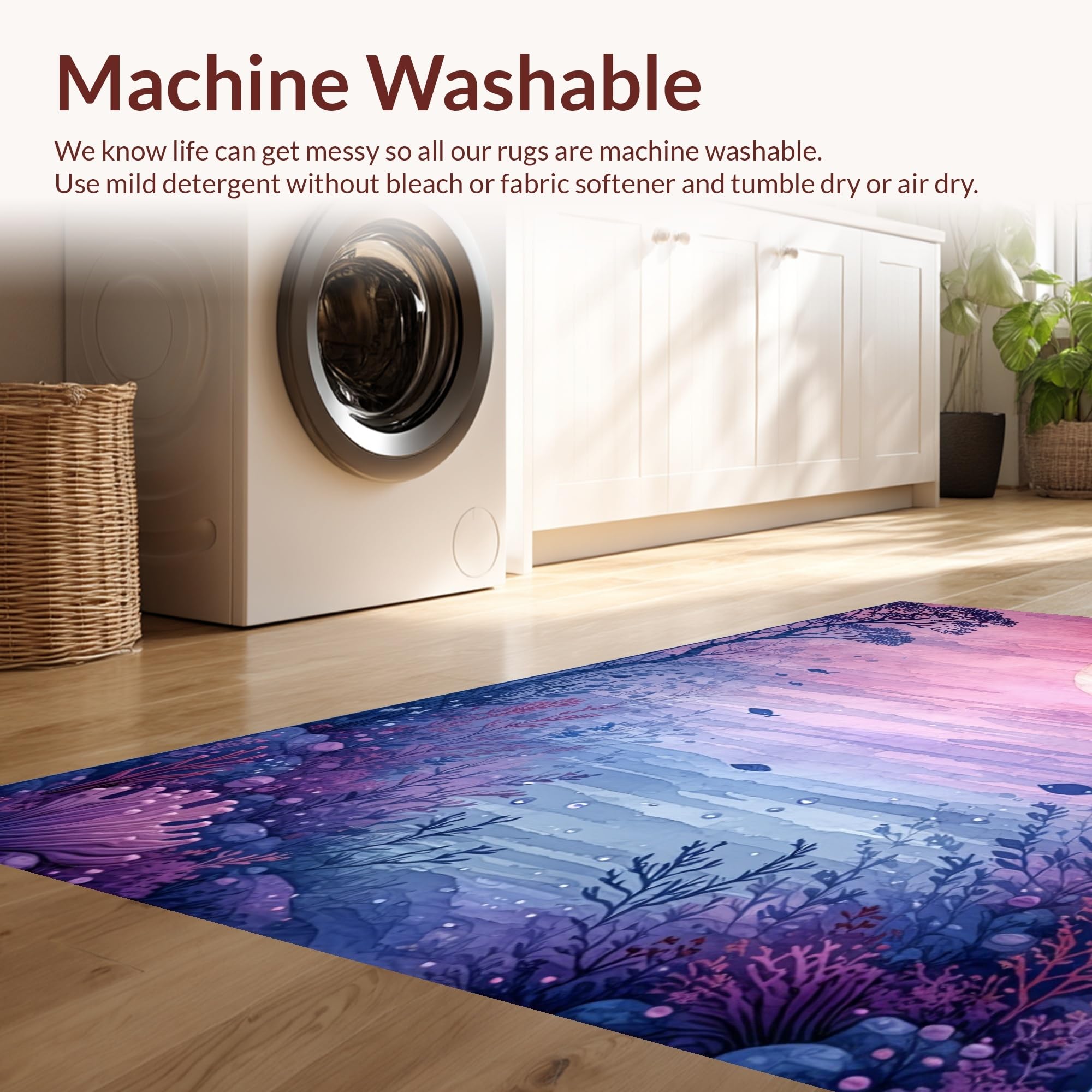 - Machine Washable: Our rugs can be easily thrown in the wash machine.