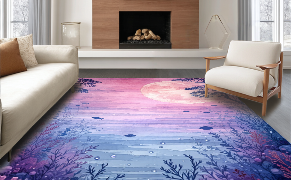 Ultra Soft Area Rug, Non Slip, Stain Resistant, Washable Area Rugs for Living Room, Bedroom, Playful Nautical Theme Elements(Purple) Overview: