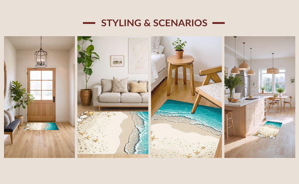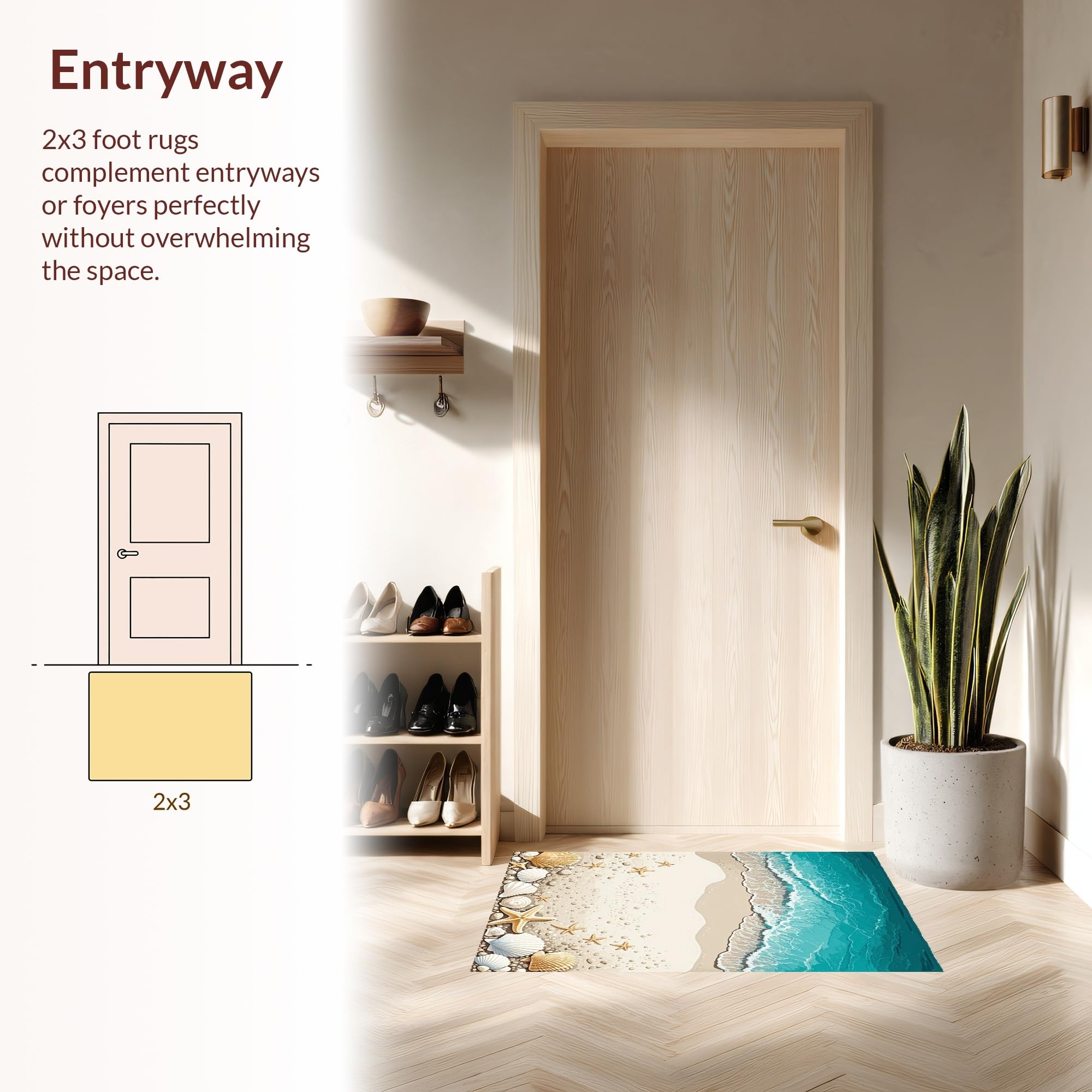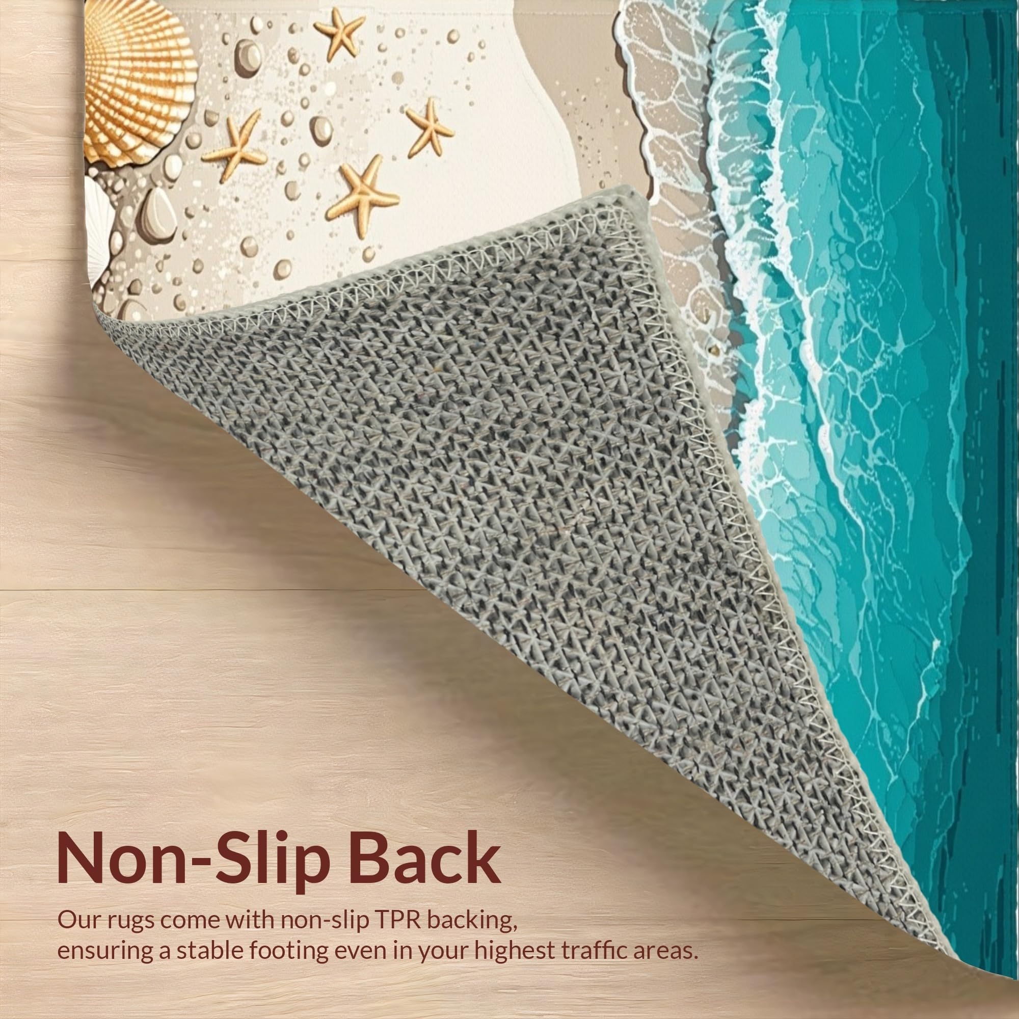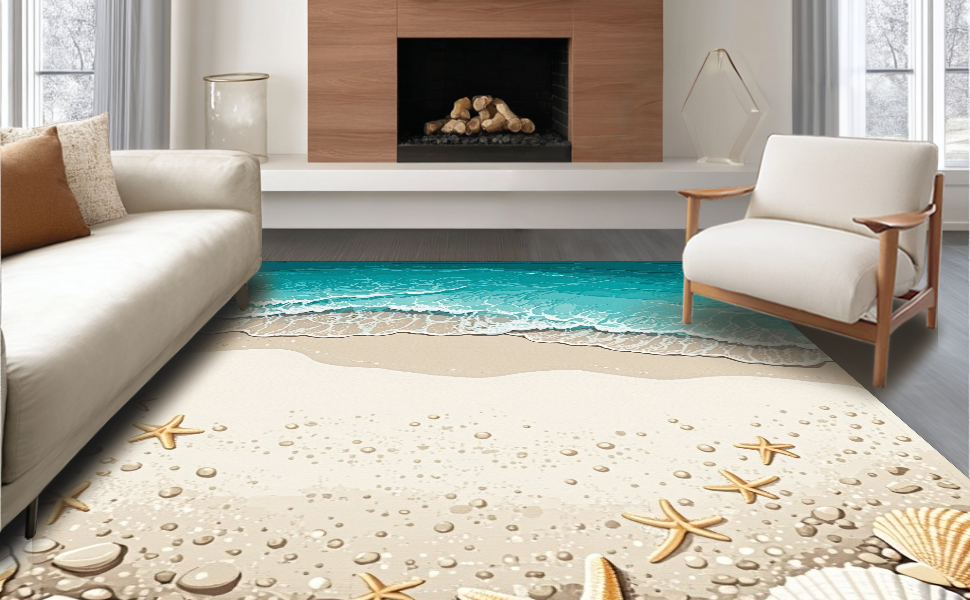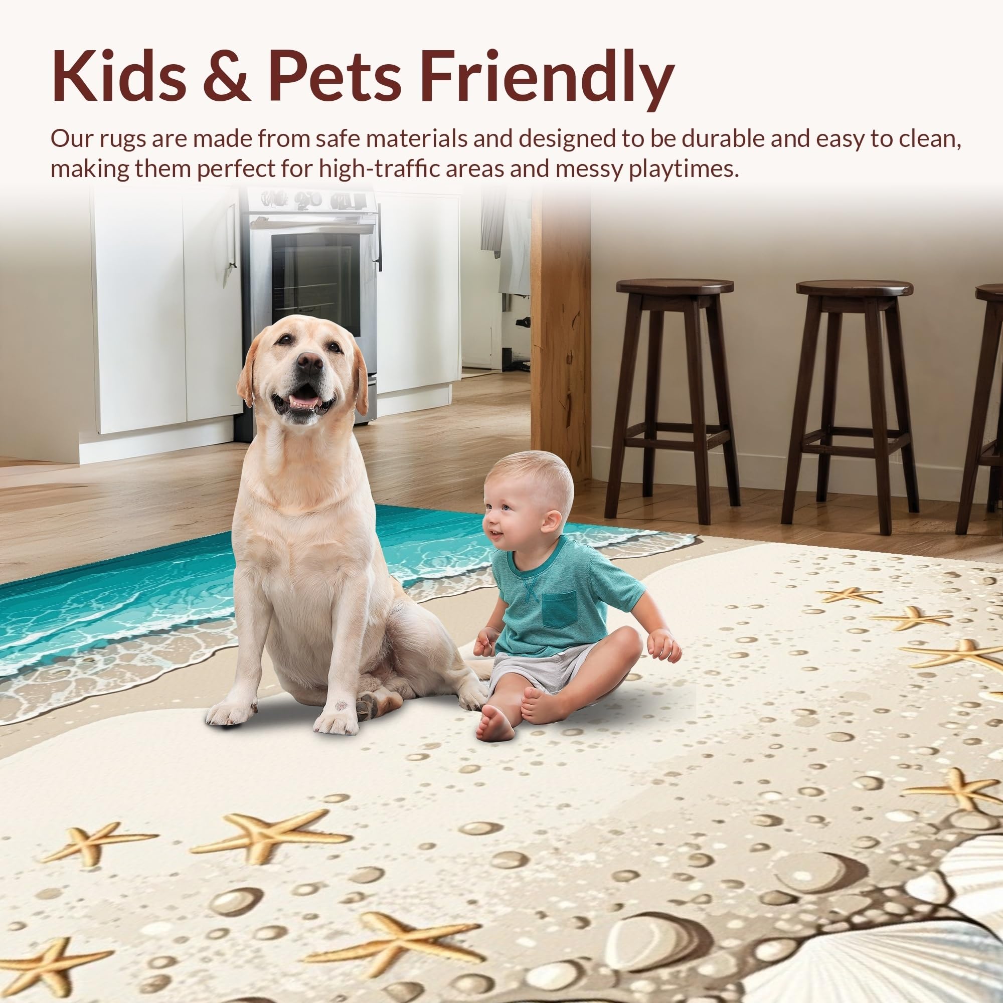 Ultra Soft Area Rug, Non Slip, Stain Resistant, Washable Area Rugs for Living Room, Bedroom, Playful Ocean Current Visual Theme(Beige) Overview: