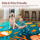 Ultra Soft Area Rug, Non Slip, Stain Resistant, Washable Area Rugs for Living Room, Bedroom, Playful Oceanic Animal Design(Blue) Overview: