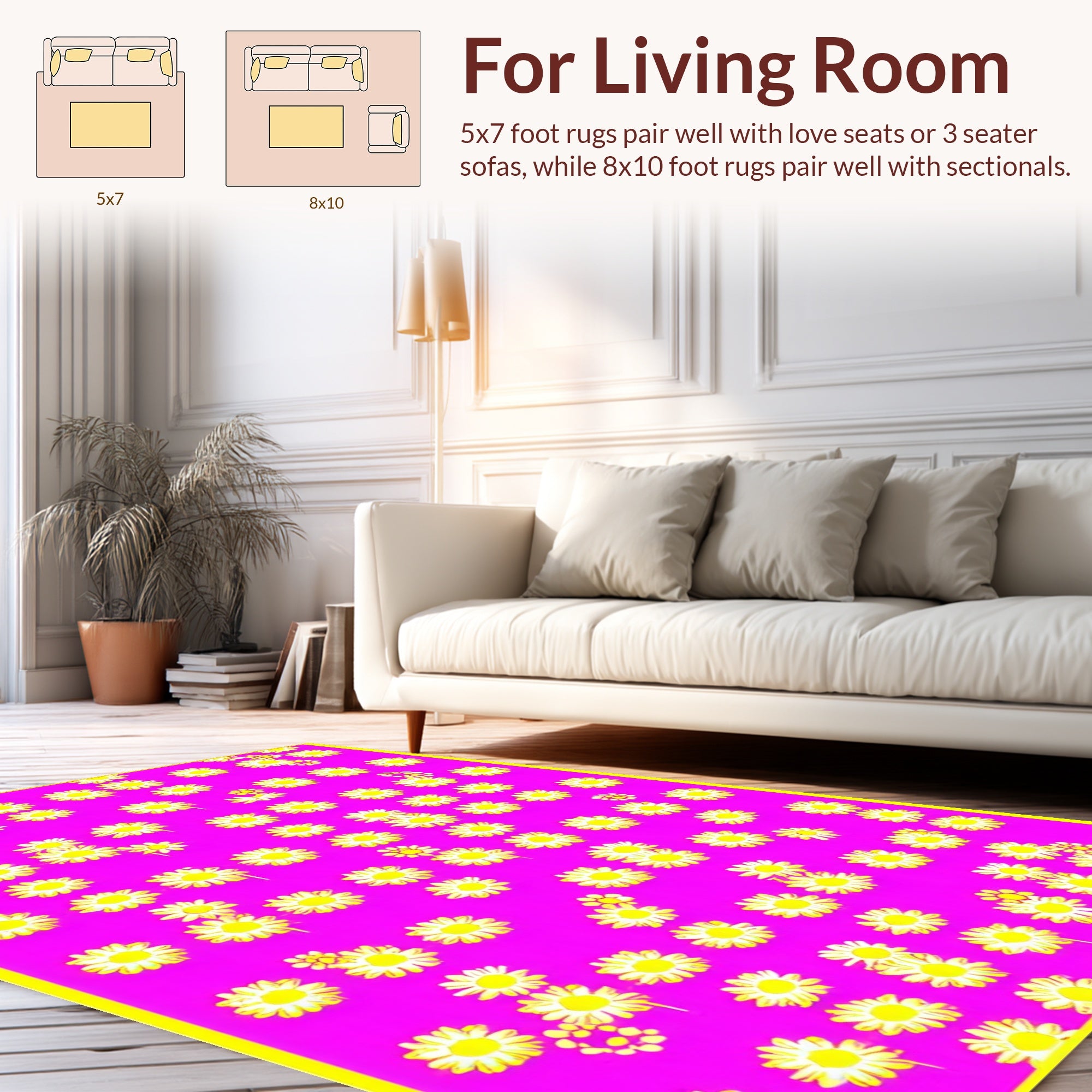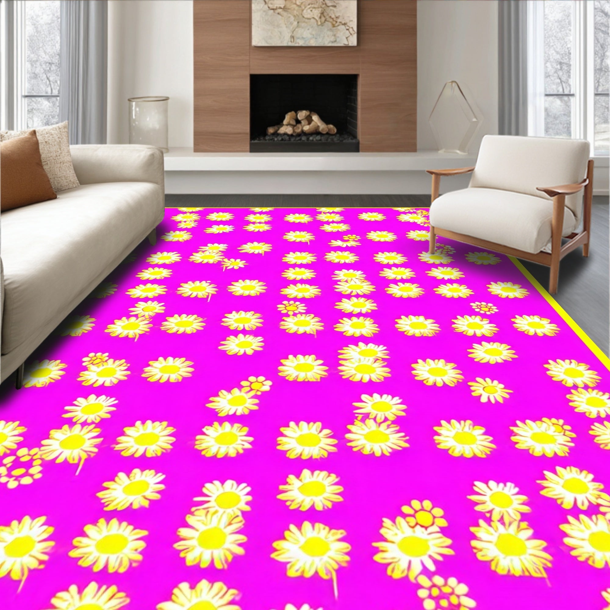 Flatwoven High Traffic Area Rug, Playful Pink Daisy, Non Slip, Stain Resistant, Washable Area Rugs for Living Room, Bedroom (Pink) Overview: