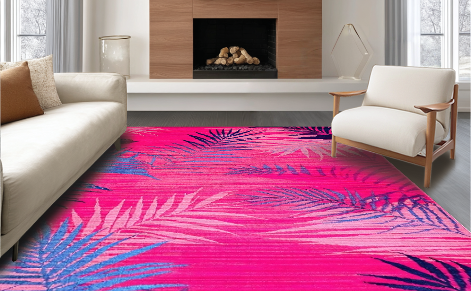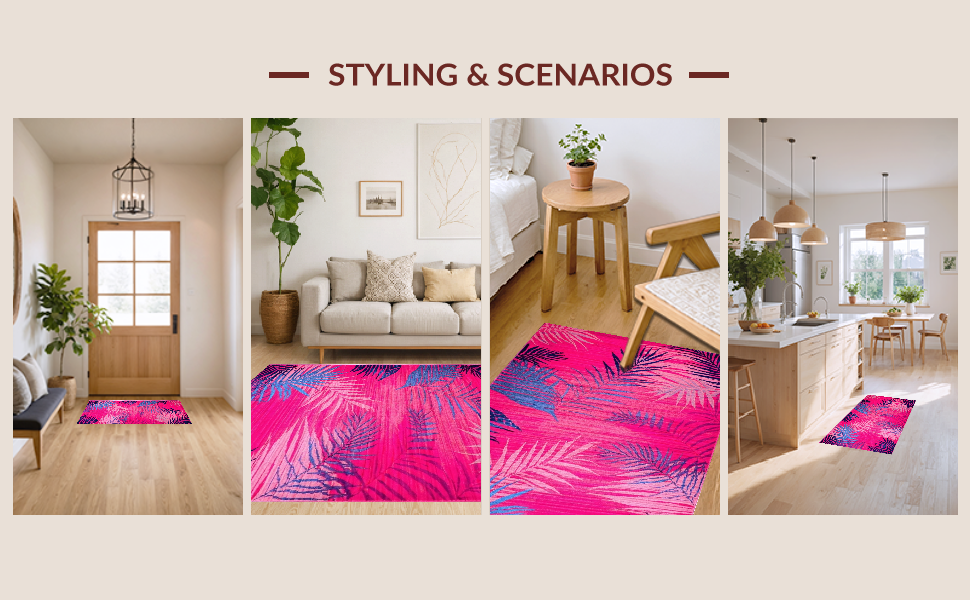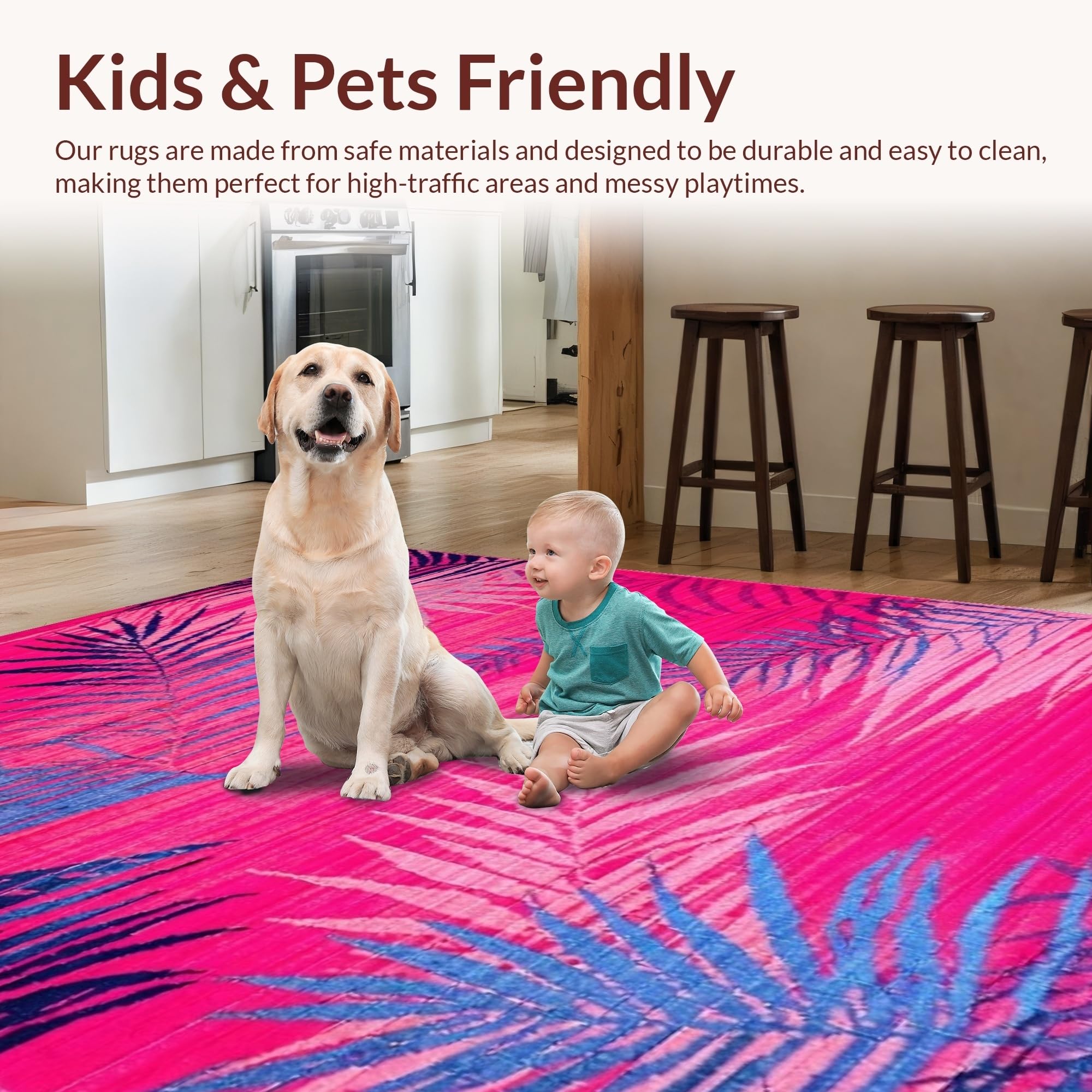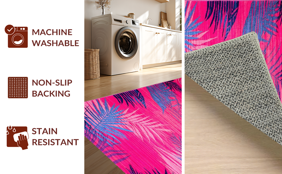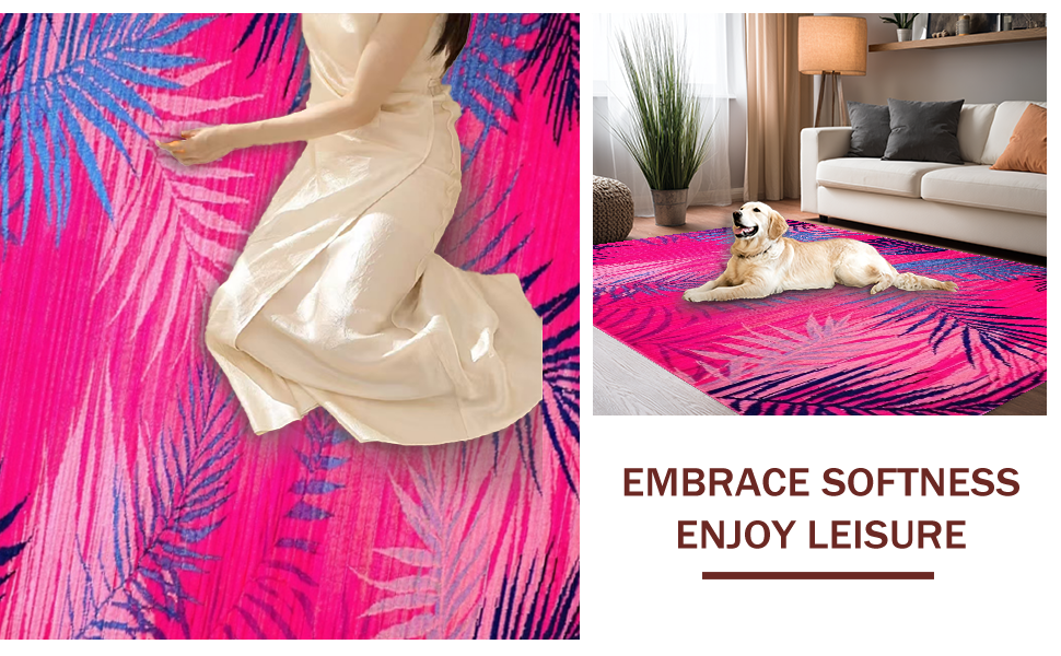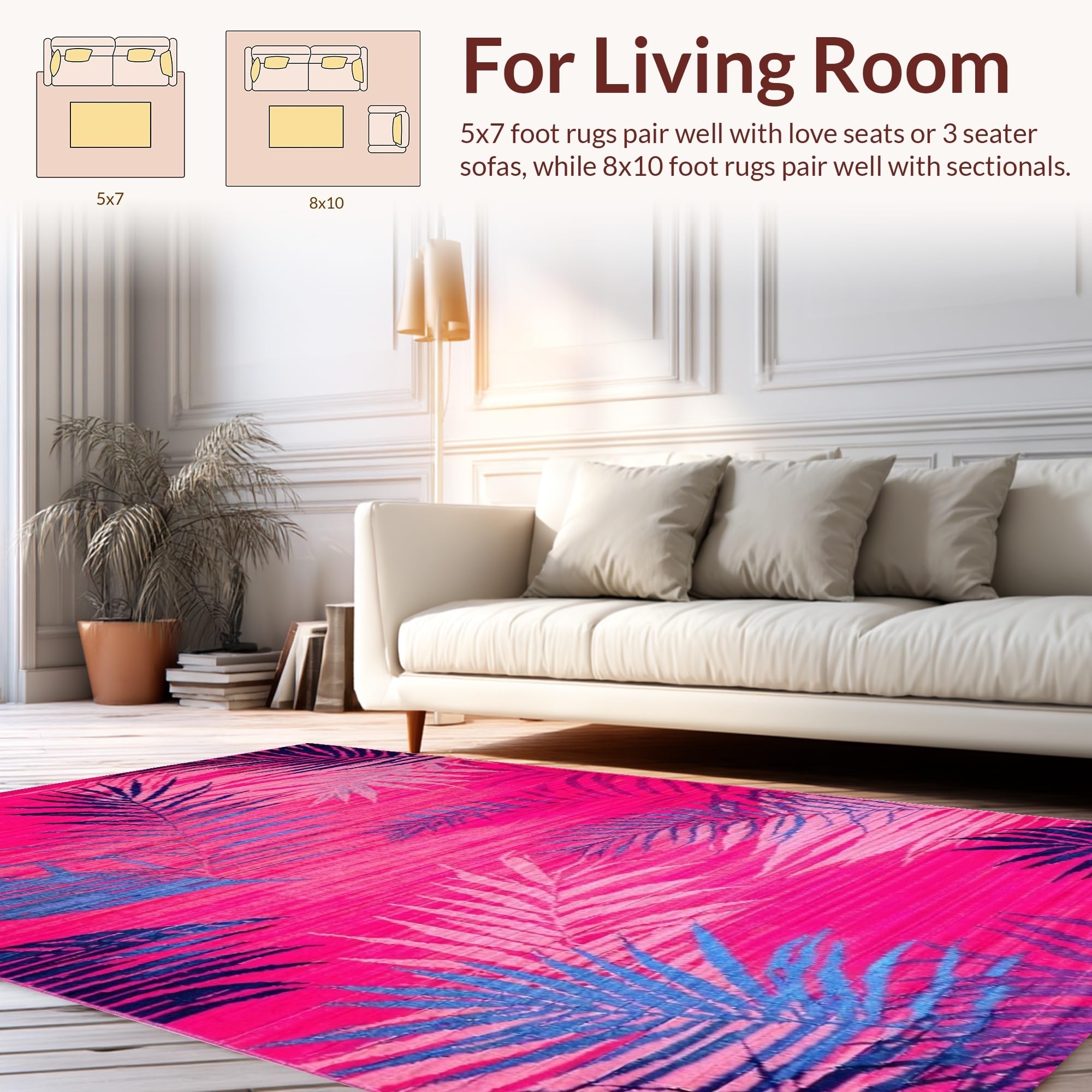 Ultra Soft Area Rug, Non Slip, Stain Resistant, Washable Area Rugs for Living Room, Bedroom, Playful Pink Jungle Aesthetic(Pink) Overview: