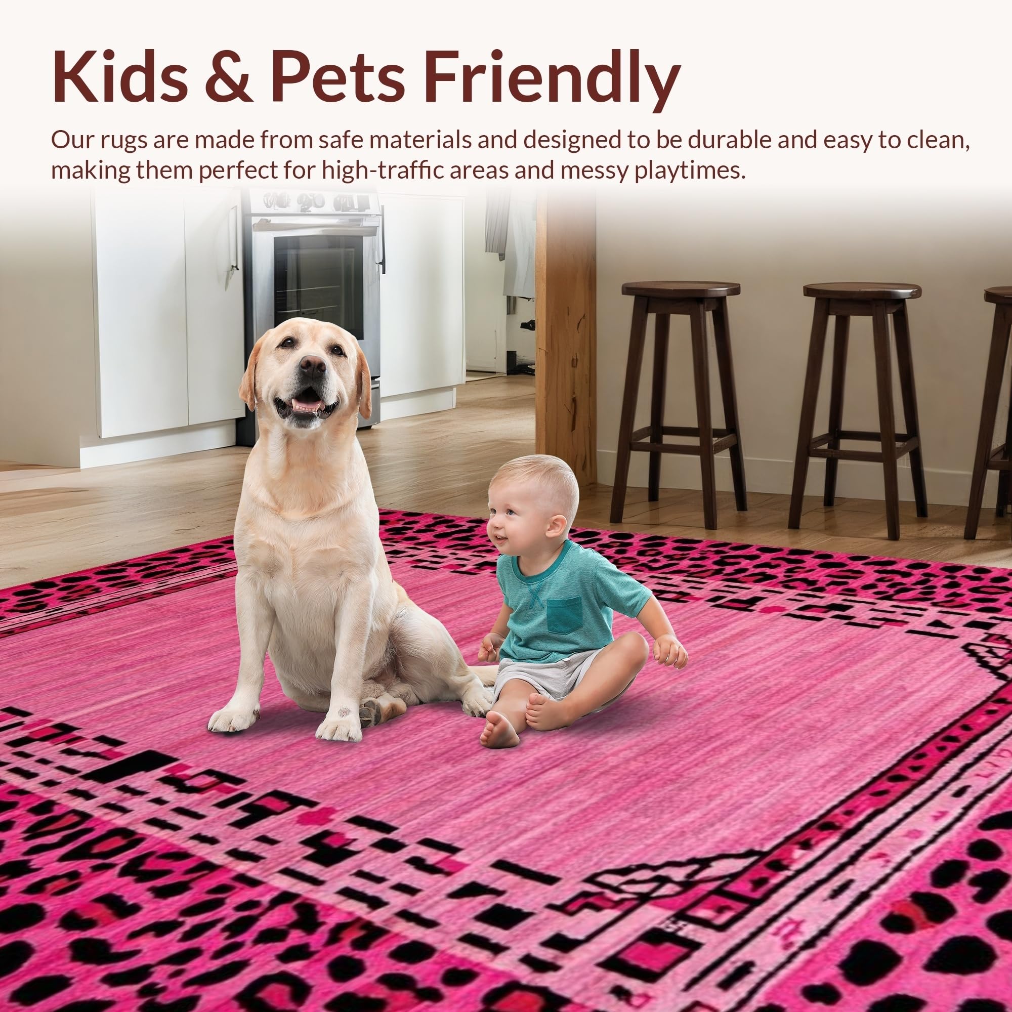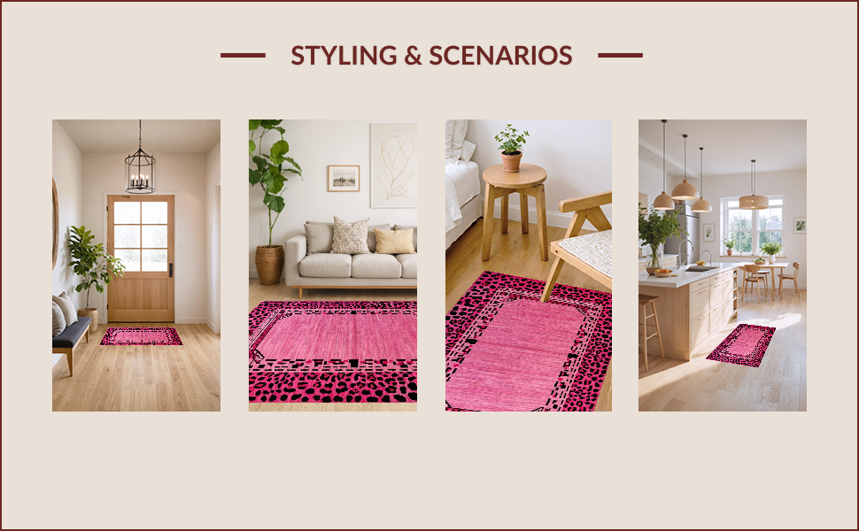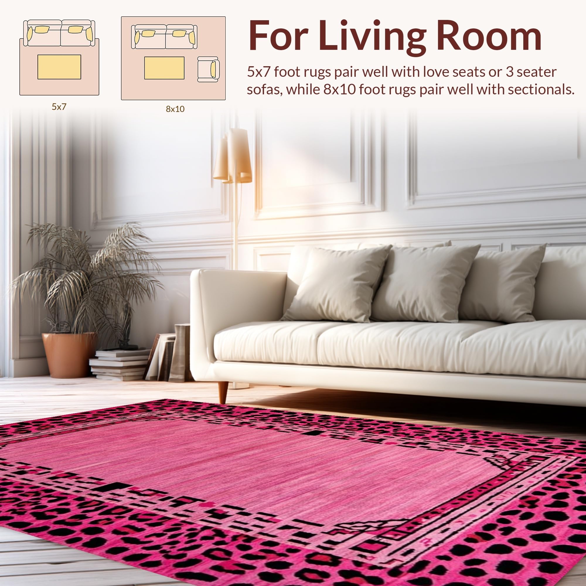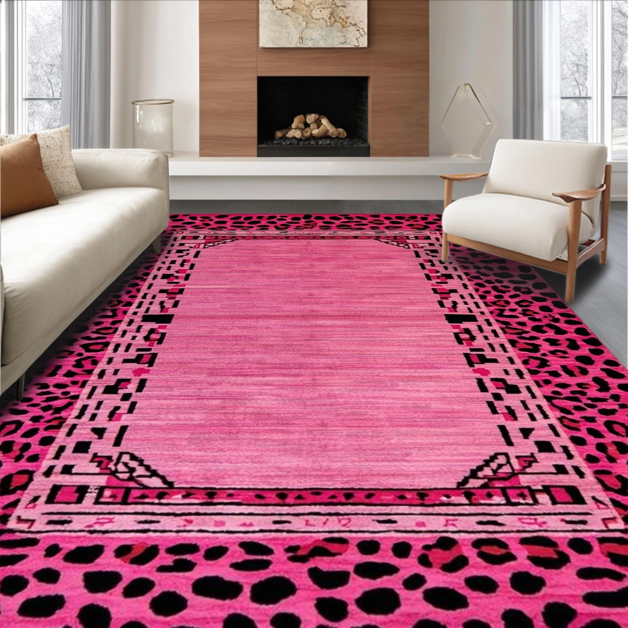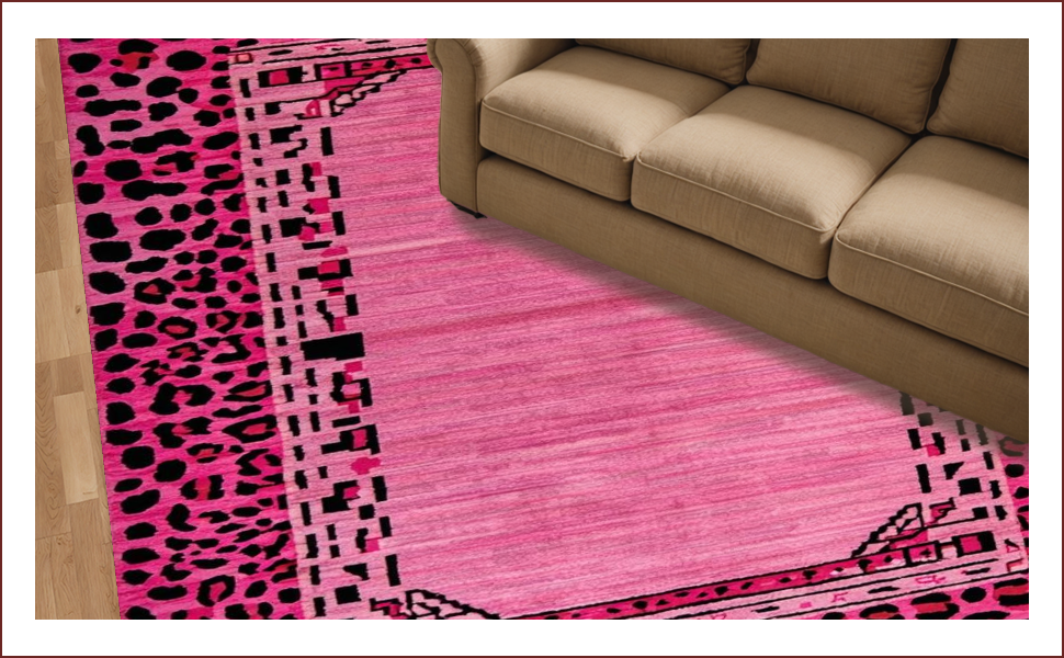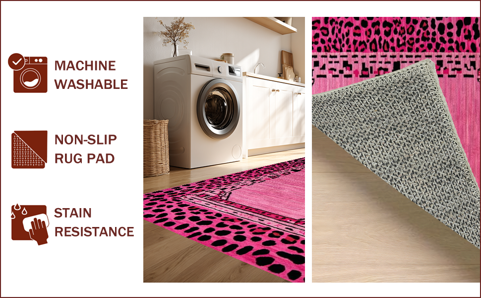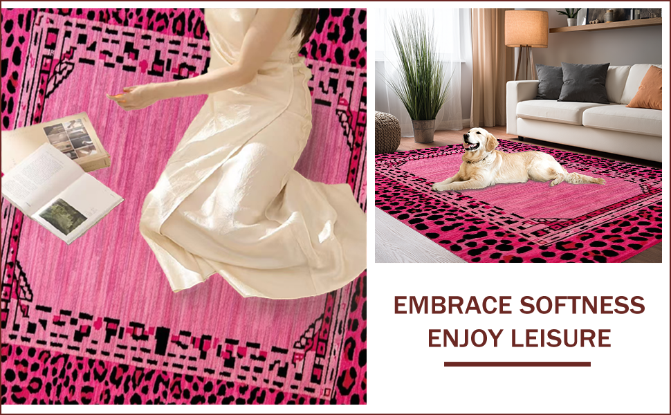 Ultra Soft Area Rug, Non Slip, Stain Resistant, Washable Area Rugs for Living Room, Bedroom, Playful Pink Leopard Aesthetic(Pink) Overview: