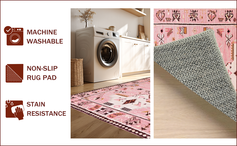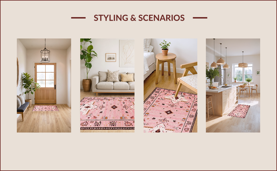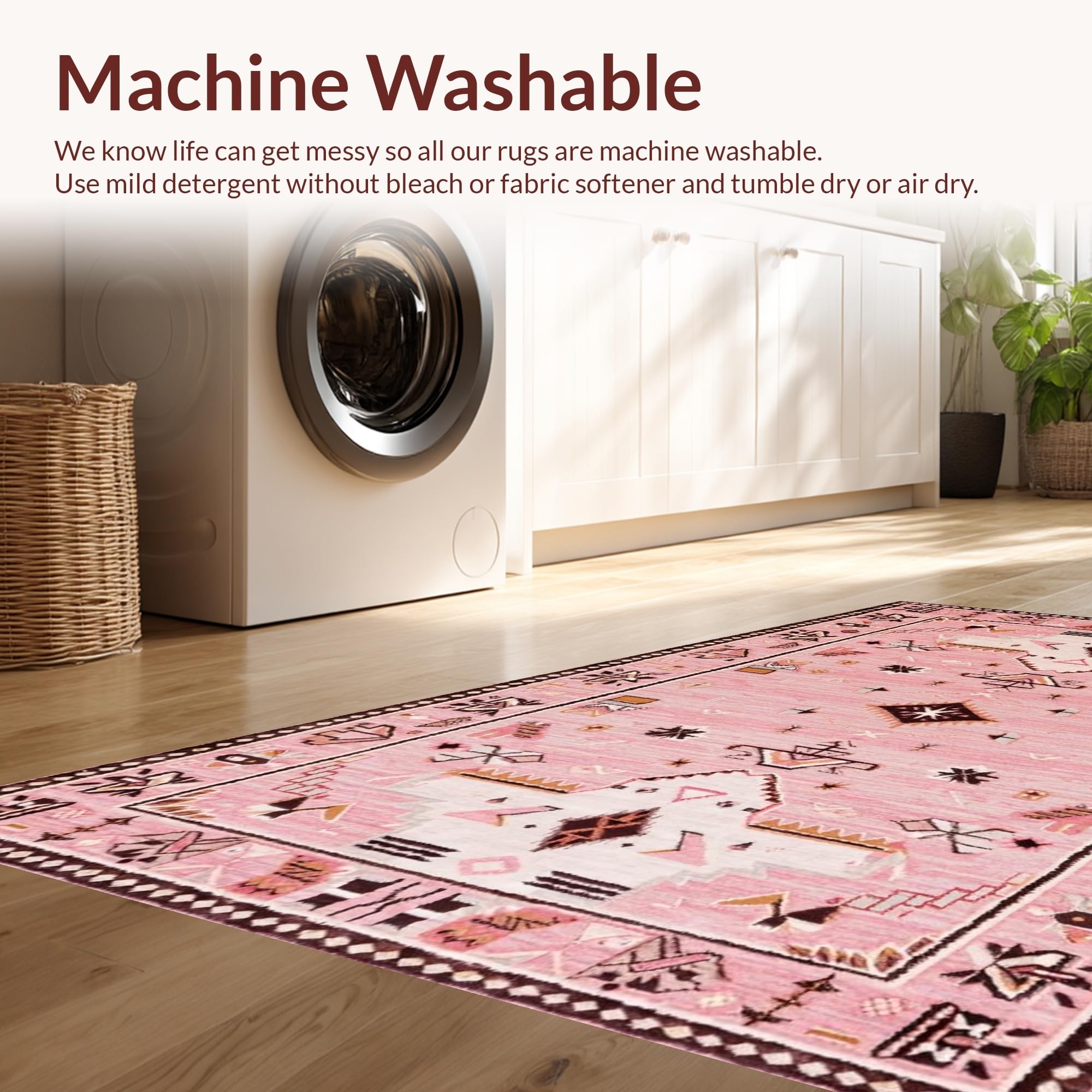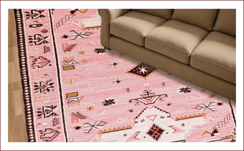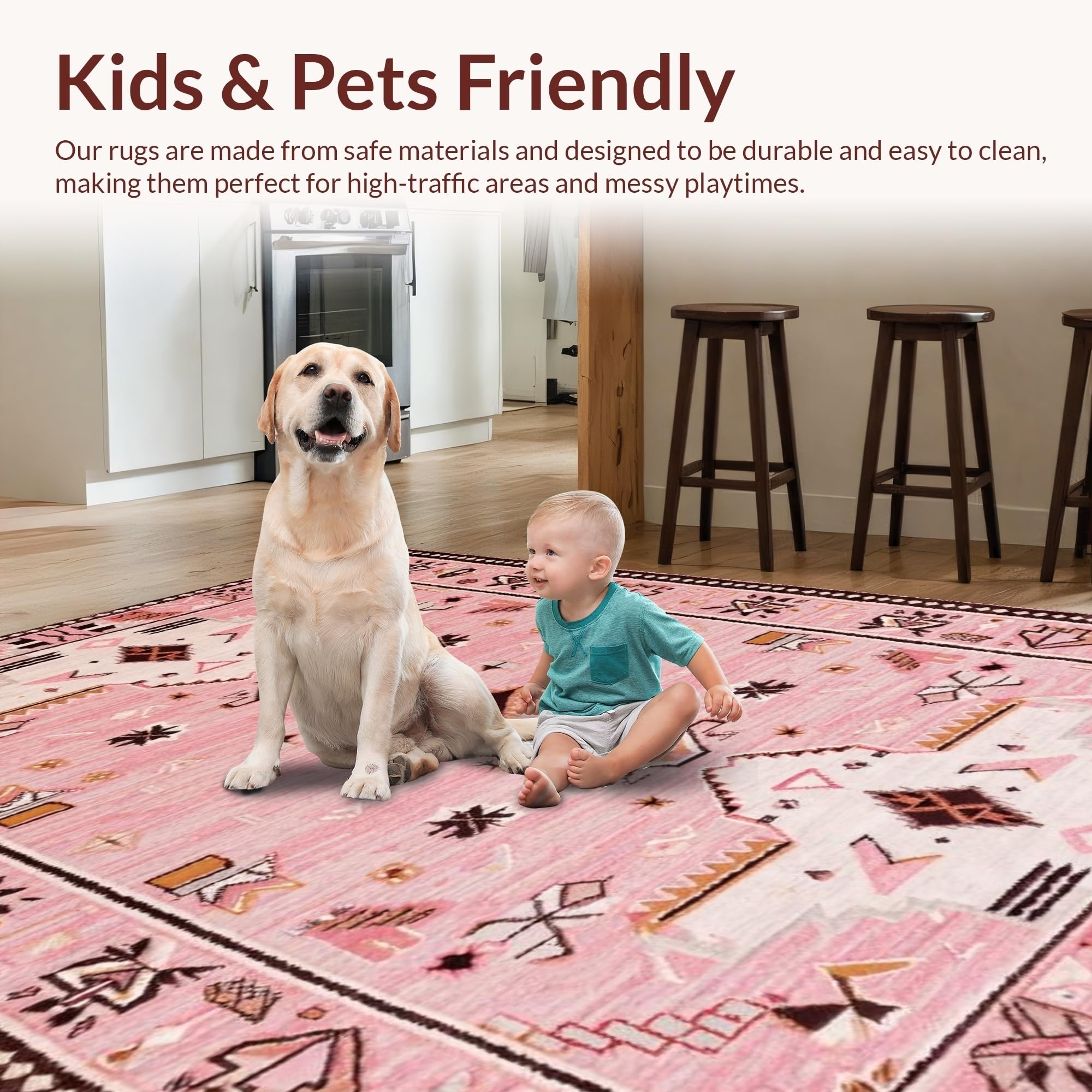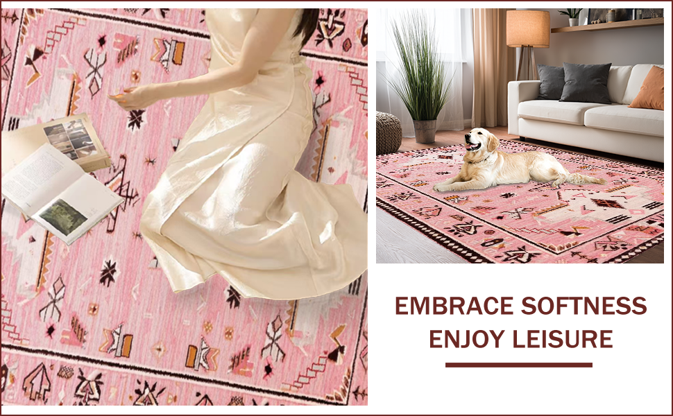 Ultra Soft Area Rug, Non Slip, Stain Resistant, Washable Area Rugs for Living Room, Bedroom, Playful Rustic Earthy Aesthetic(Pink) Overview: