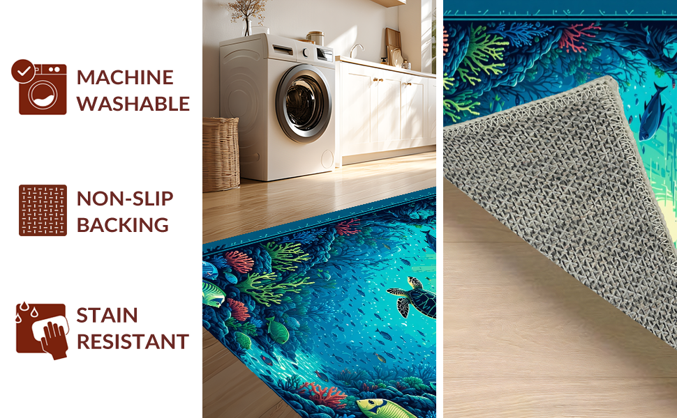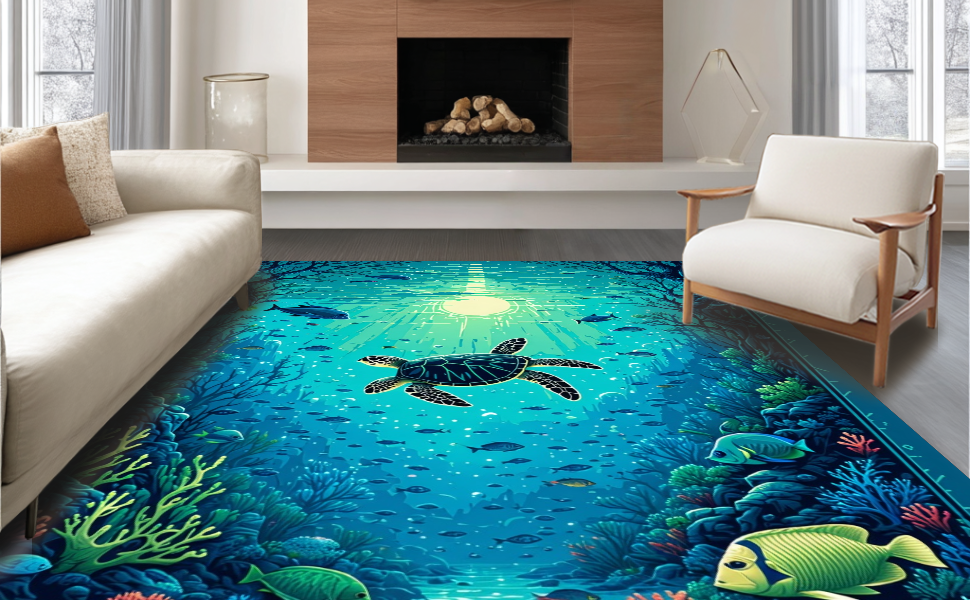 Ultra Soft Area Rug, Non Slip, Stain Resistant, Washable Area Rugs for Living Room, Bedroom, Playful Sea Creature Pattern(Blue) Overview: