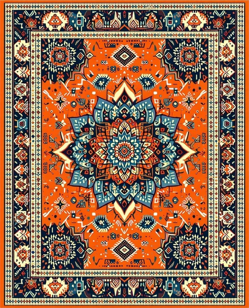 Ultra Soft Area Rug, Non Slip, Stain Resistant, Washable Area Rugs for Living Room, Bedroom, Playful Striped Citrus Theme(Orange) Overview: