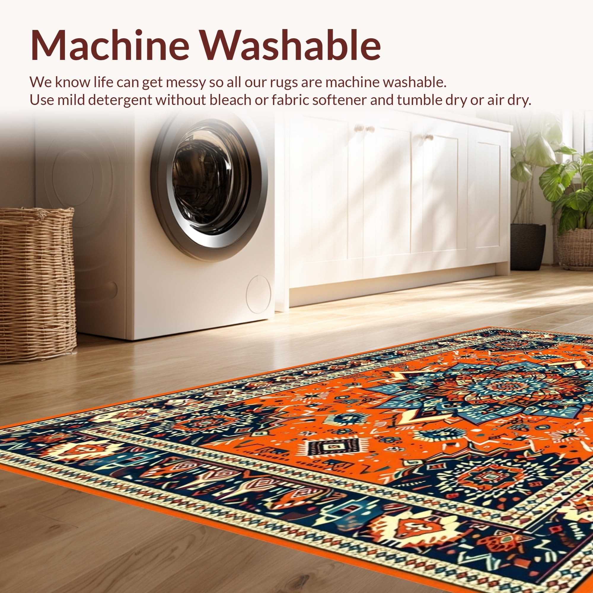 - Machine Washable: Our rugs can be easily thrown in the wash machine.