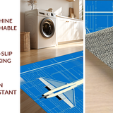 Ultra Soft Area Rug, Non Slip, Stain Resistant, Washable Area Rugs for Living Room, Bedroom, Playful Supersonic Plane Motif(Blue) Overview: