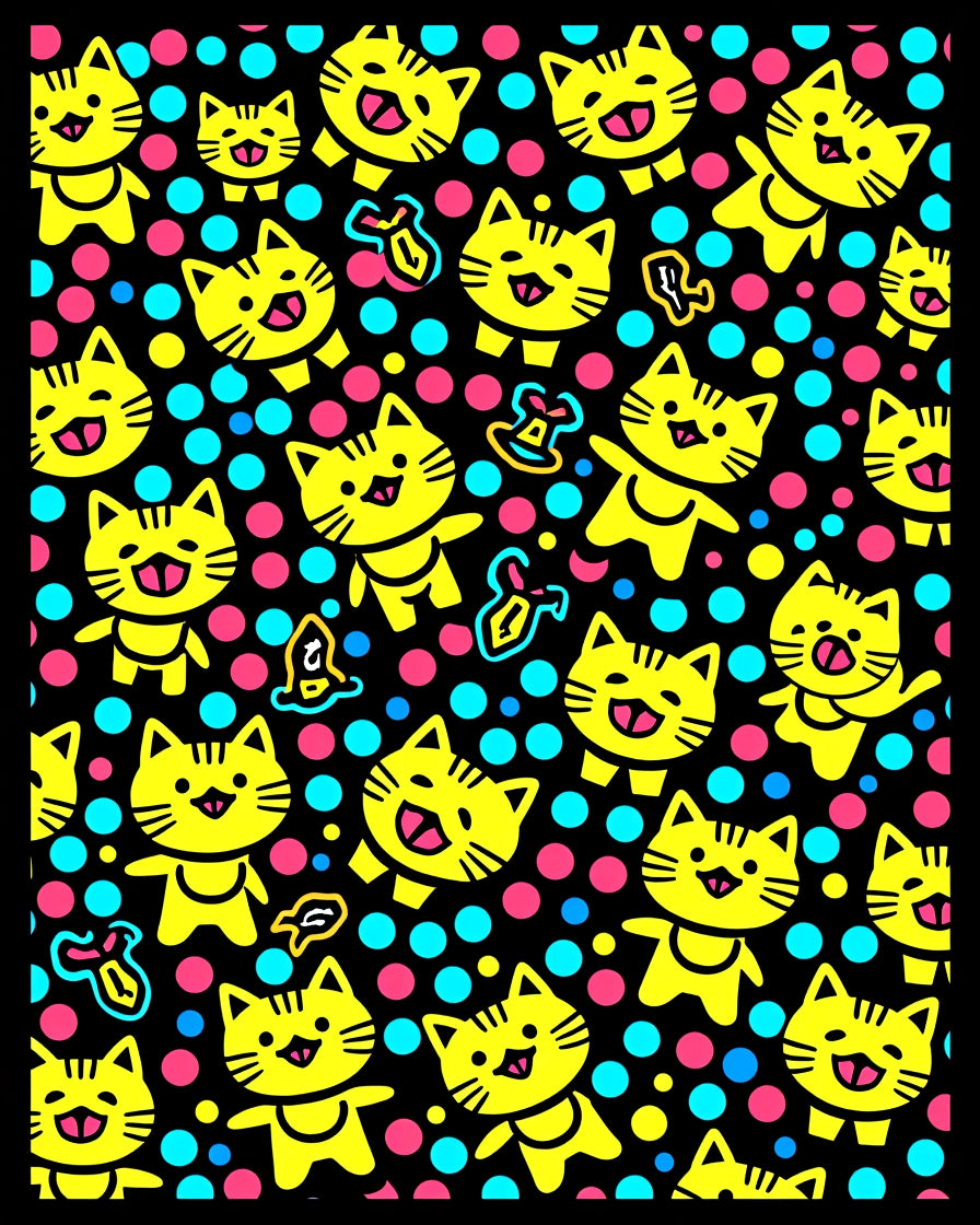Playful Tabby Gathering with Abstract Animal Inspired Design and Dots(Black)