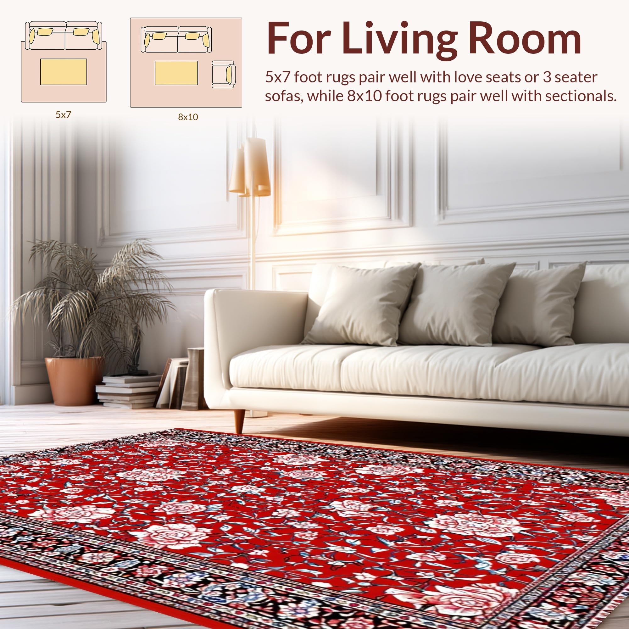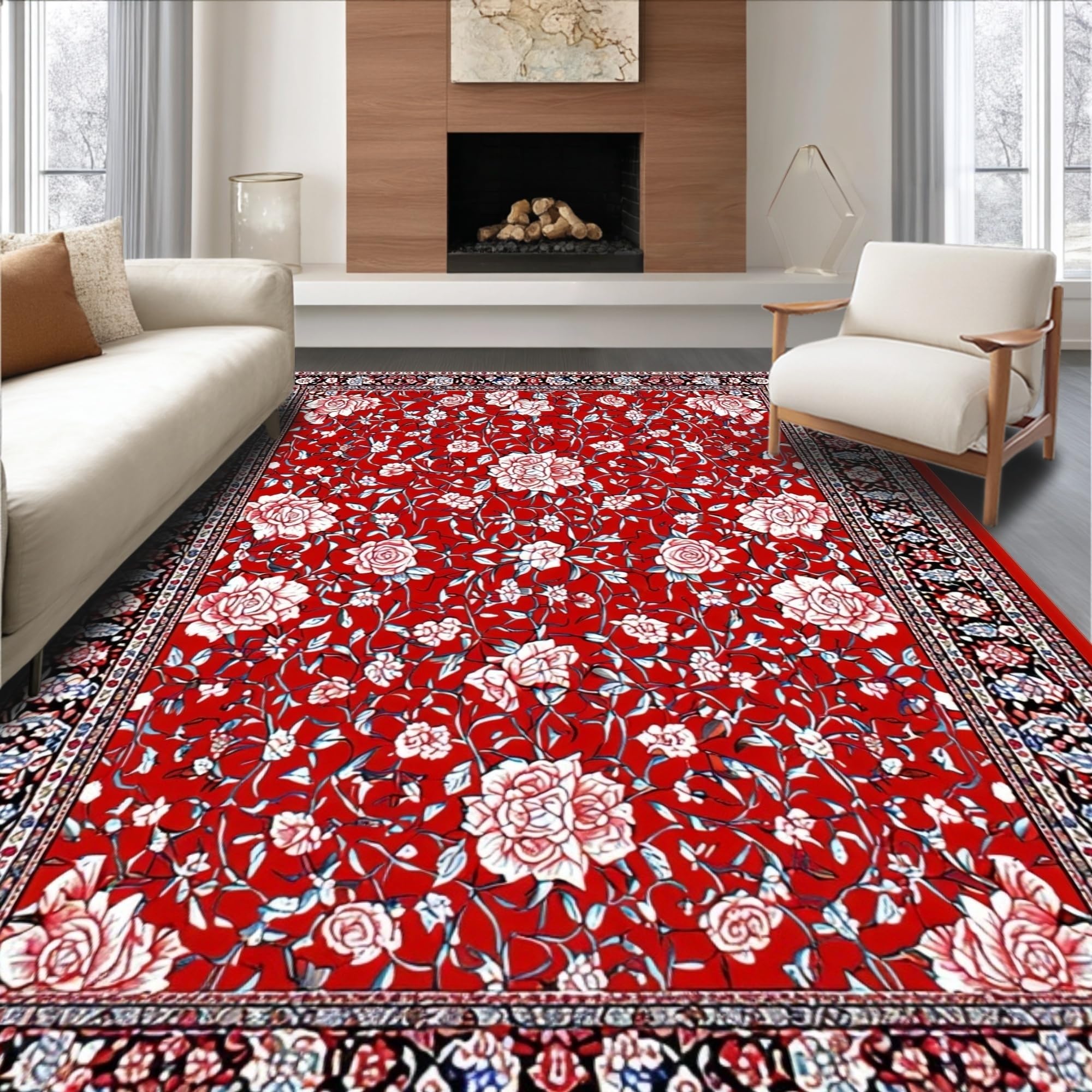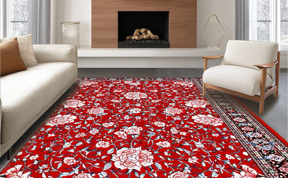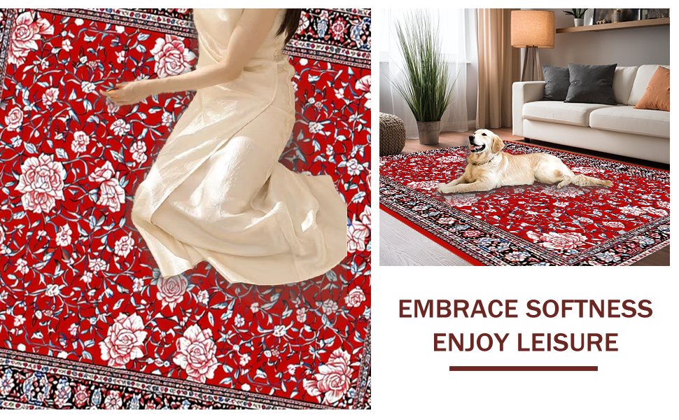 Ultra Soft Area Rug, Non Slip, Stain Resistant, Washable Area Rugs for Living Room, Bedroom, Playful Textured Flower Style(Red) Overview: