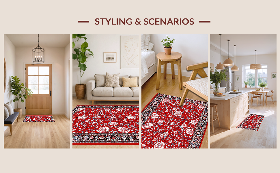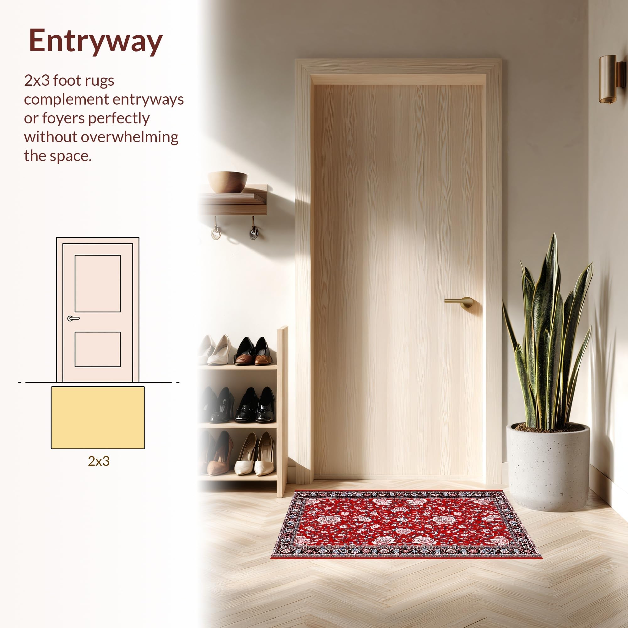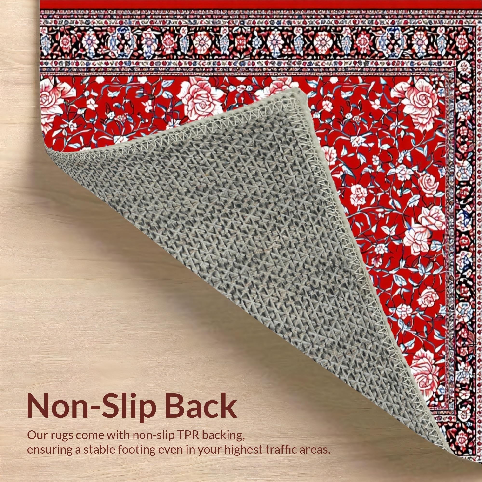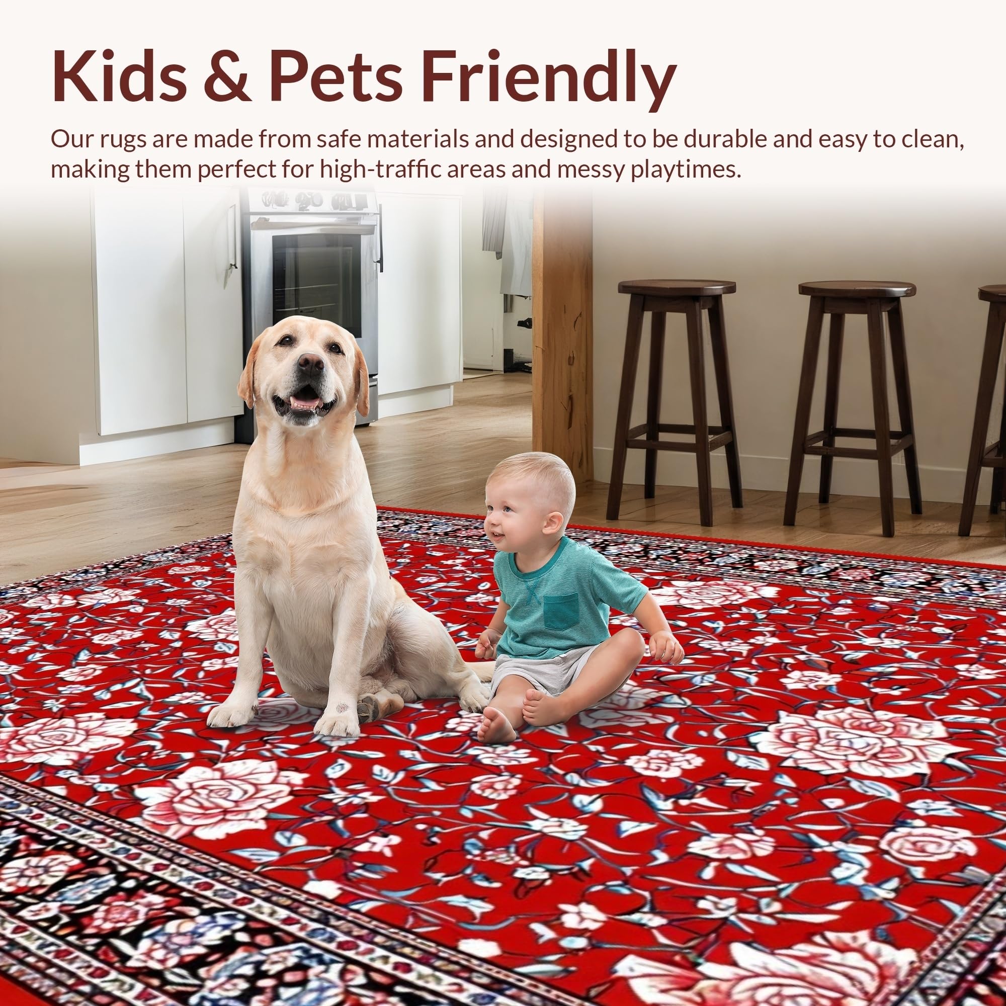 Ultra Soft Area Rug, Non Slip, Stain Resistant, Washable Area Rugs for Living Room, Bedroom, Playful Textured Flower Style(Red) Overview: