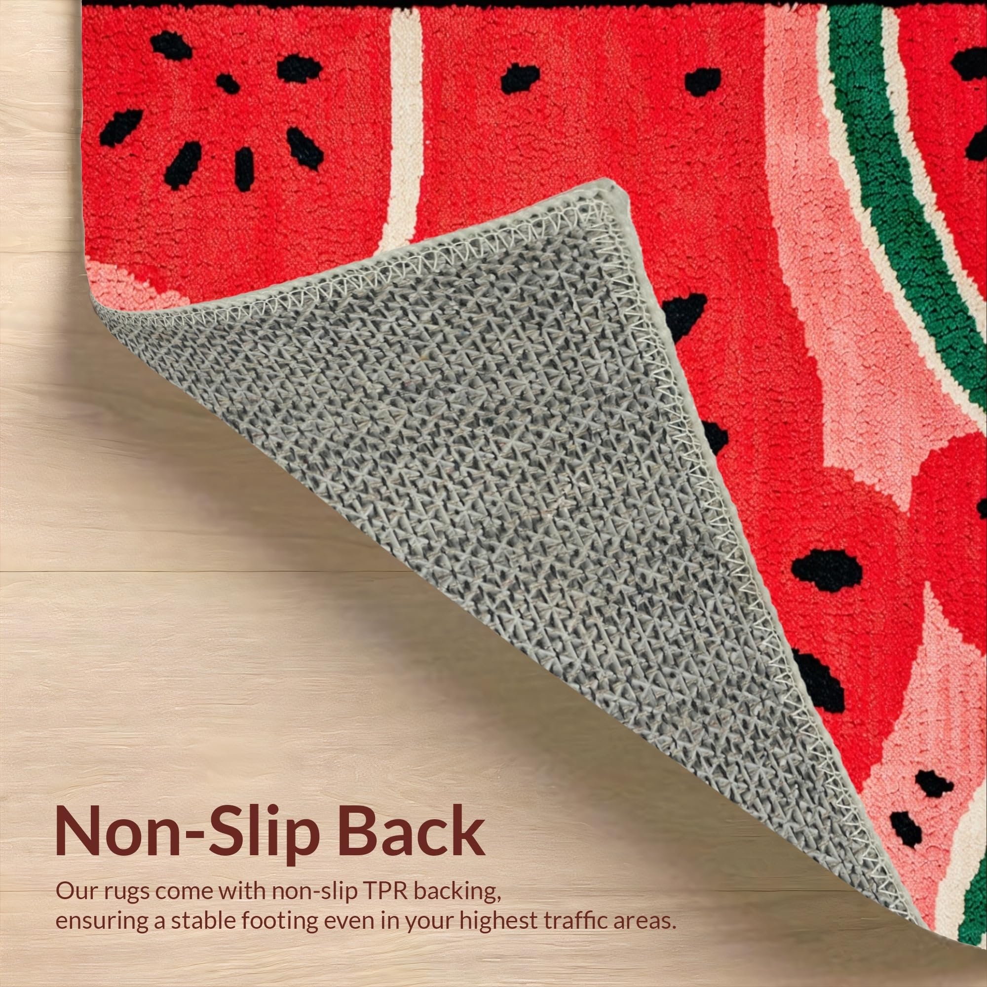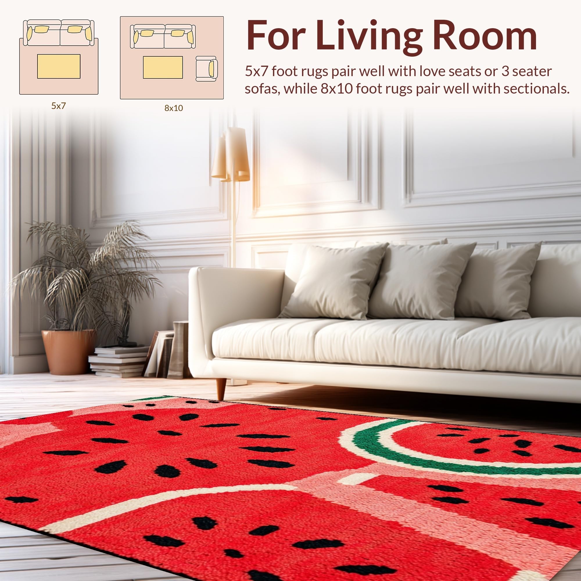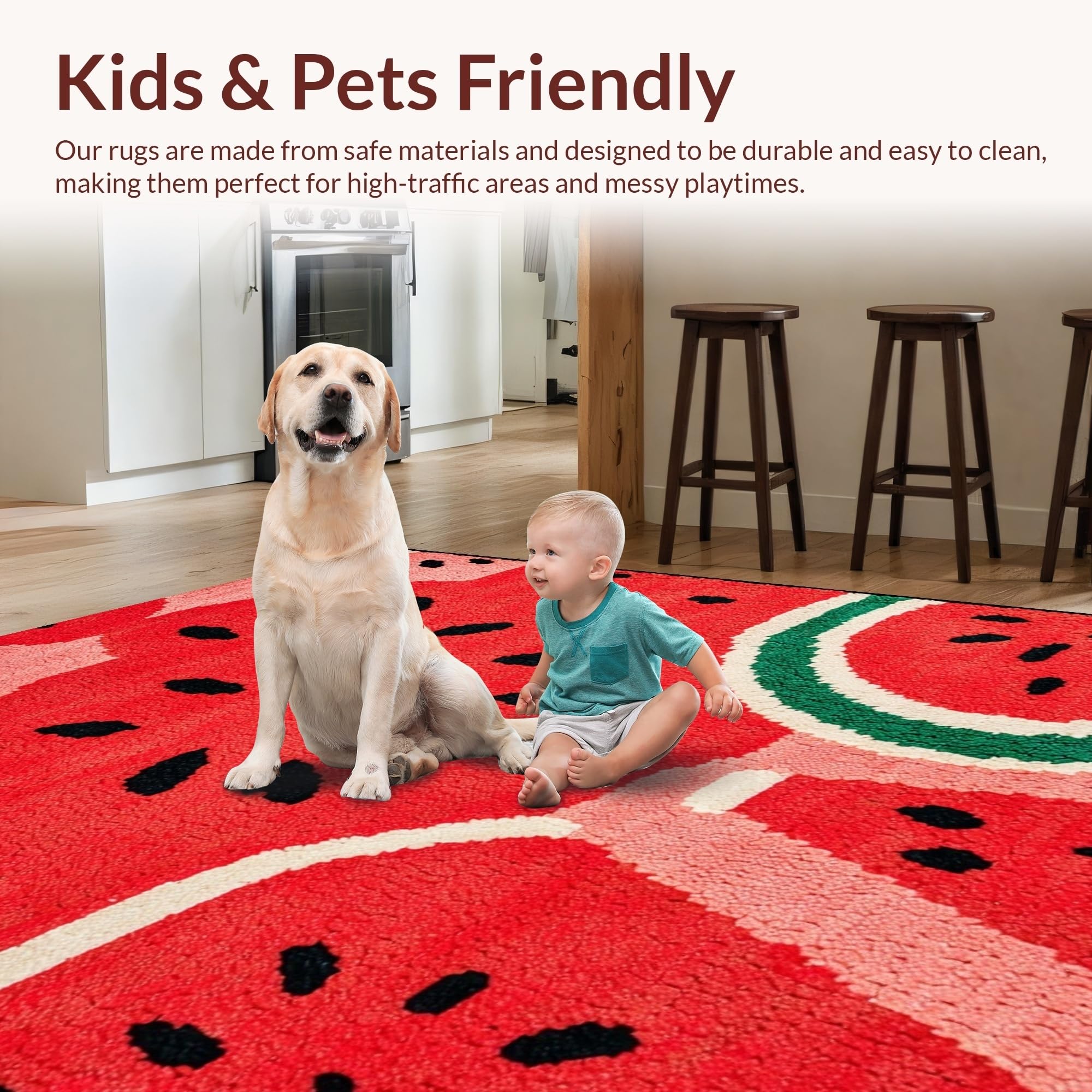 Ultra Soft Area Rug, Non Slip, Stain Resistant, Washable Area Rugs for Living Room, Bedroom, Playful Tropical Fruit Aesthetic(Red) Overview: