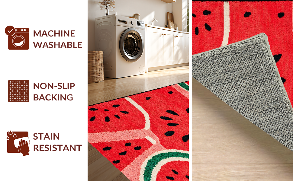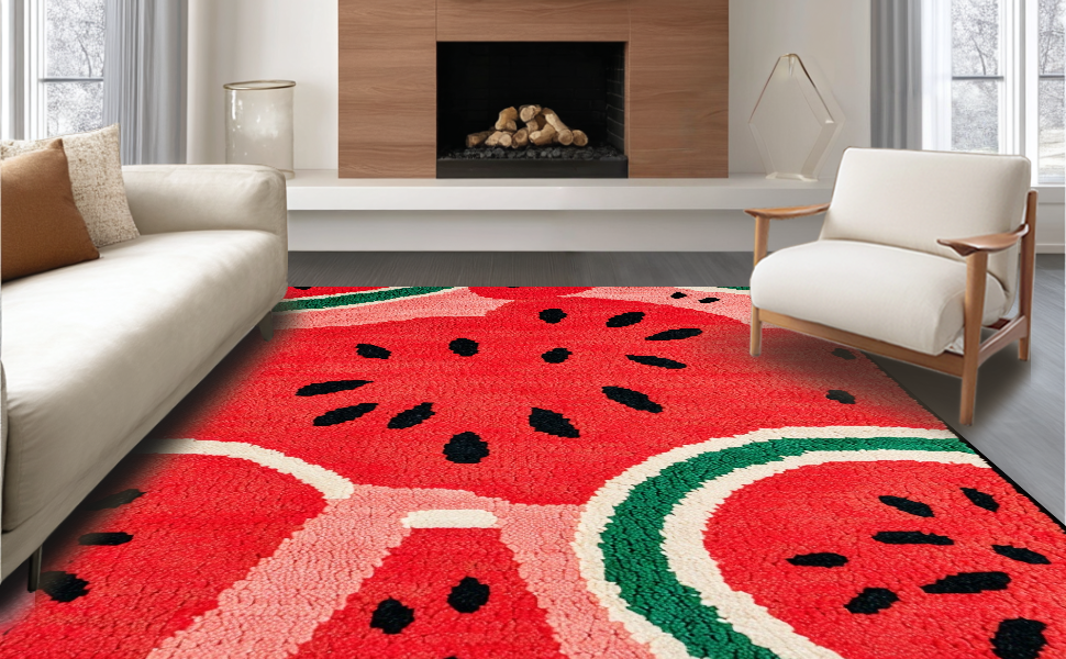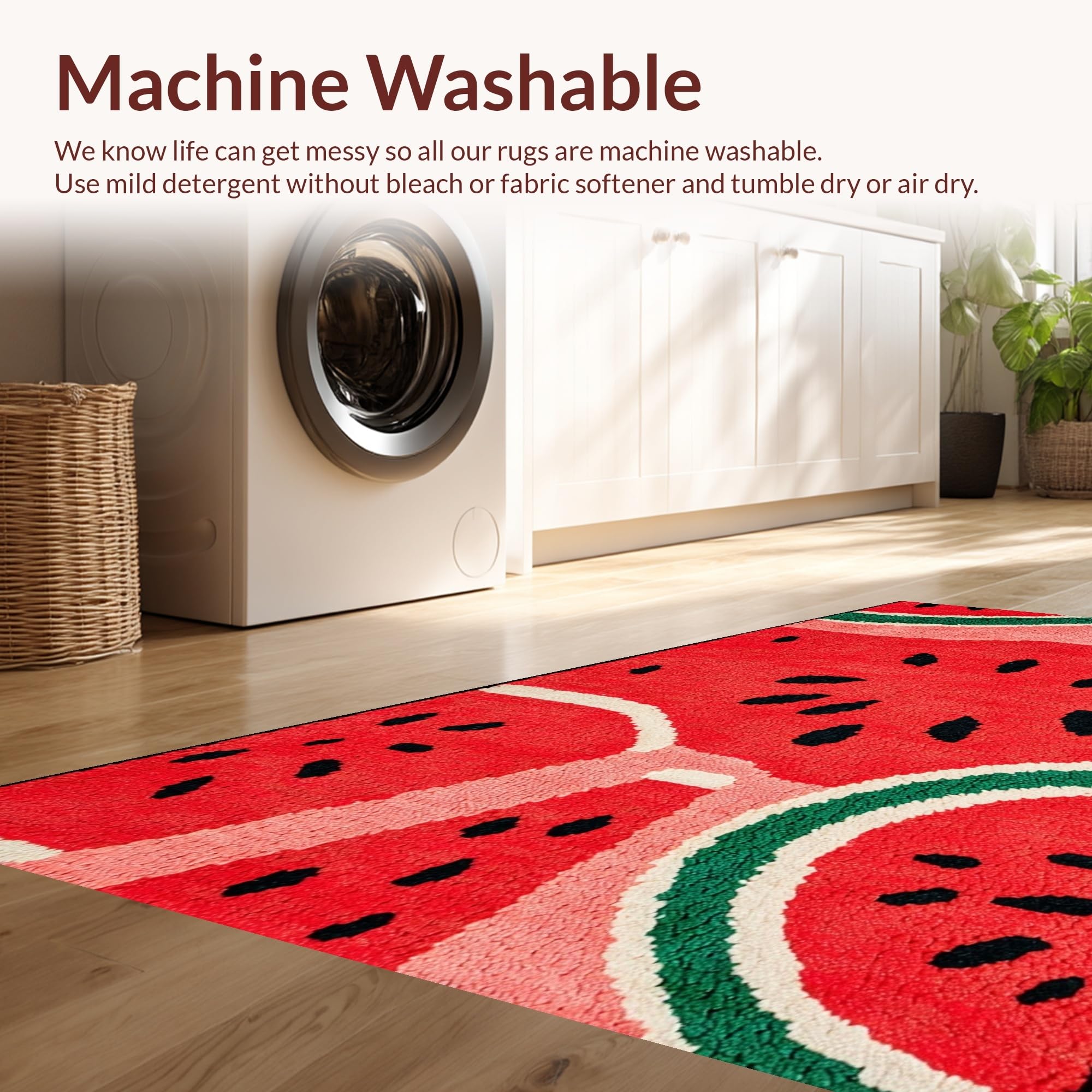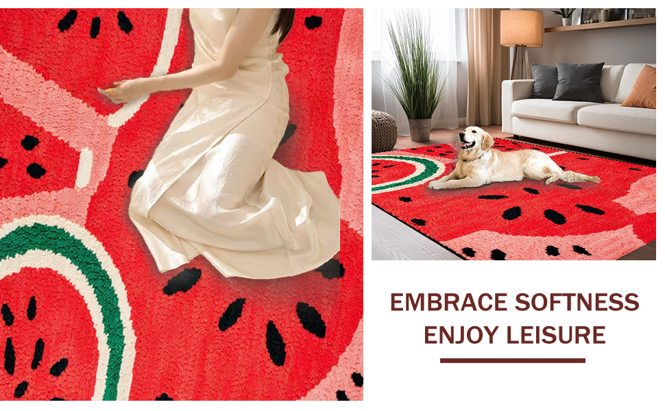 Ultra Soft Area Rug, Non Slip, Stain Resistant, Washable Area Rugs for Living Room, Bedroom, Playful Tropical Fruit Aesthetic(Red) Overview: