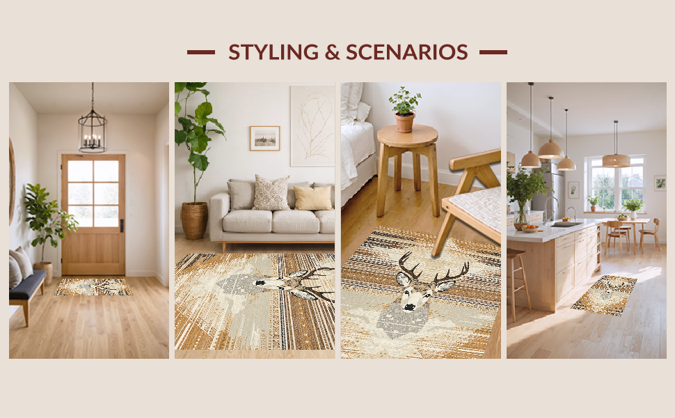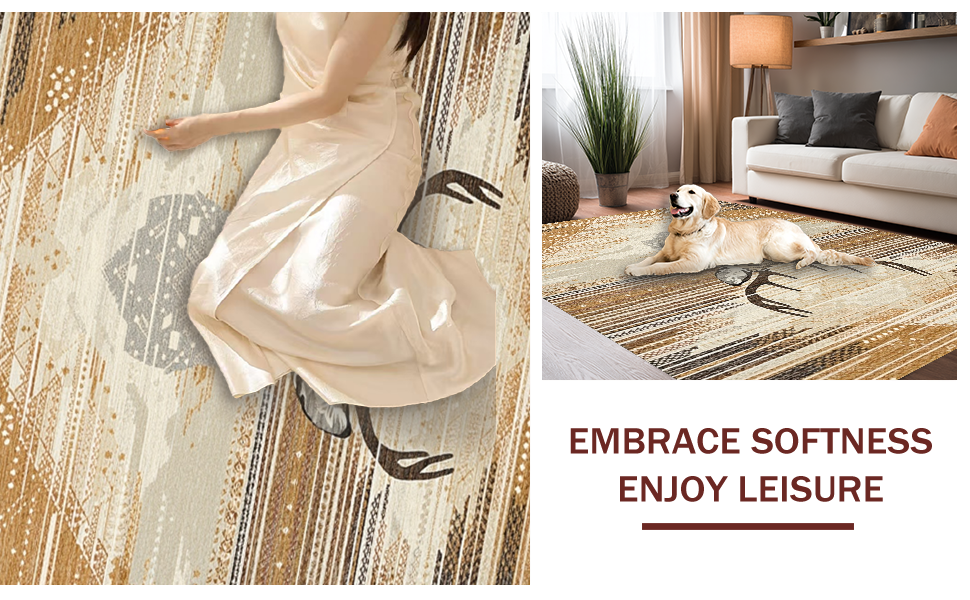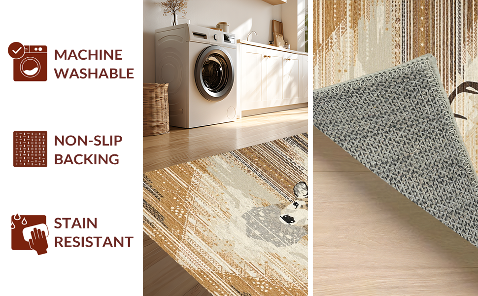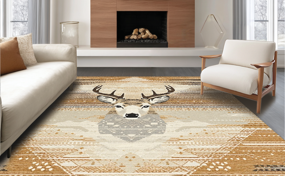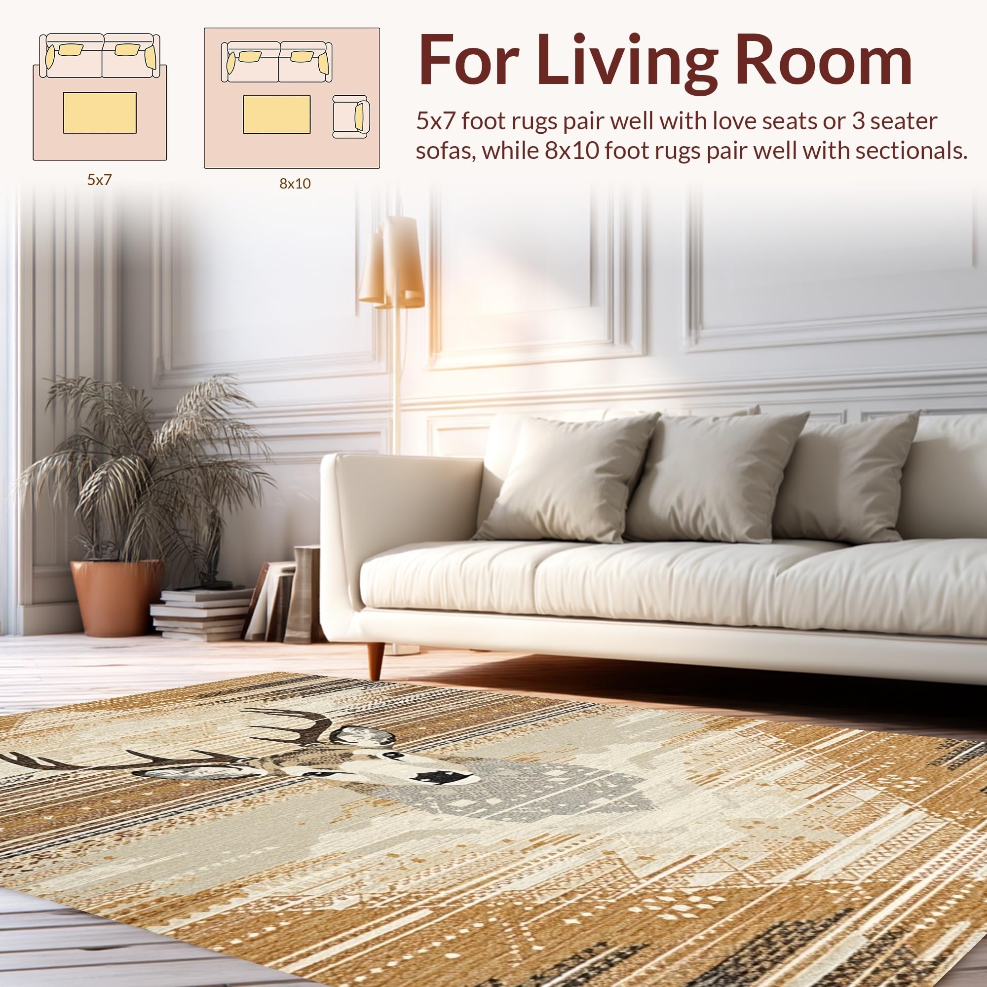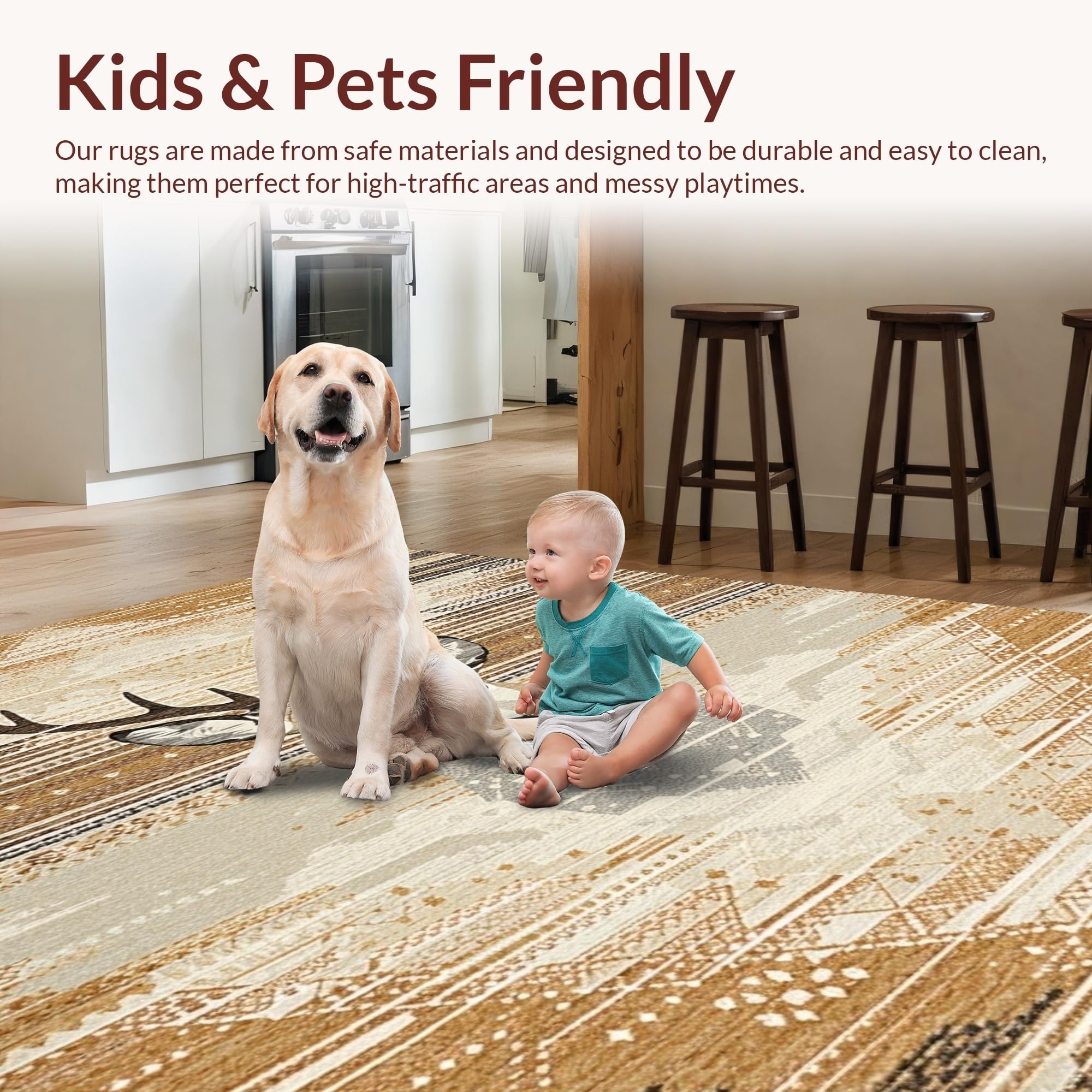 Ultra Soft Area Rug, Non Slip, Stain Resistant, Washable Area Rugs for Living Room, Bedroom, Playful Wildlife Motif Accent(Beige) Overview: