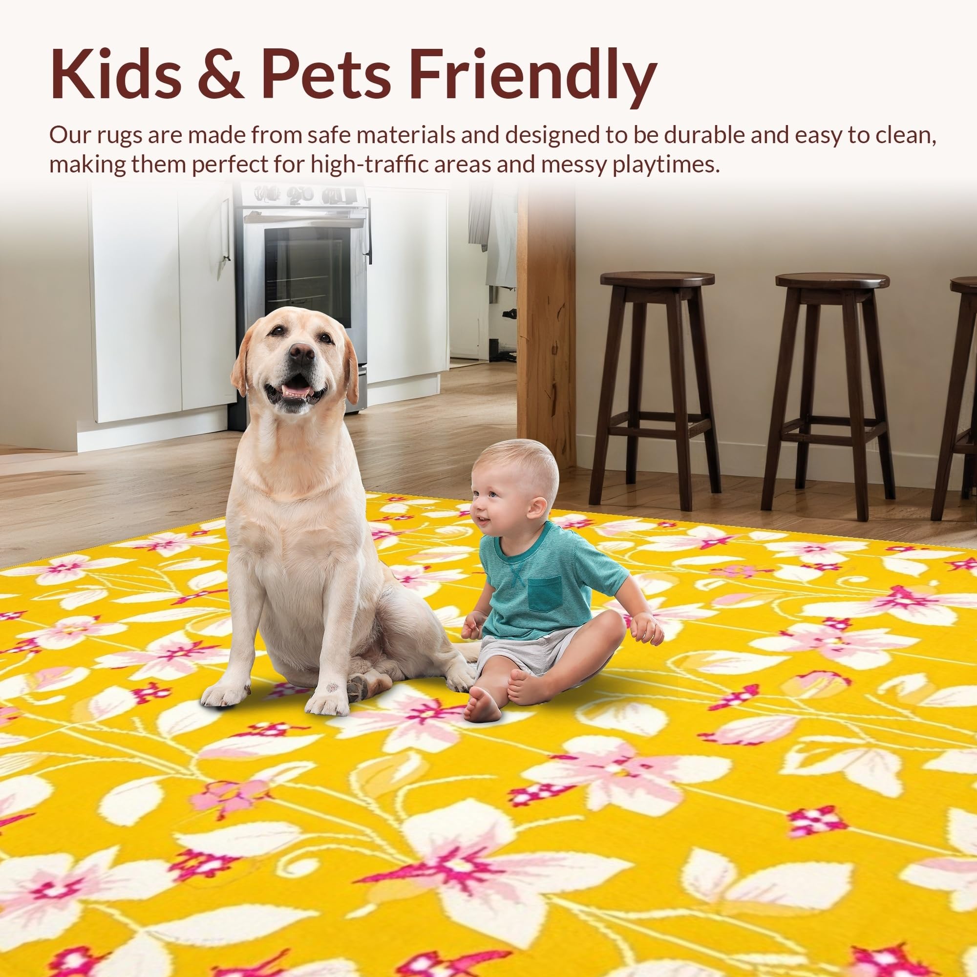 Ultra Soft Area Rug, Non Slip, Stain Resistant, Washable Area Rugs for Living Room, Bedroom, Playful Yellow Flower Arrangement(Yellow) Overview: