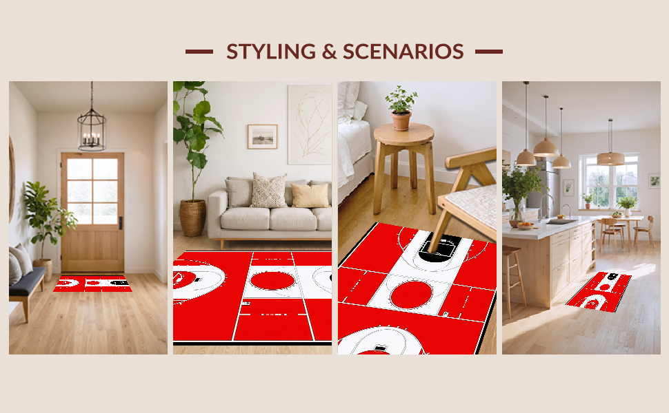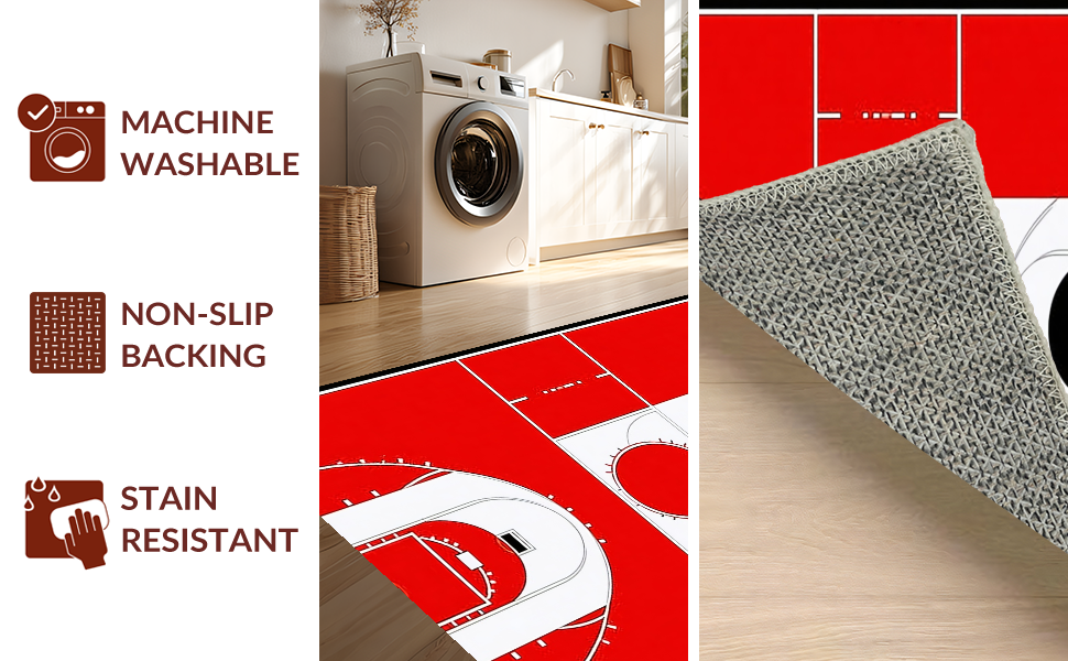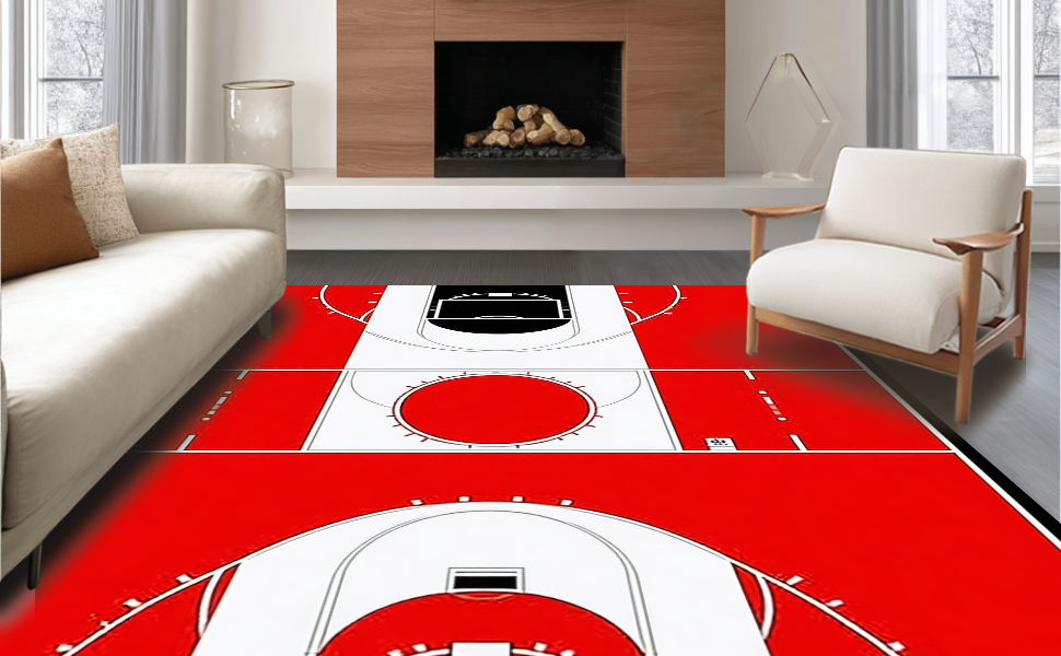 Ultra Soft Area Rug, Non Slip, Stain Resistant, Washable Area Rugs for Living Room, Bedroom, Playful Youthful Sporty Pattern(Red) Overview: