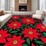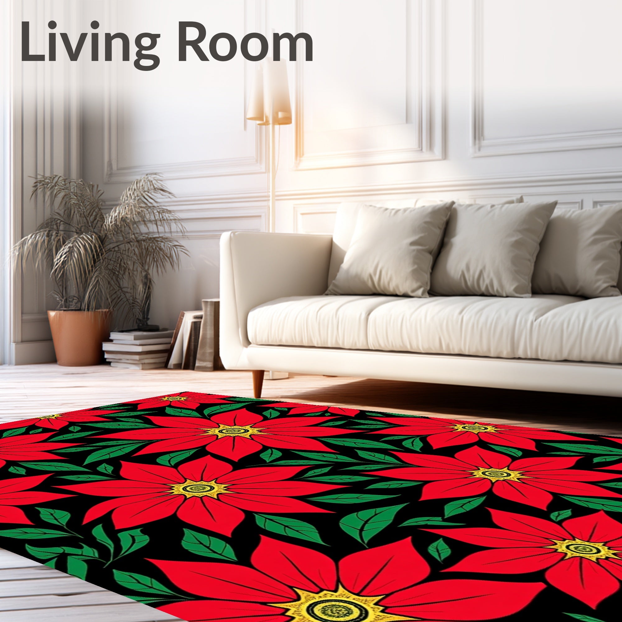 Ultra Soft Area Rug, Non Slip, Stain Resistant, Washable Area Rugs for Living Room, Bedroom, Poinsettia Bloom Christmas with Motifs(Red) Overview:
