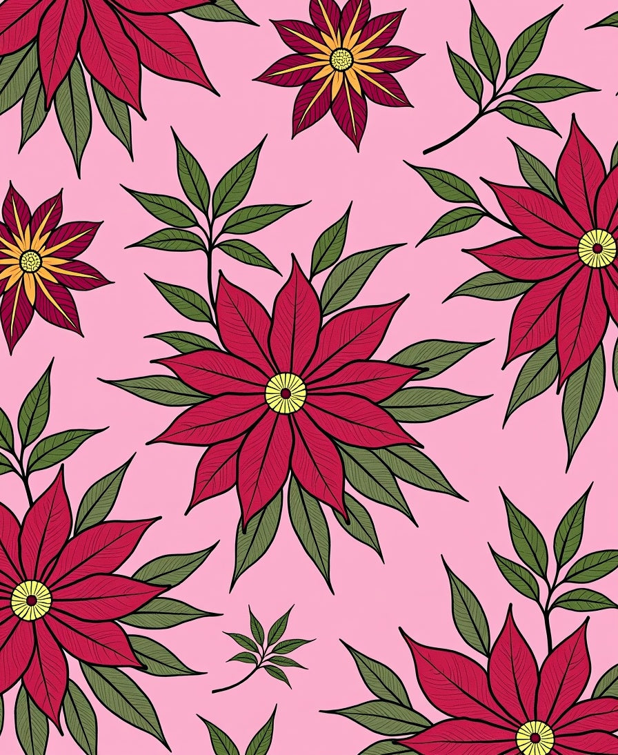 Poinsettia Bloom Motif Christmas Themed Floor Covering(Pink)