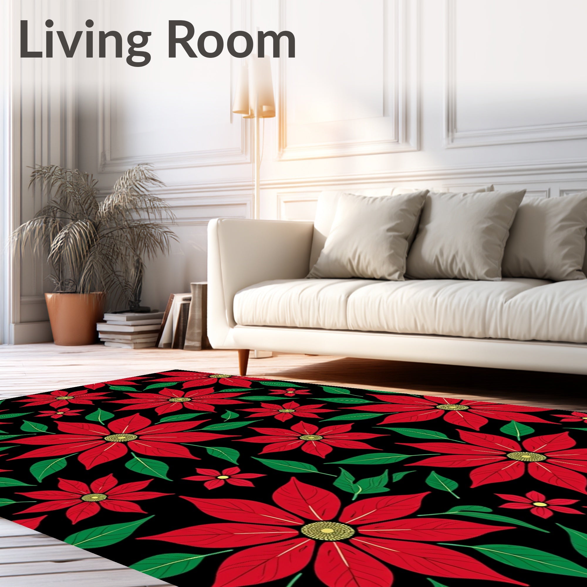 Ultra Soft Area Rug, Non Slip, Stain Resistant, Washable Area Rugs for Living Room, Bedroom, Poinsettia Bloom Vibrant Flower Festive Botanical Garden(Red) Overview: