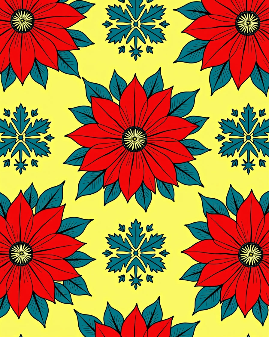 Poinsettia Blossom Tapestry with Floral Holiday Celebration(Red)