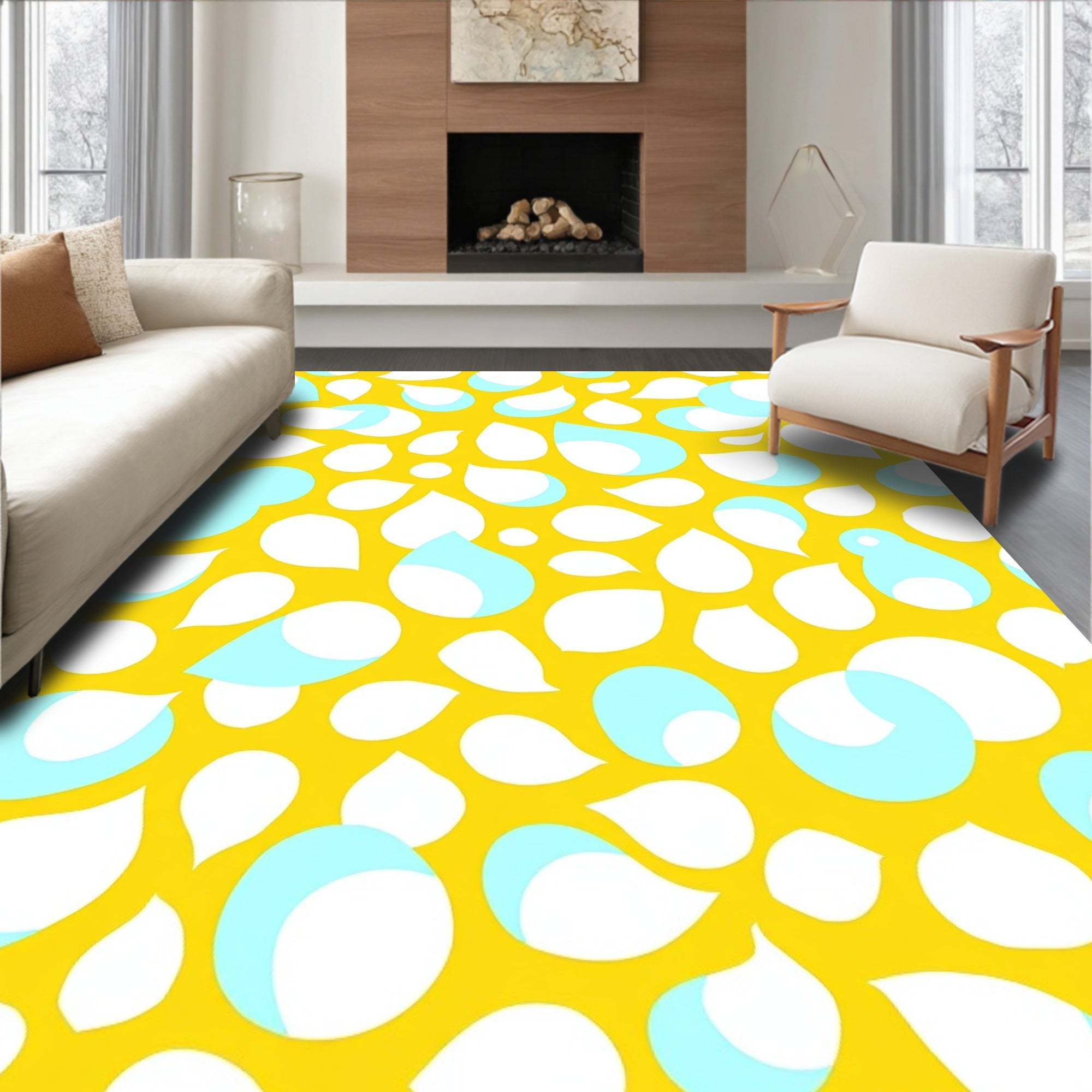 Ultra Soft Area Rug, Non Slip, Stain Resistant, Washable Area Rugs for Living Room, Bedroom, Polar Meadow Interlocking Petal Mosaic(Yellow) Overview: