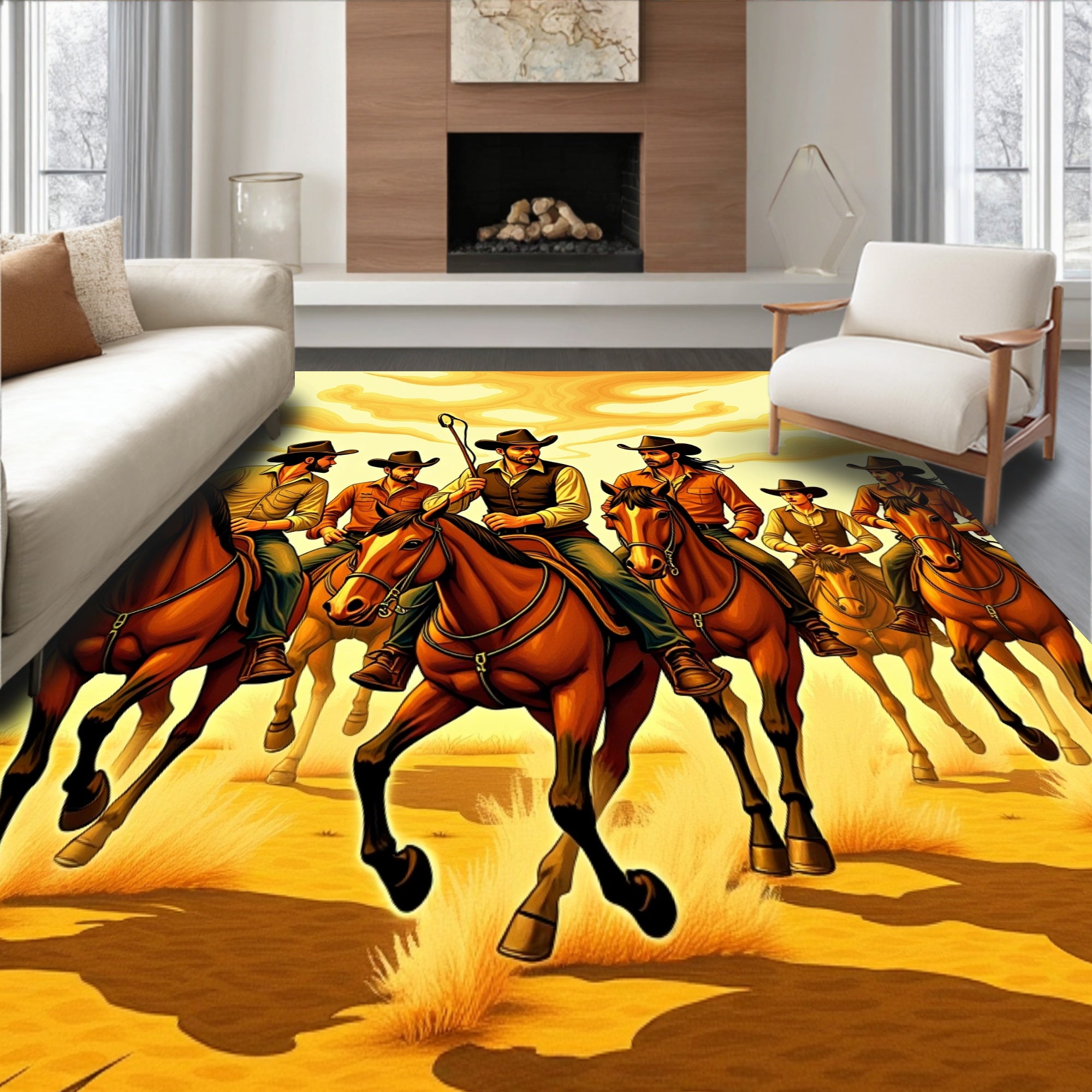 Ultra Soft Area Rug, Non Slip, Stain Resistant, Washable Area Rugs for Living Room, Bedroom, Prairie Stampede Artistic Display Cover(Brown) Overview: