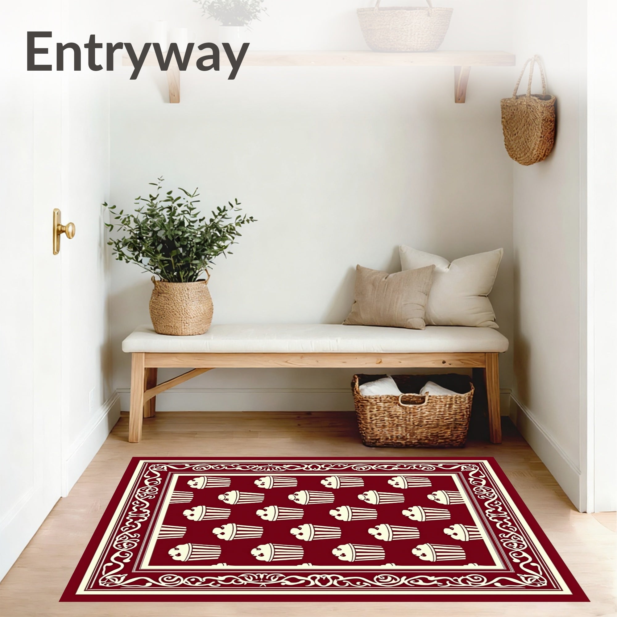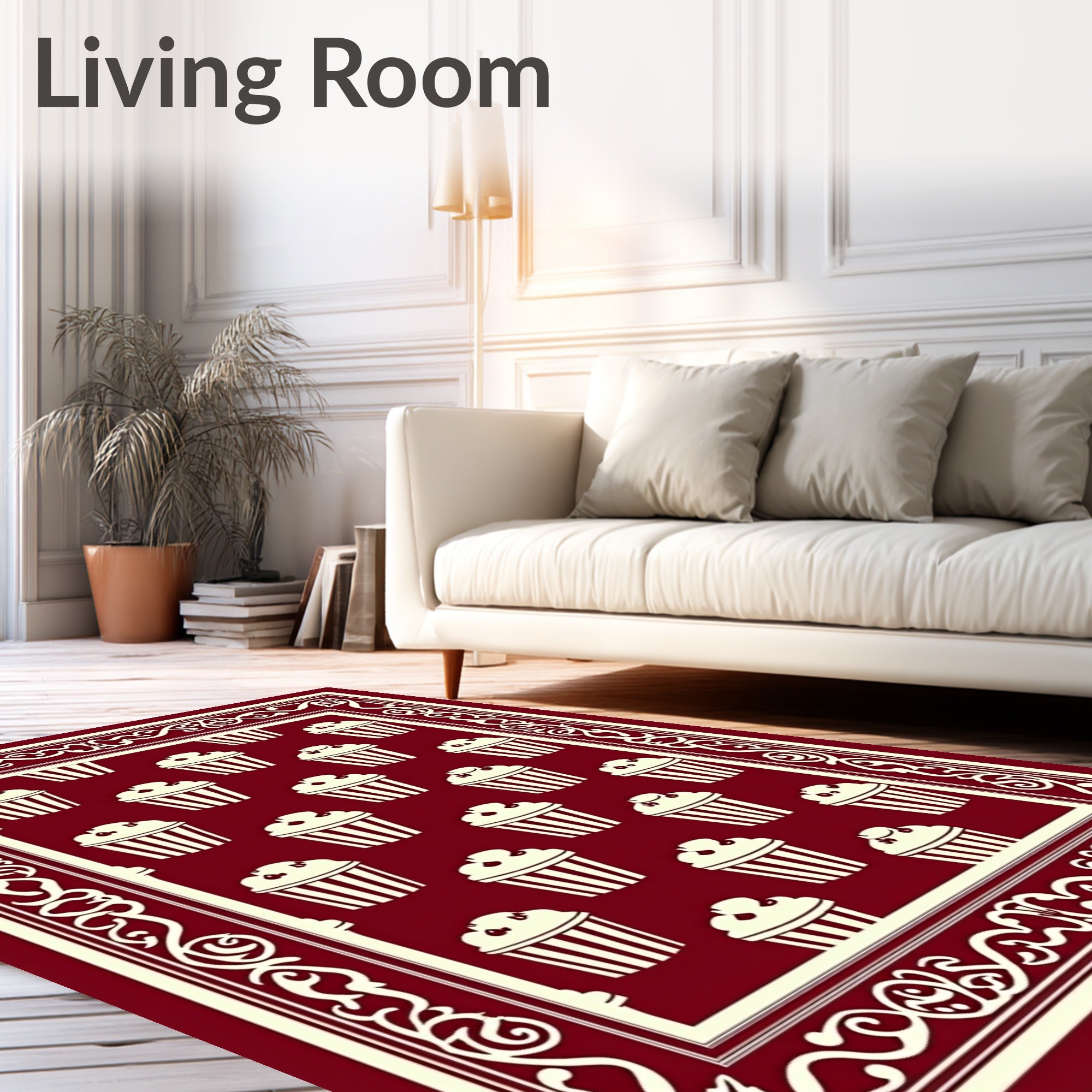 Ultra Soft Area Rug, Non Slip, Stain Resistant, Washable Area Rugs for Living Room, Bedroom, Premiere Night Treat Circular Entertainment Accent(Red) Overview: