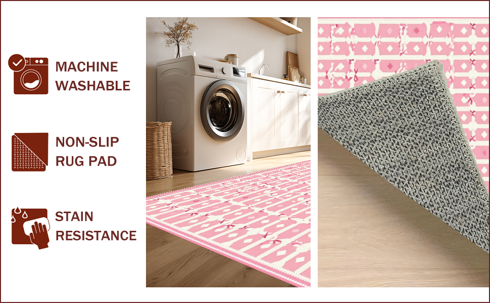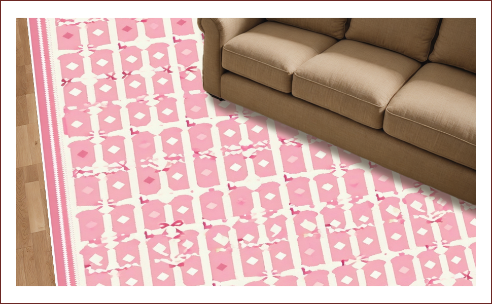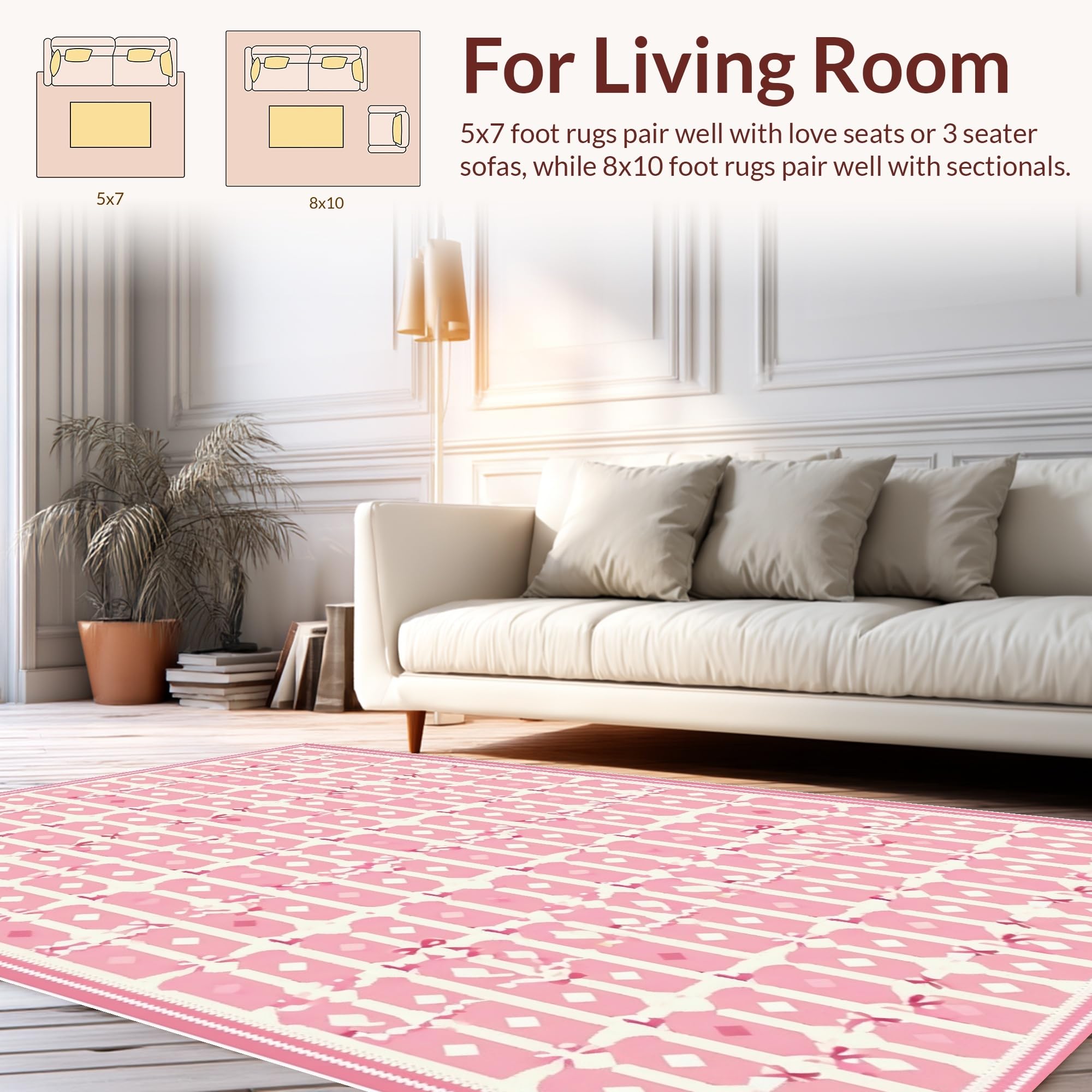 Ultra Soft Area Rug, Non Slip, Stain Resistant, Washable Area Rugs for Living Room, Bedroom, Preppy Pastel Bow Aesthetic(Pink) Overview: