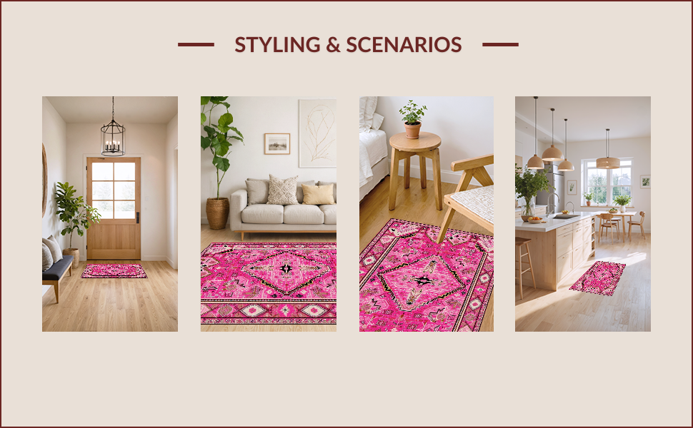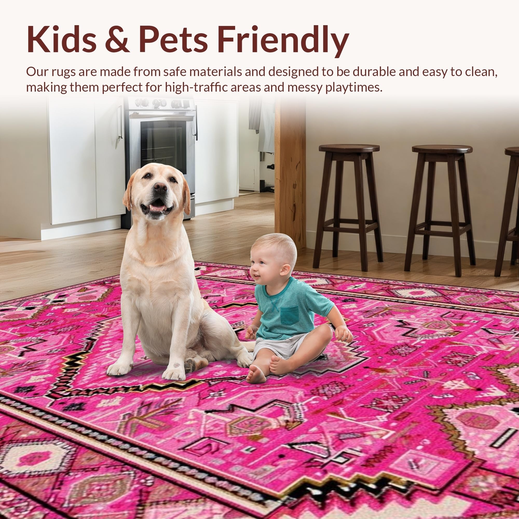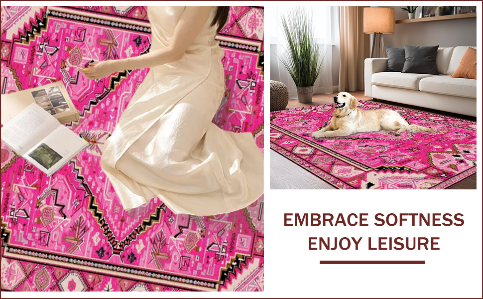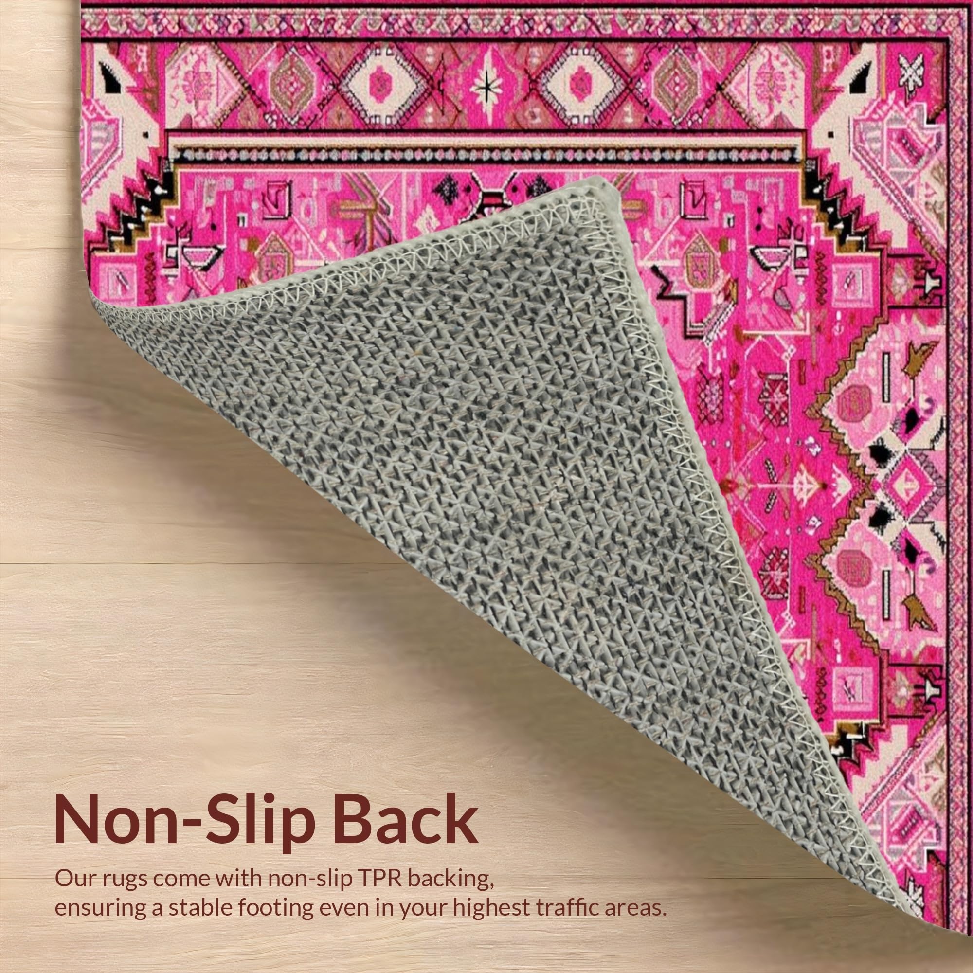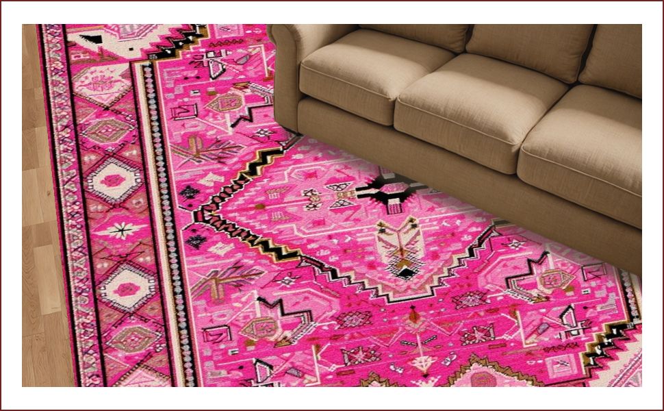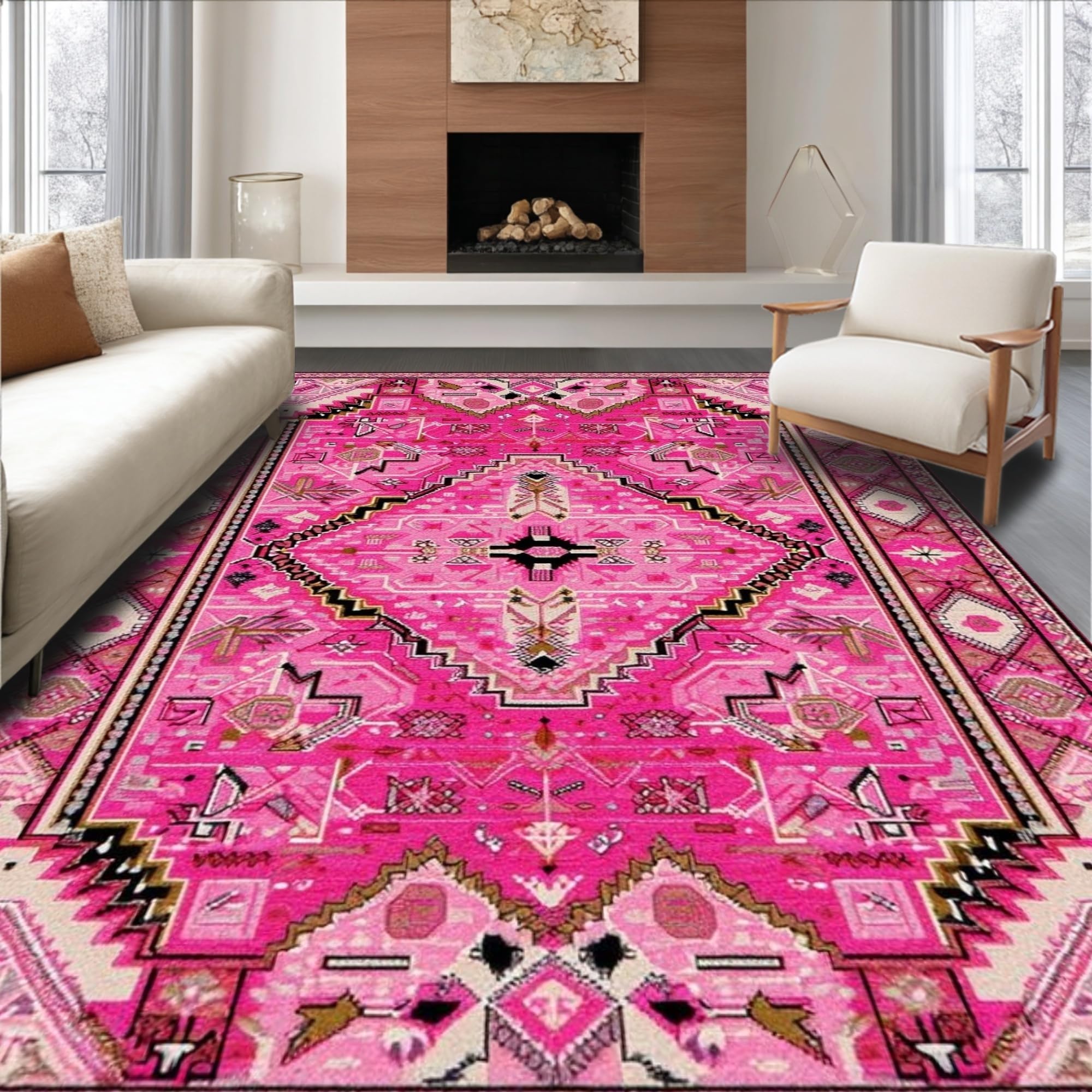 Ultra Soft Area Rug, Non Slip, Stain Resistant, Washable Area Rugs for Living Room, Bedroom, Preppy Textured Diamond Arrangement(Pink) Overview:
