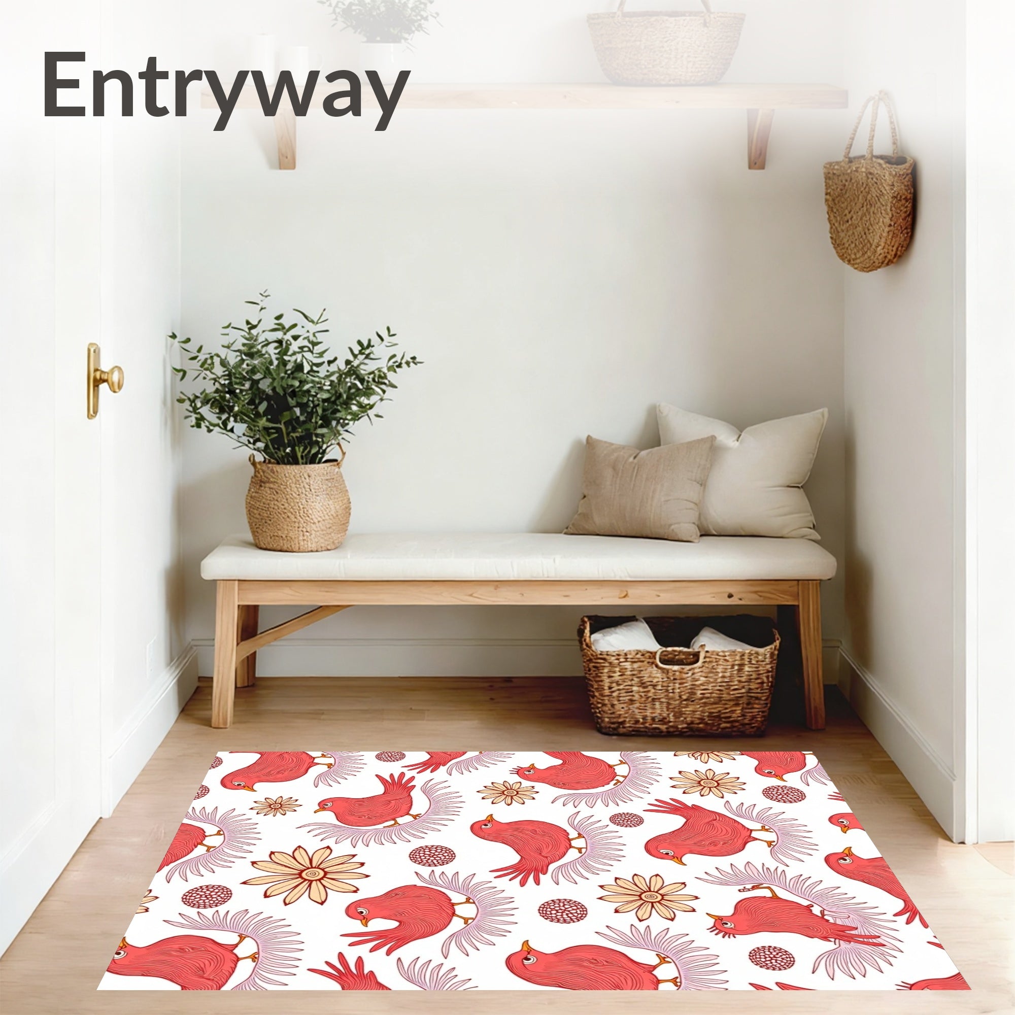 Ultra Soft Area Rug, Non Slip, Stain Resistant, Washable Area Rugs for Living Room, Bedroom, Provincial Poultry Sunrise Archway Entryway Decoration(Red) Overview: