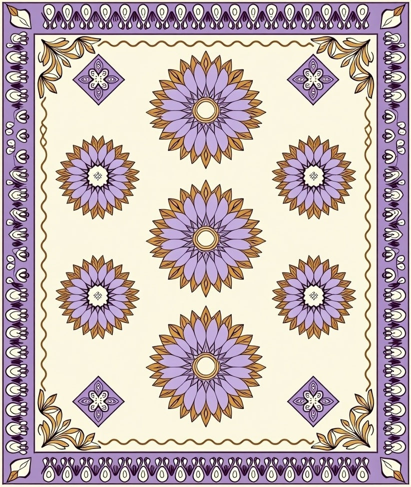 Quatrefoil Medallion Array with Stylized Leaf Borders(Beige)
