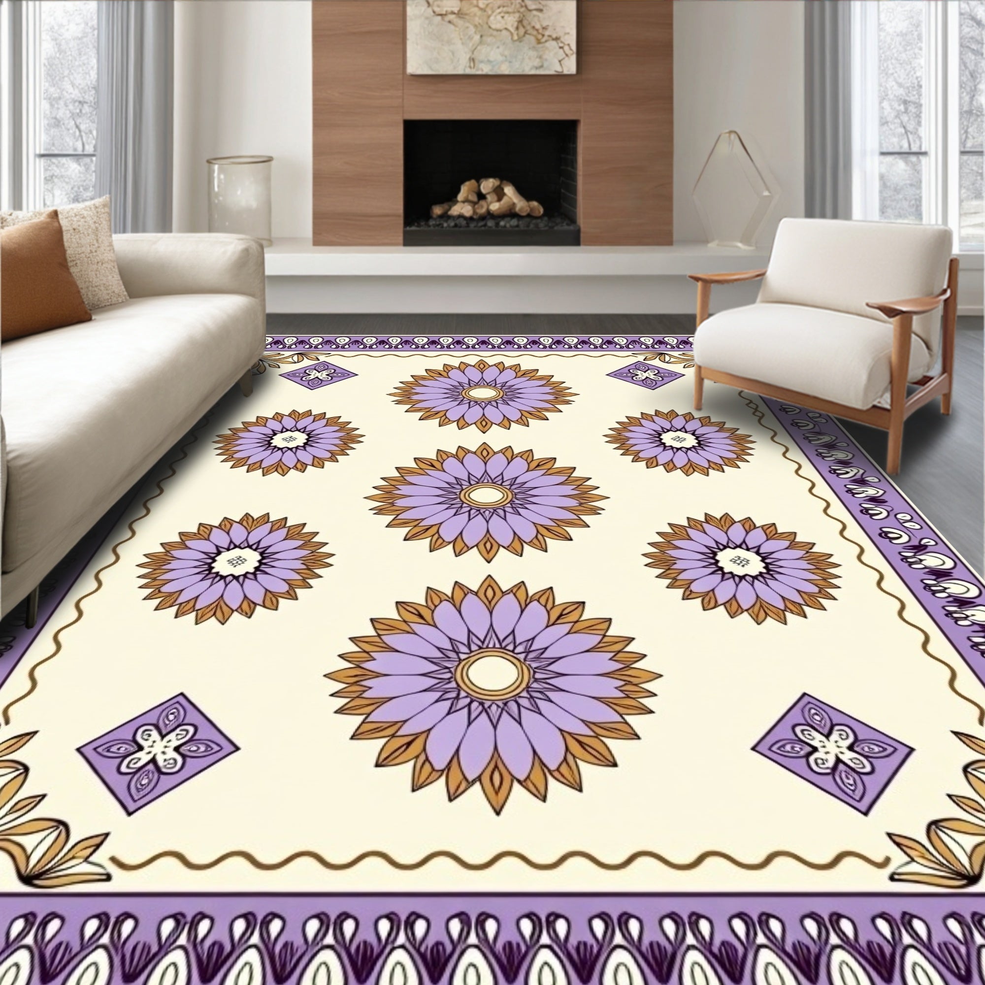 Ultra Soft Area Rug, Non Slip, Stain Resistant, Washable Area Rugs for Living Room, Bedroom, Quatrefoil Medallion Array with Stylized Leaf Borders(Beige) Overview: