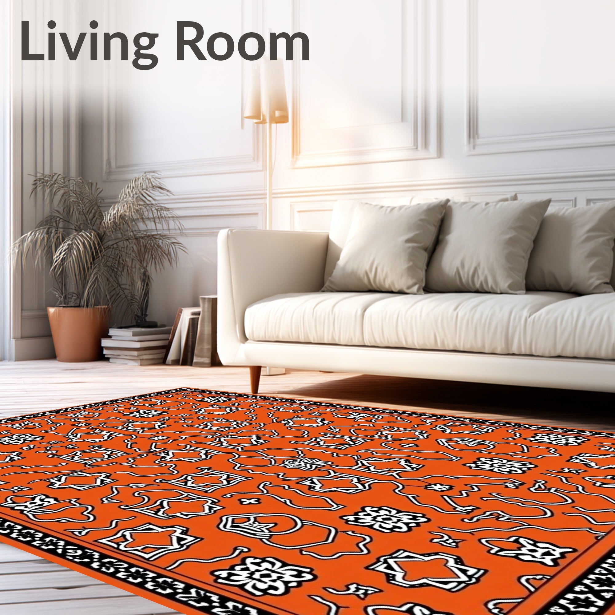 Ultra Soft Area Rug, Non Slip, Stain Resistant, Washable Area Rugs for Living Room, Bedroom, Quatrefoil Trellis Network with Moorish Influence(Orange) Overview: